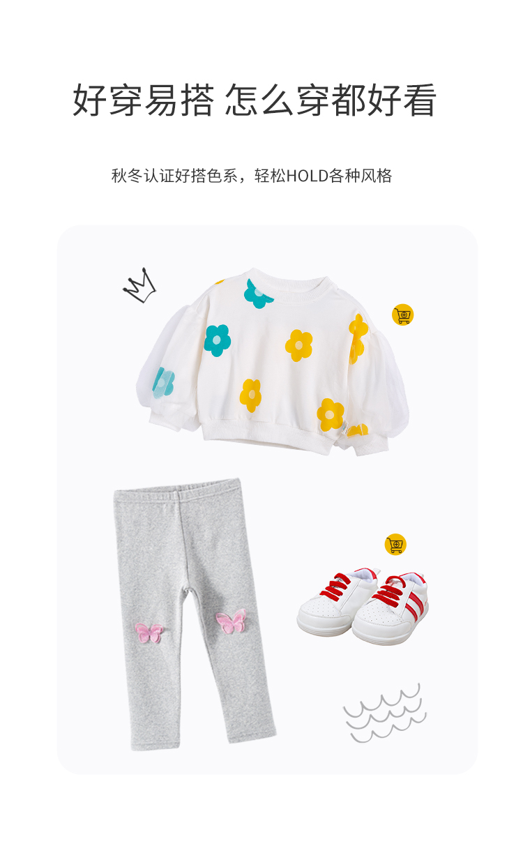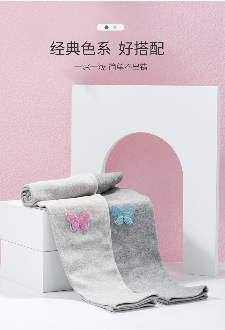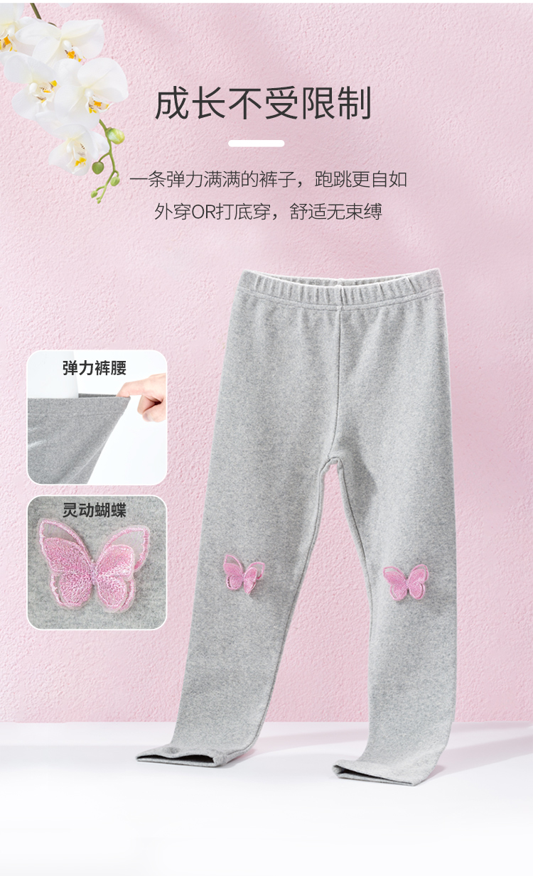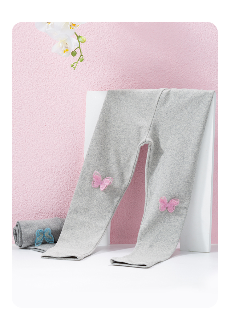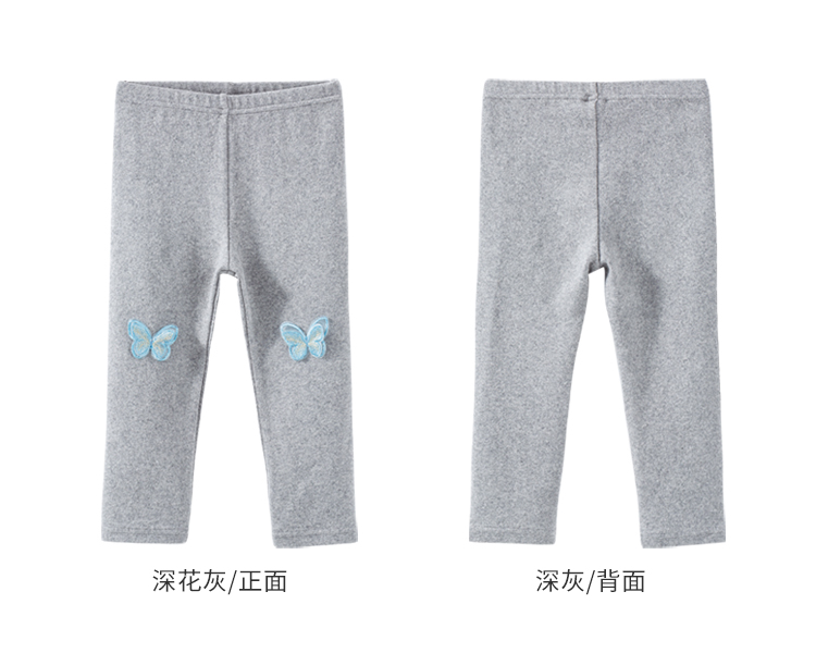 贝贝怡童装新款打底裤女童蝴蝶休闲长裤春秋磨毛裤子