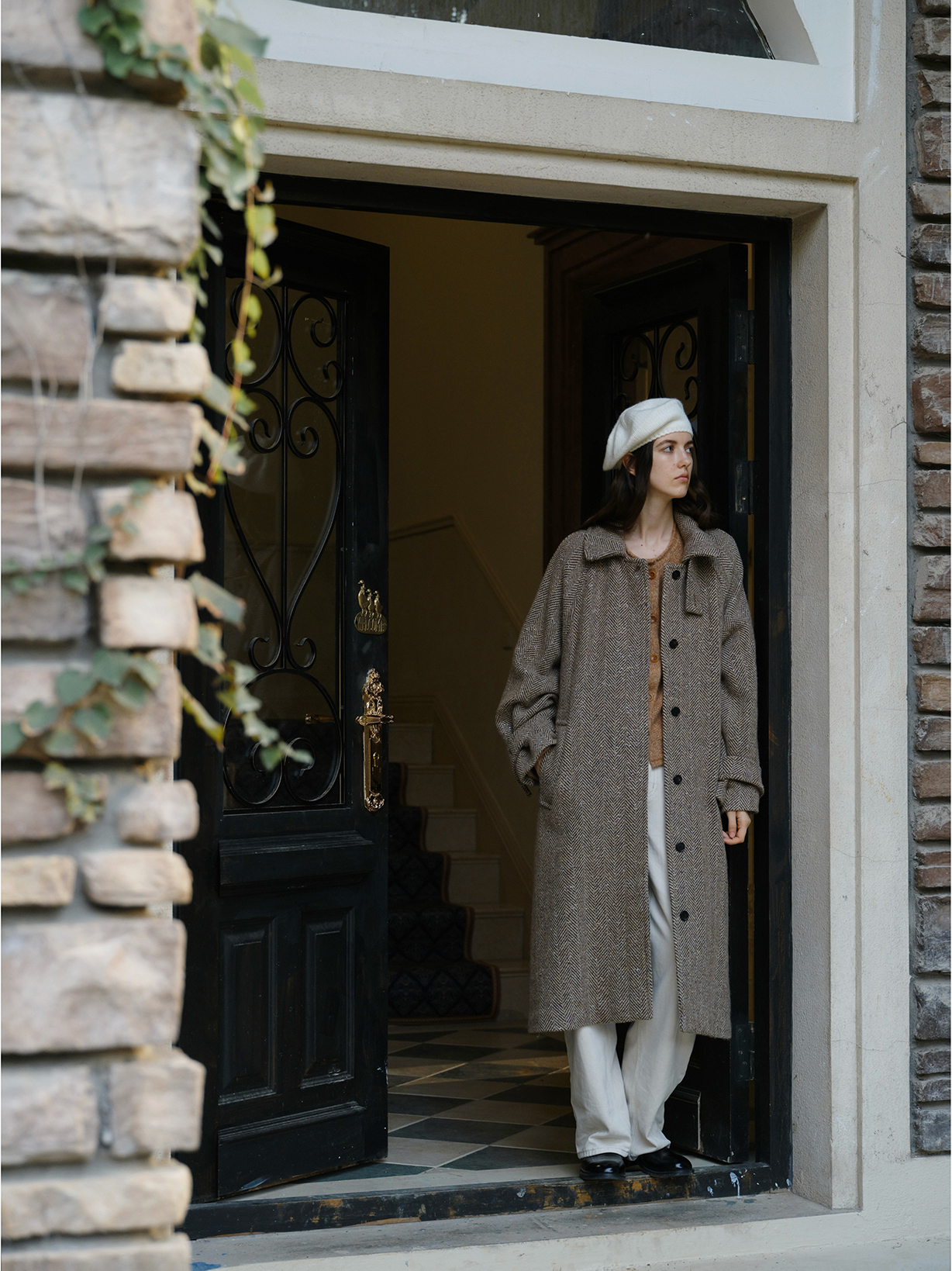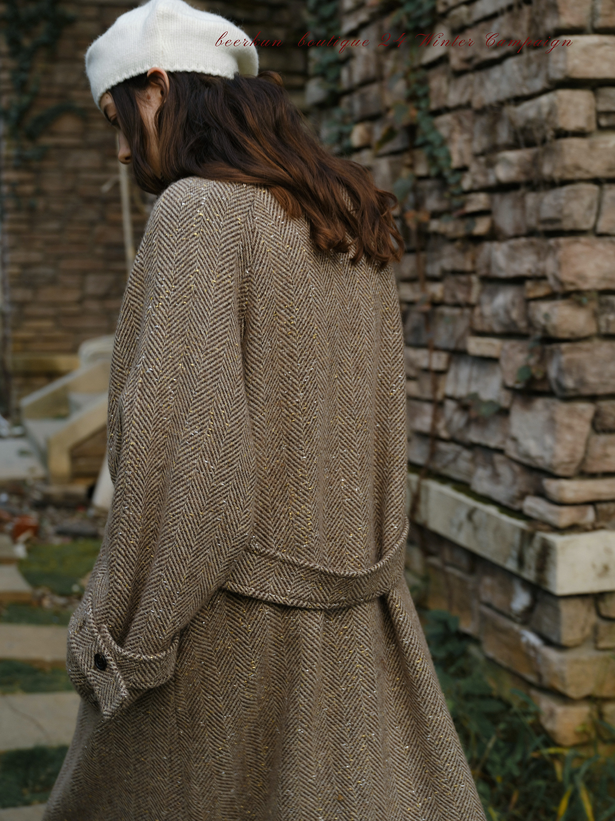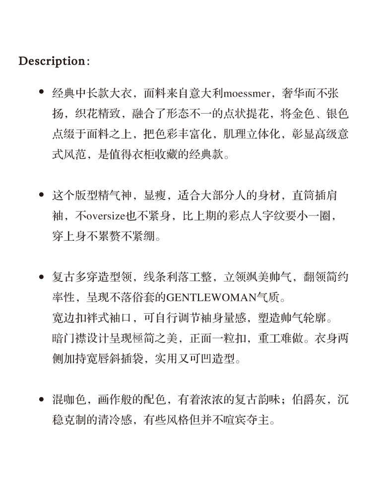 [特价]意大利Moessmer羊驼毛特种纱呢子大衣 混咖棕/伯爵灰