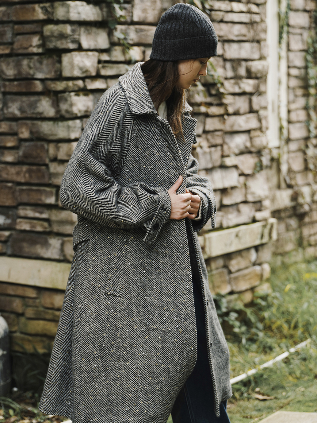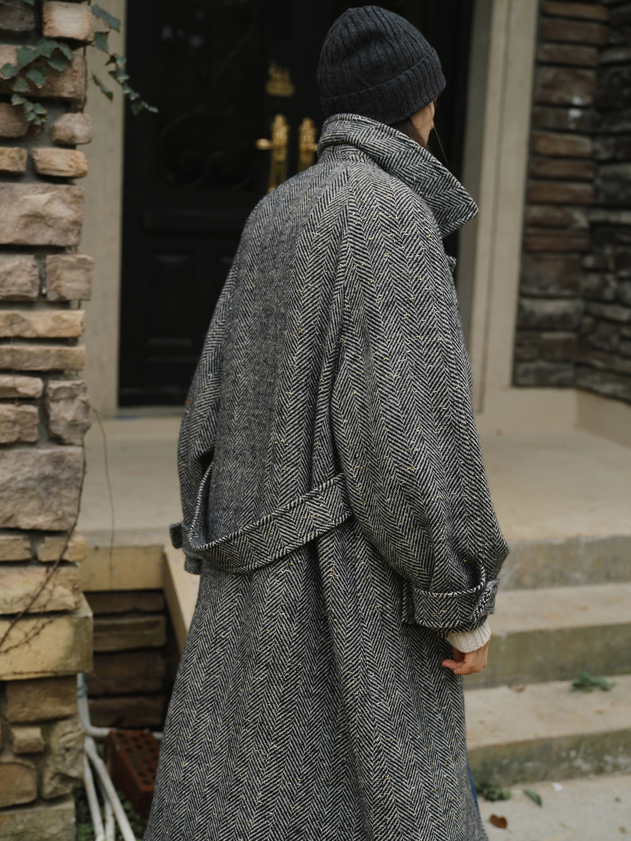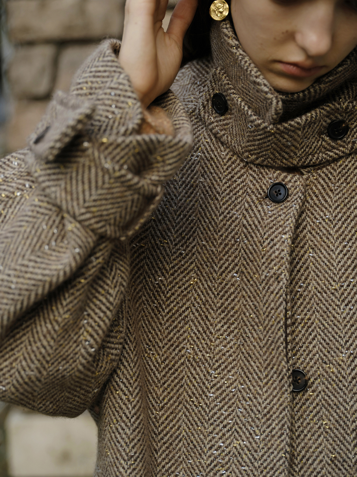 [特价]意大利Moessmer羊驼毛特种纱呢子大衣 混咖棕/伯爵灰