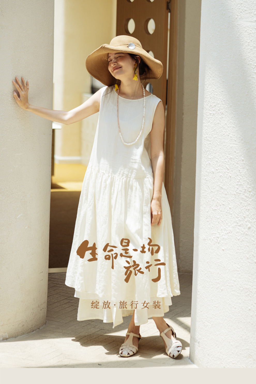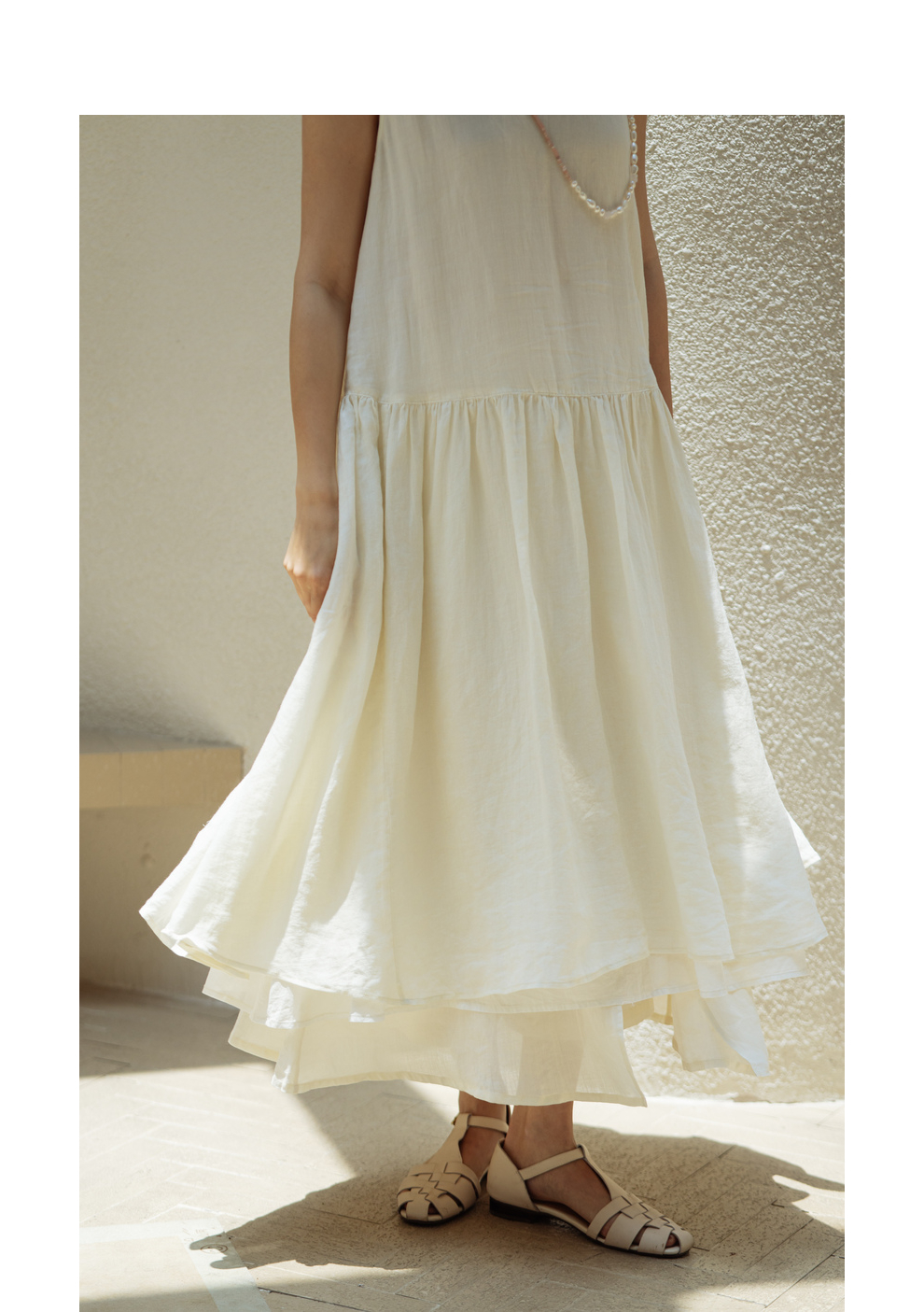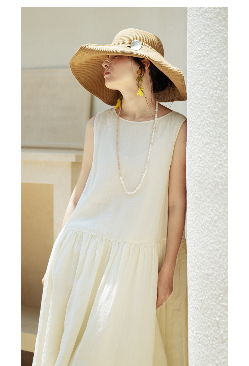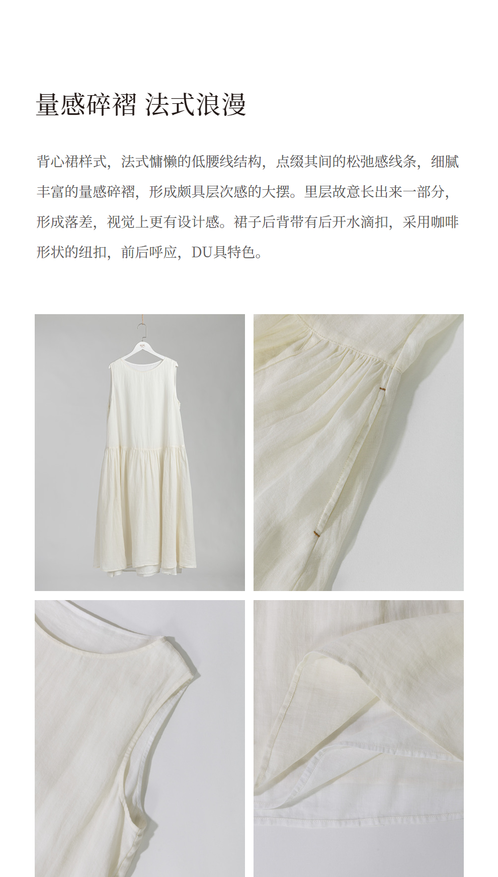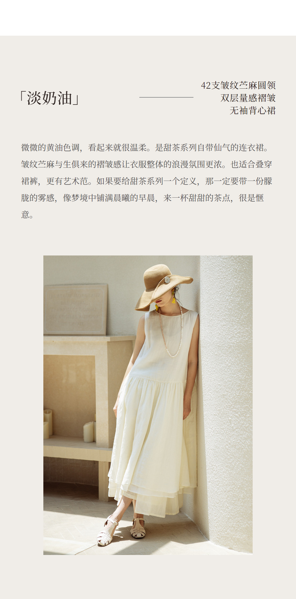 绽放368朵【甜茶系列·淡奶油】42支皱纹苎麻双层褶皱无袖背心裙