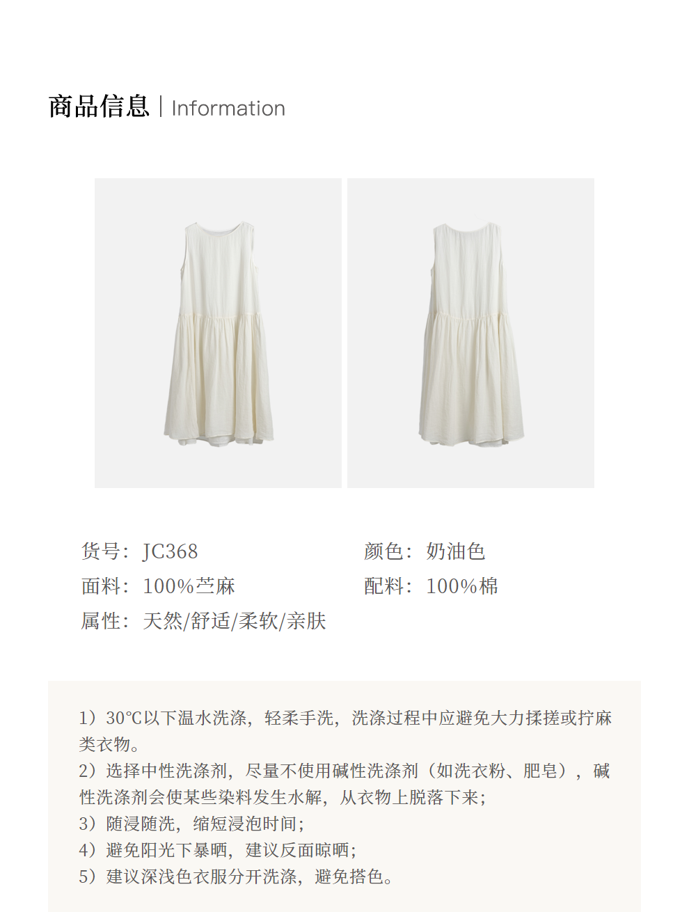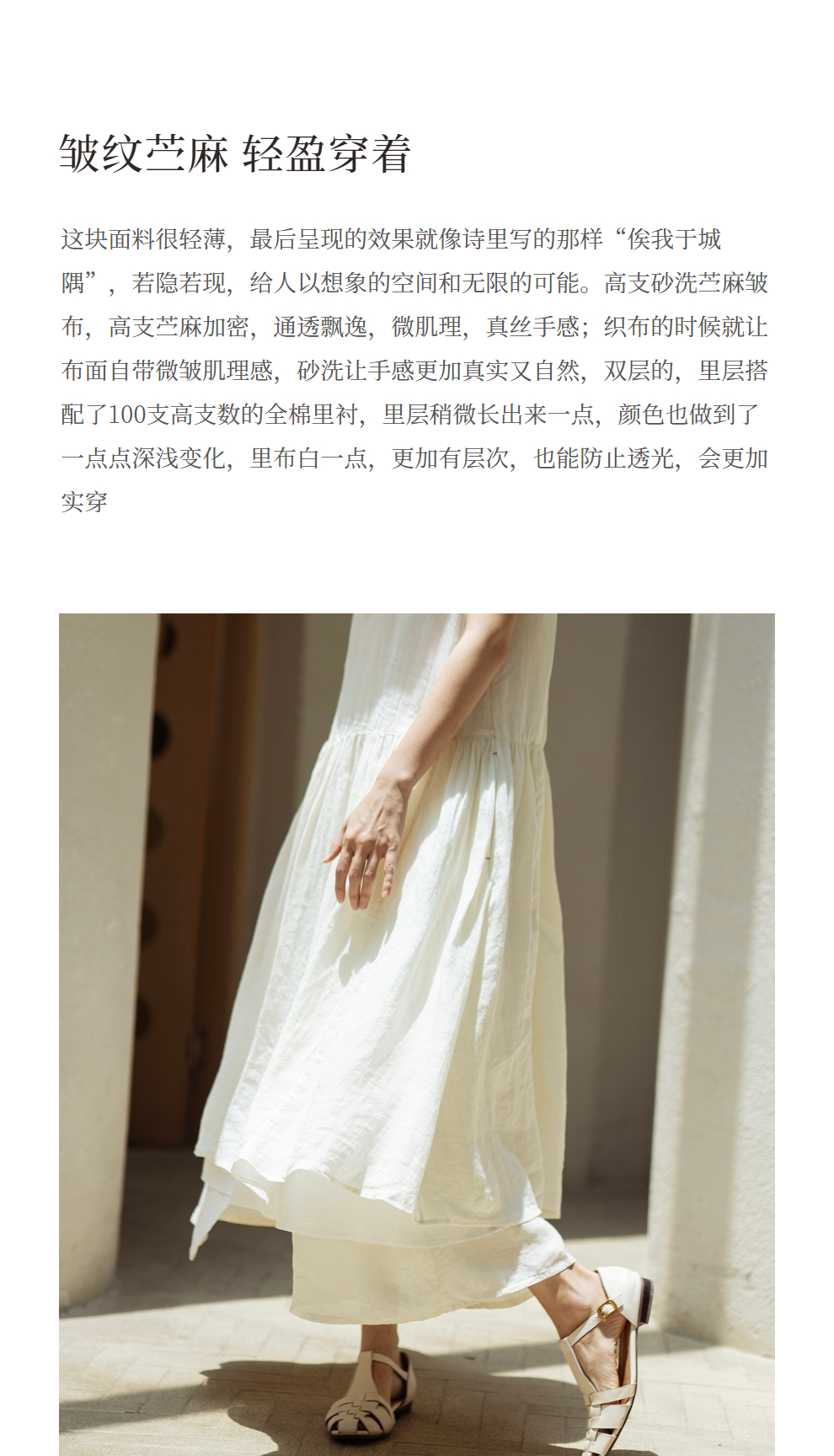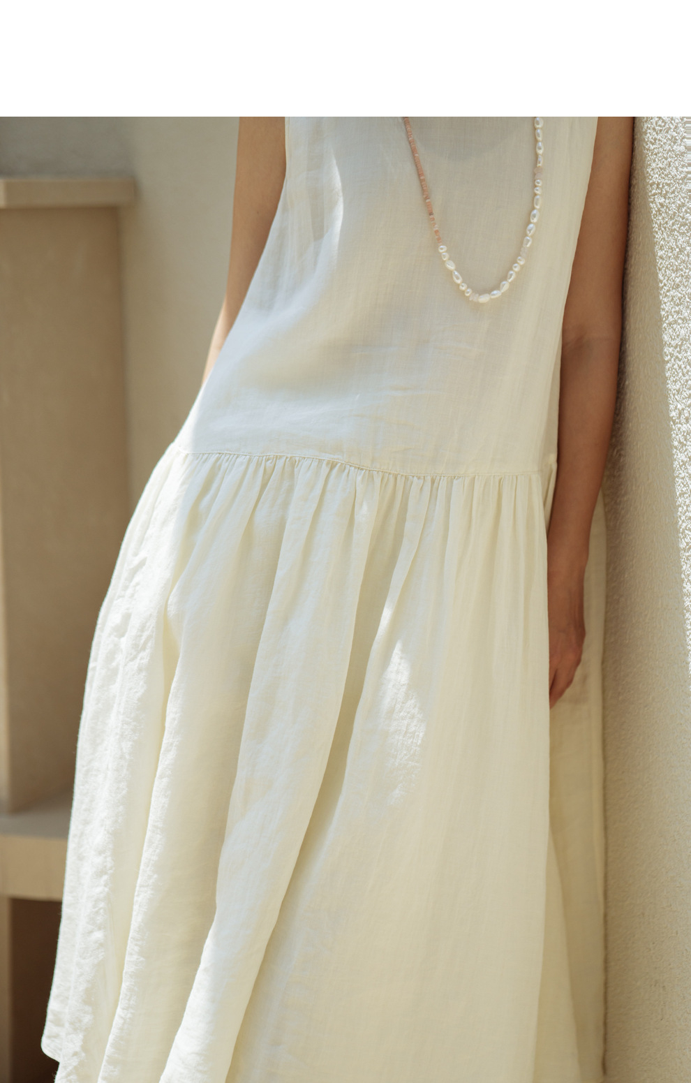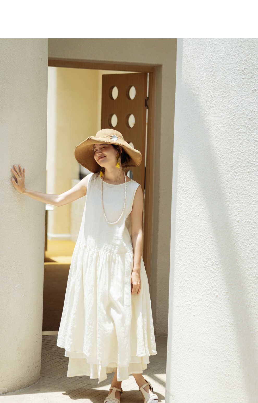 绽放368朵【甜茶系列·淡奶油】42支皱纹苎麻双层褶皱无袖背心裙