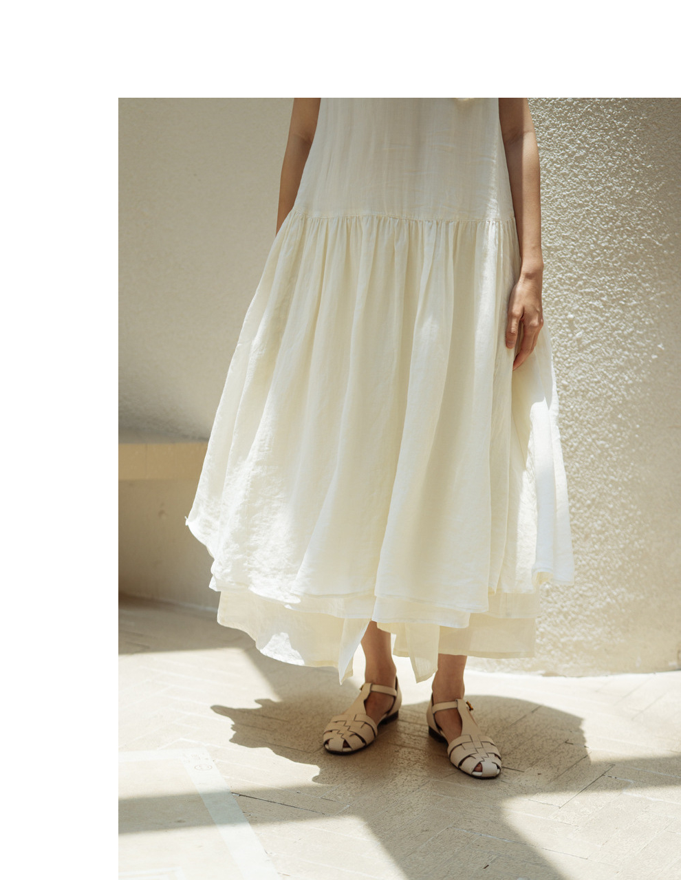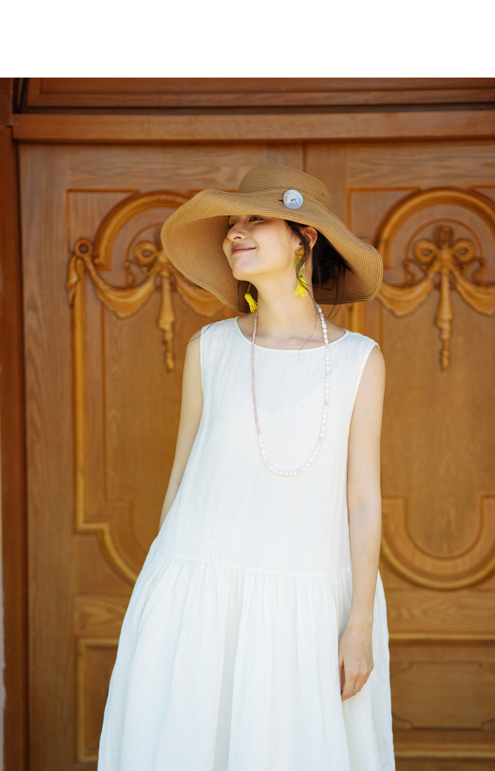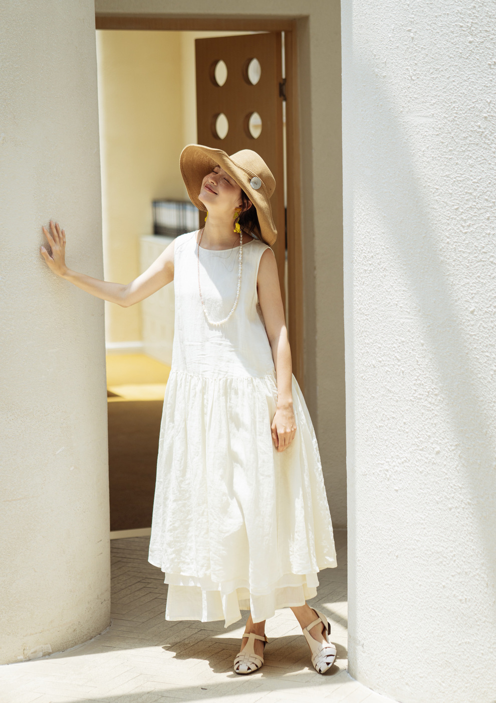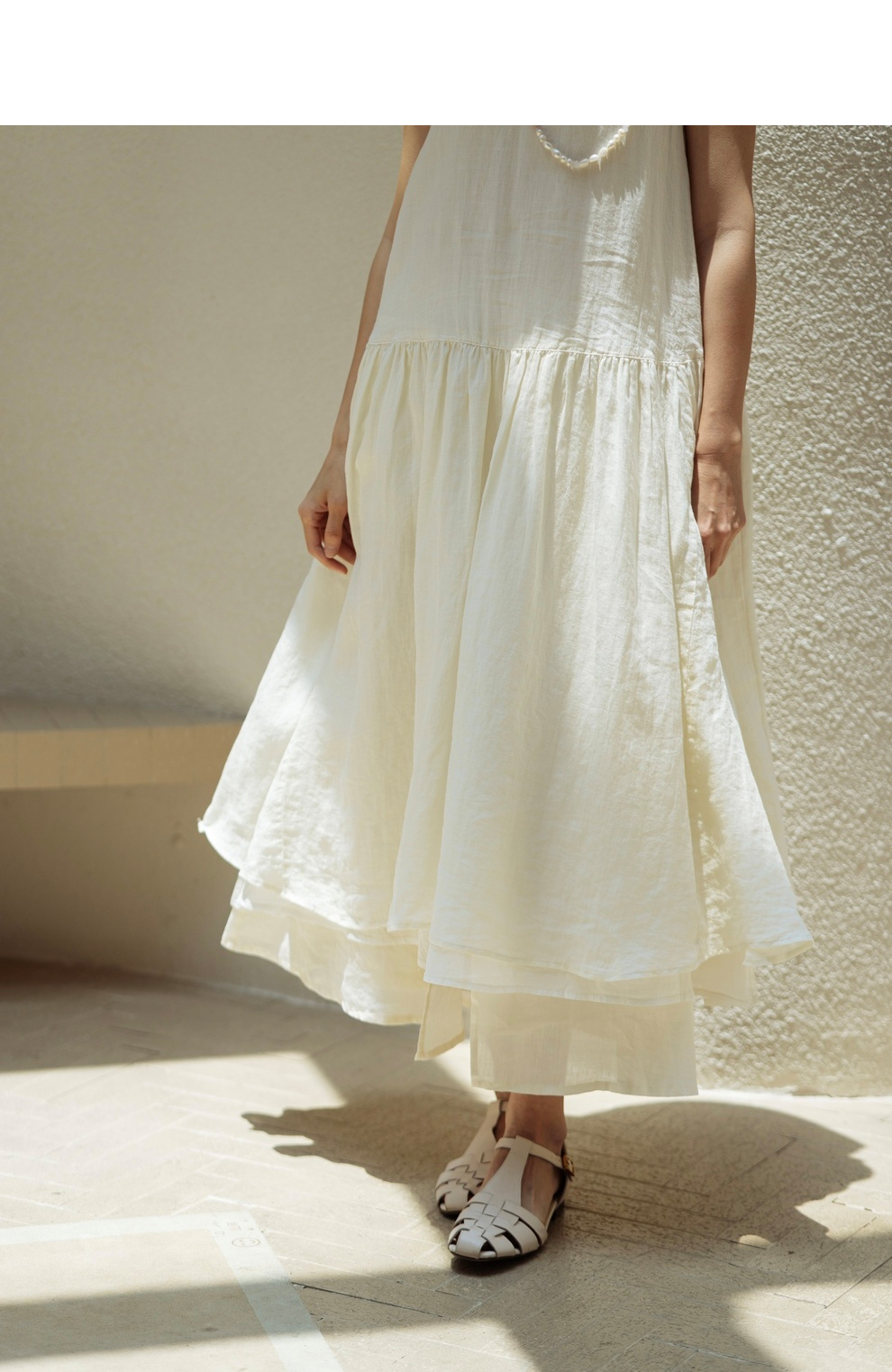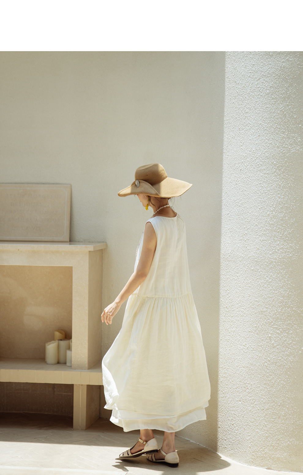 绽放368朵【甜茶系列·淡奶油】42支皱纹苎麻双层褶皱无袖背心裙