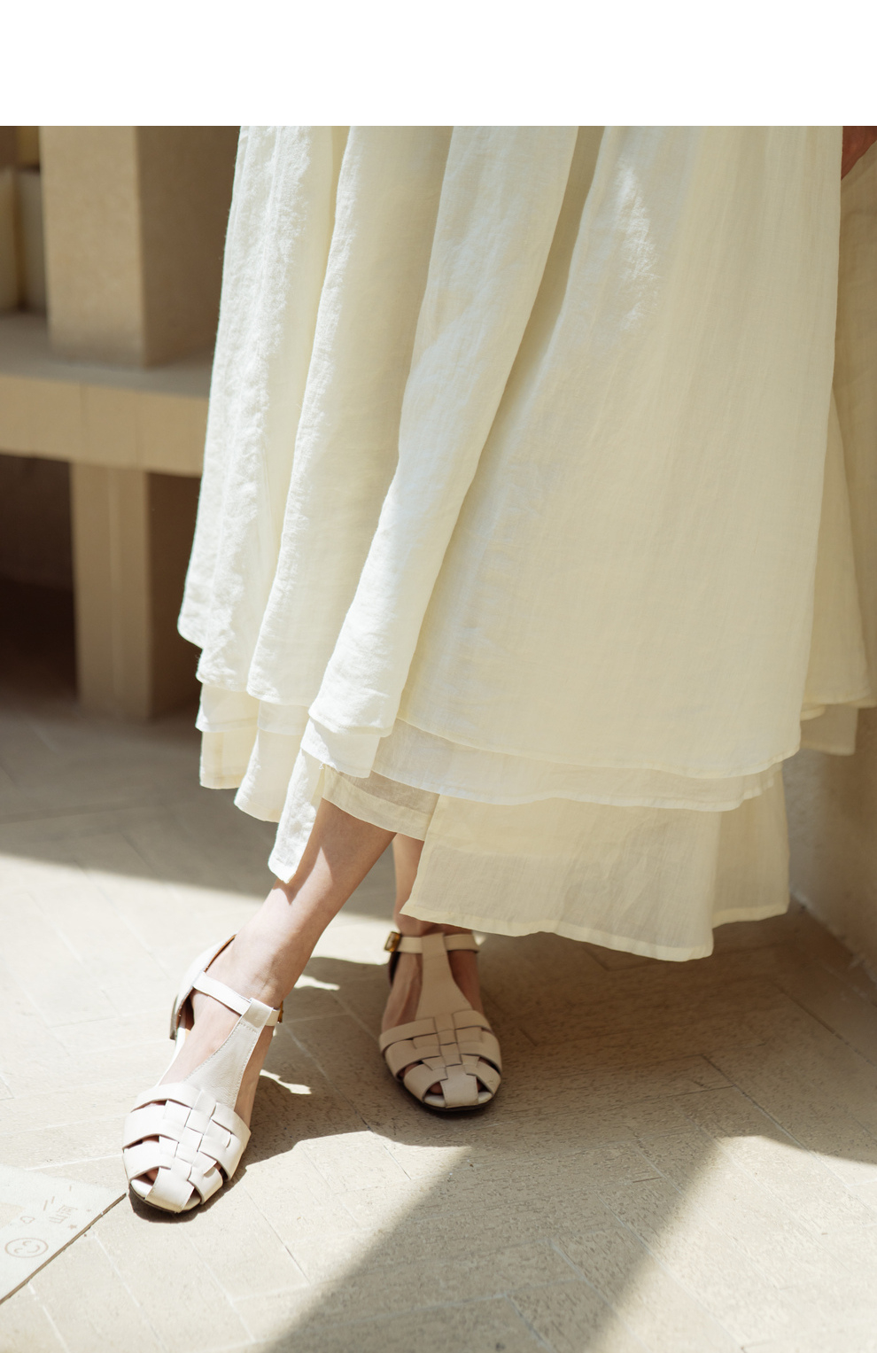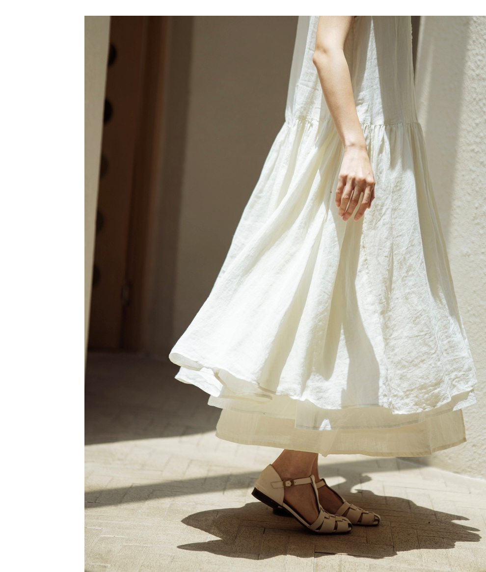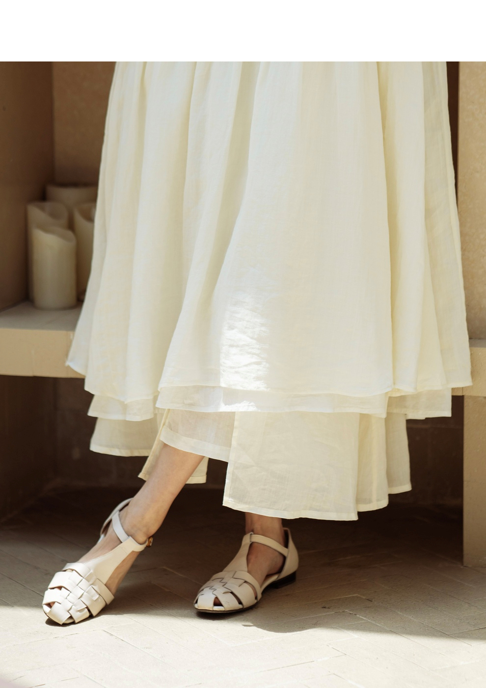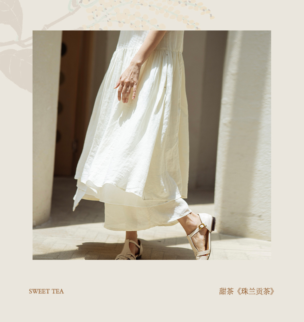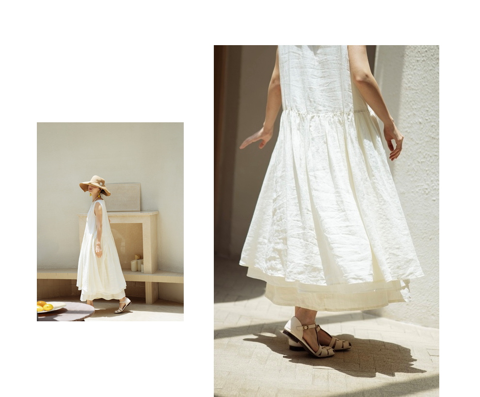 绽放368朵【甜茶系列·淡奶油】42支皱纹苎麻双层褶皱无袖背心裙