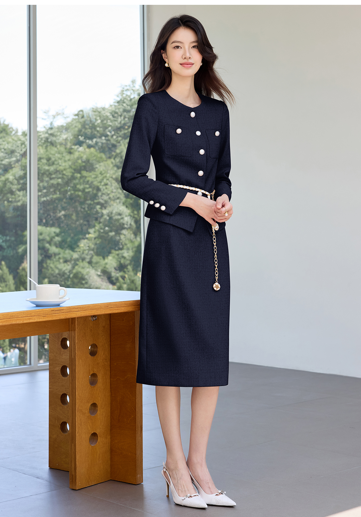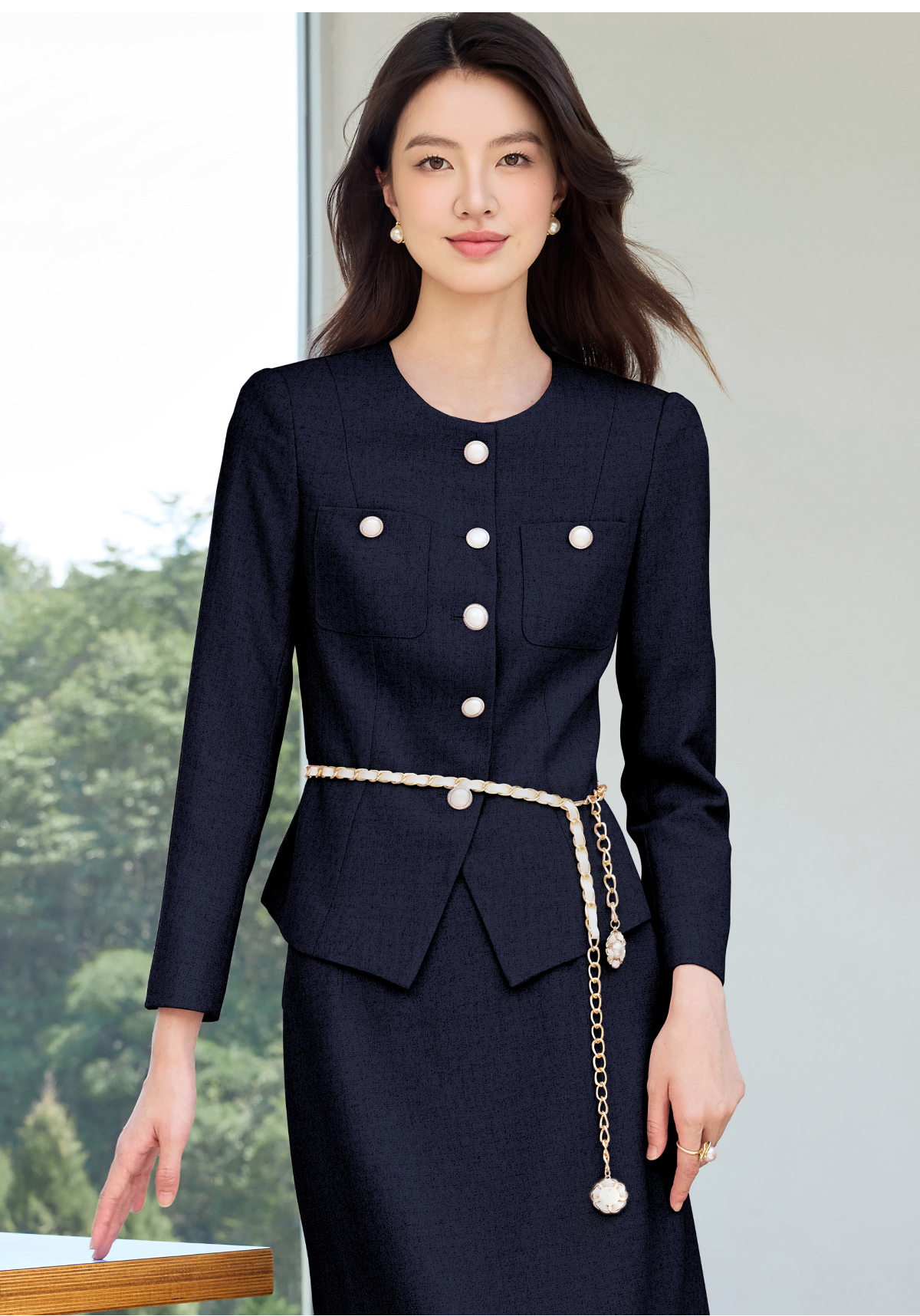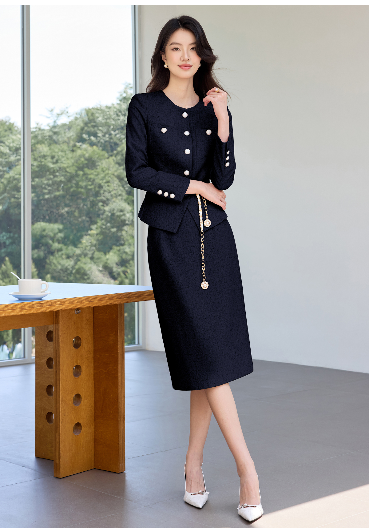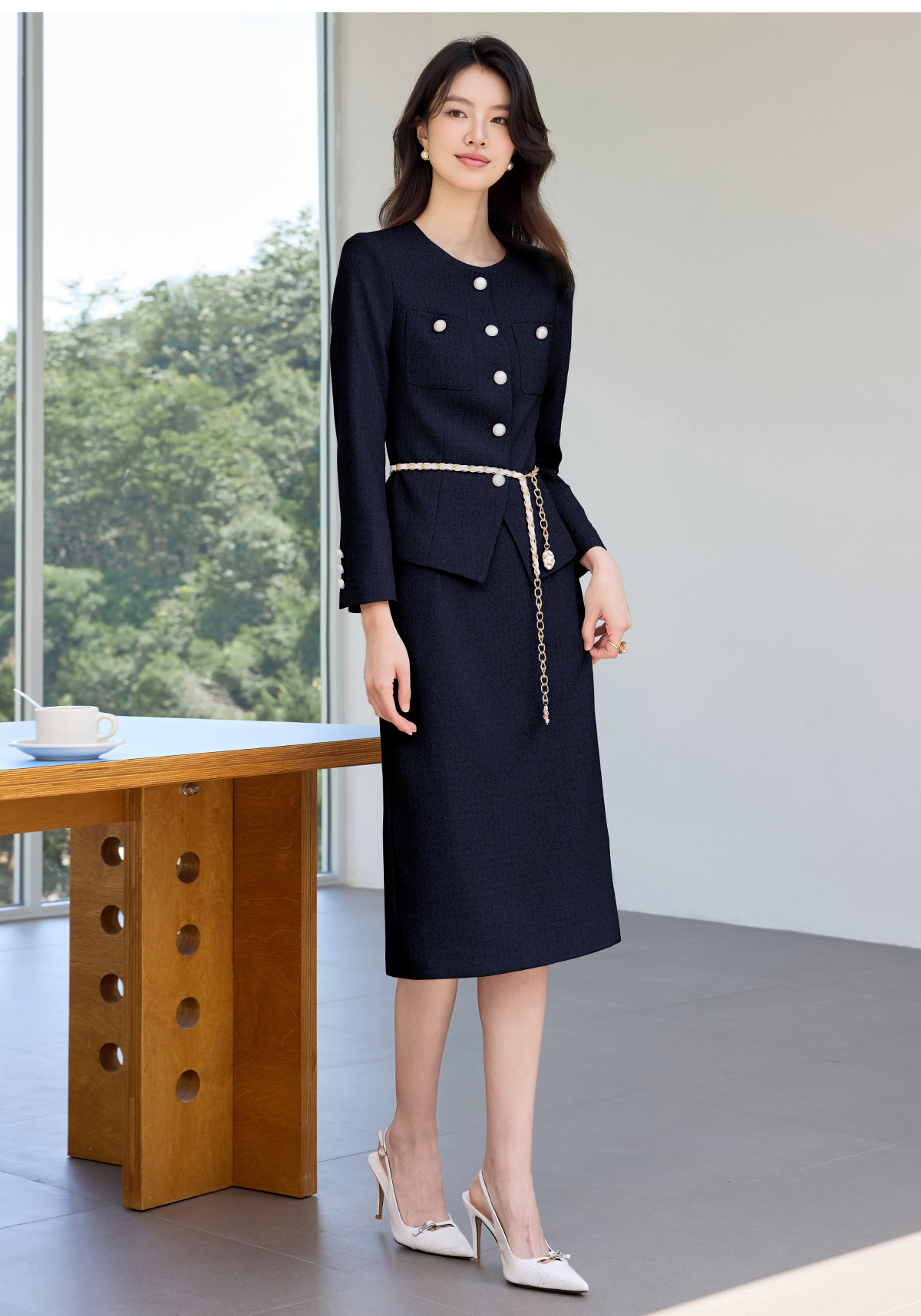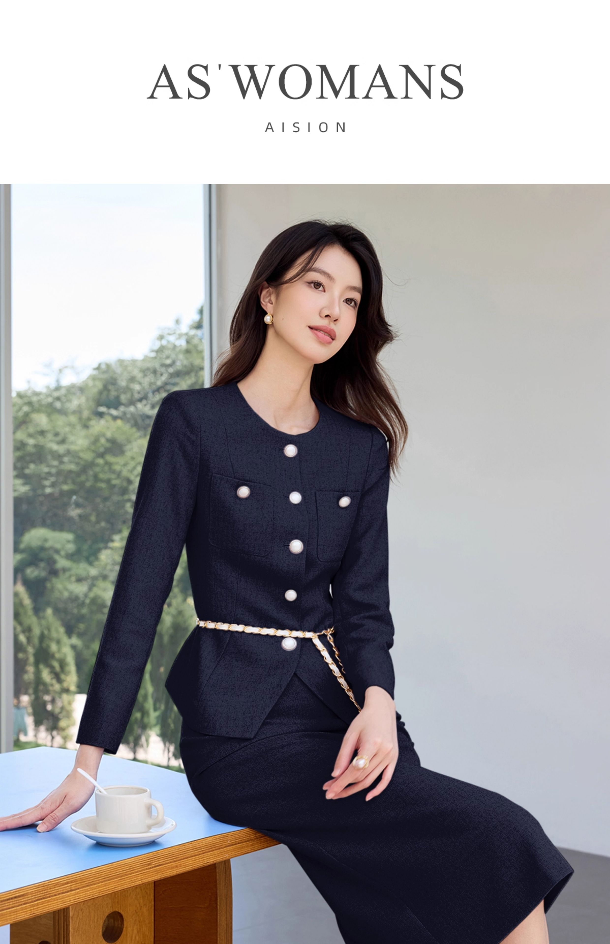 艾尚臣2025新款气质优雅藏青色圆领时尚套装高端百搭轻熟风两件套