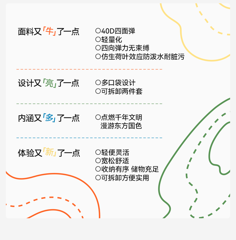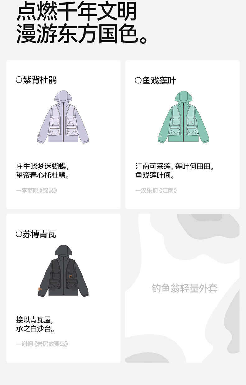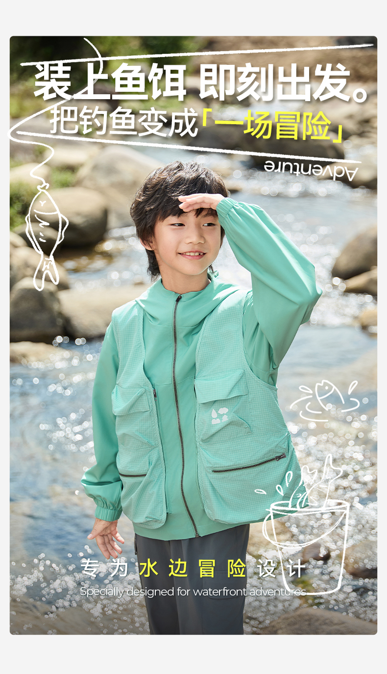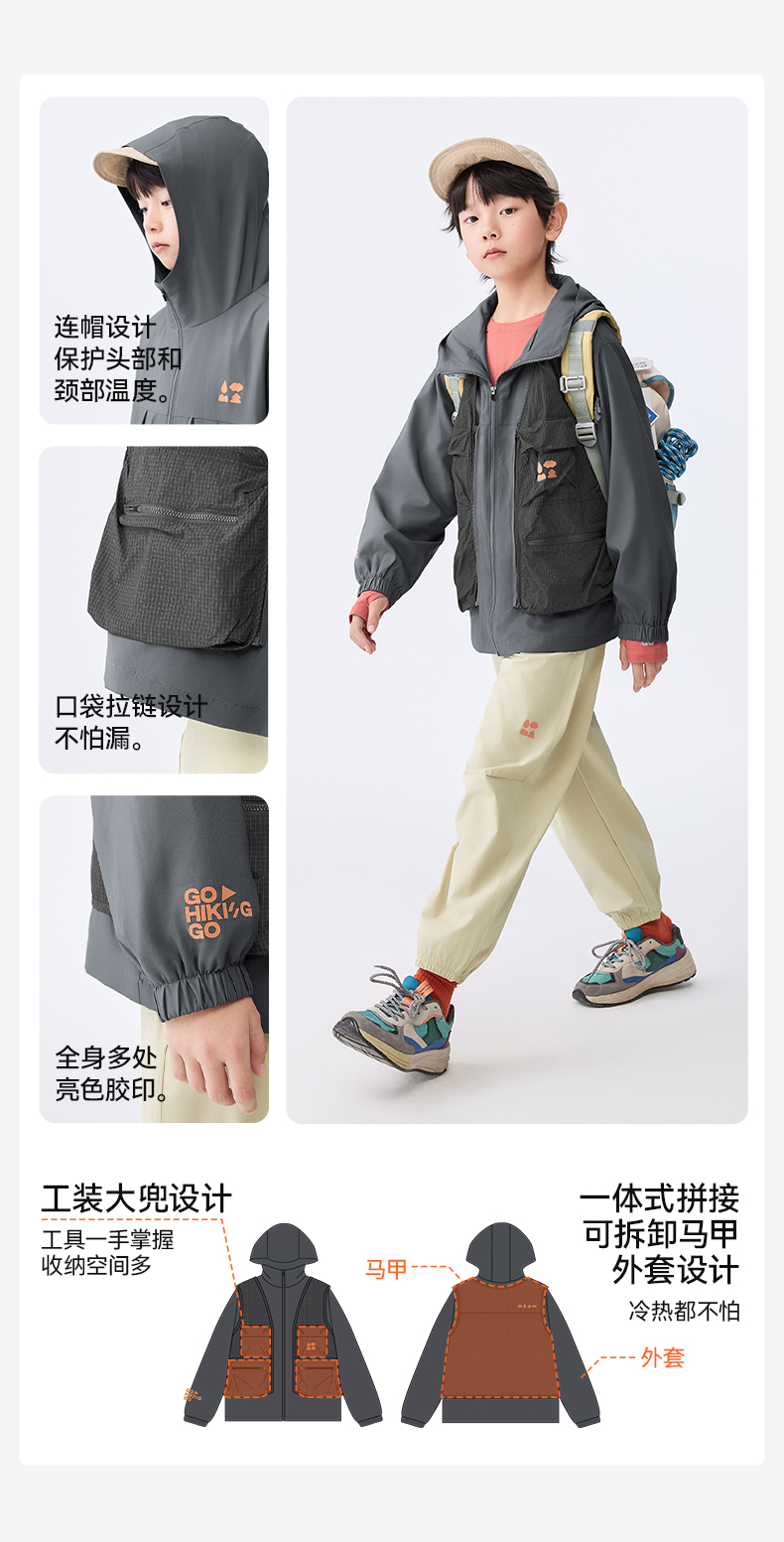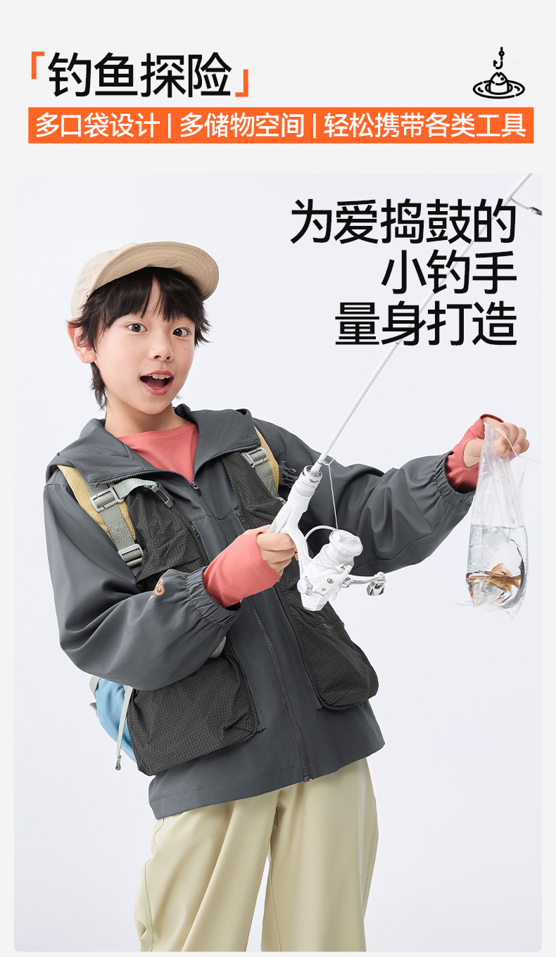 整个设计围绕户外钓鱼场景而设计,一件=两件,马甲可以拆卸,不同温度场景适穿性能非常强。工装多口袋,简直是钓鱼爱好者的本命外套。