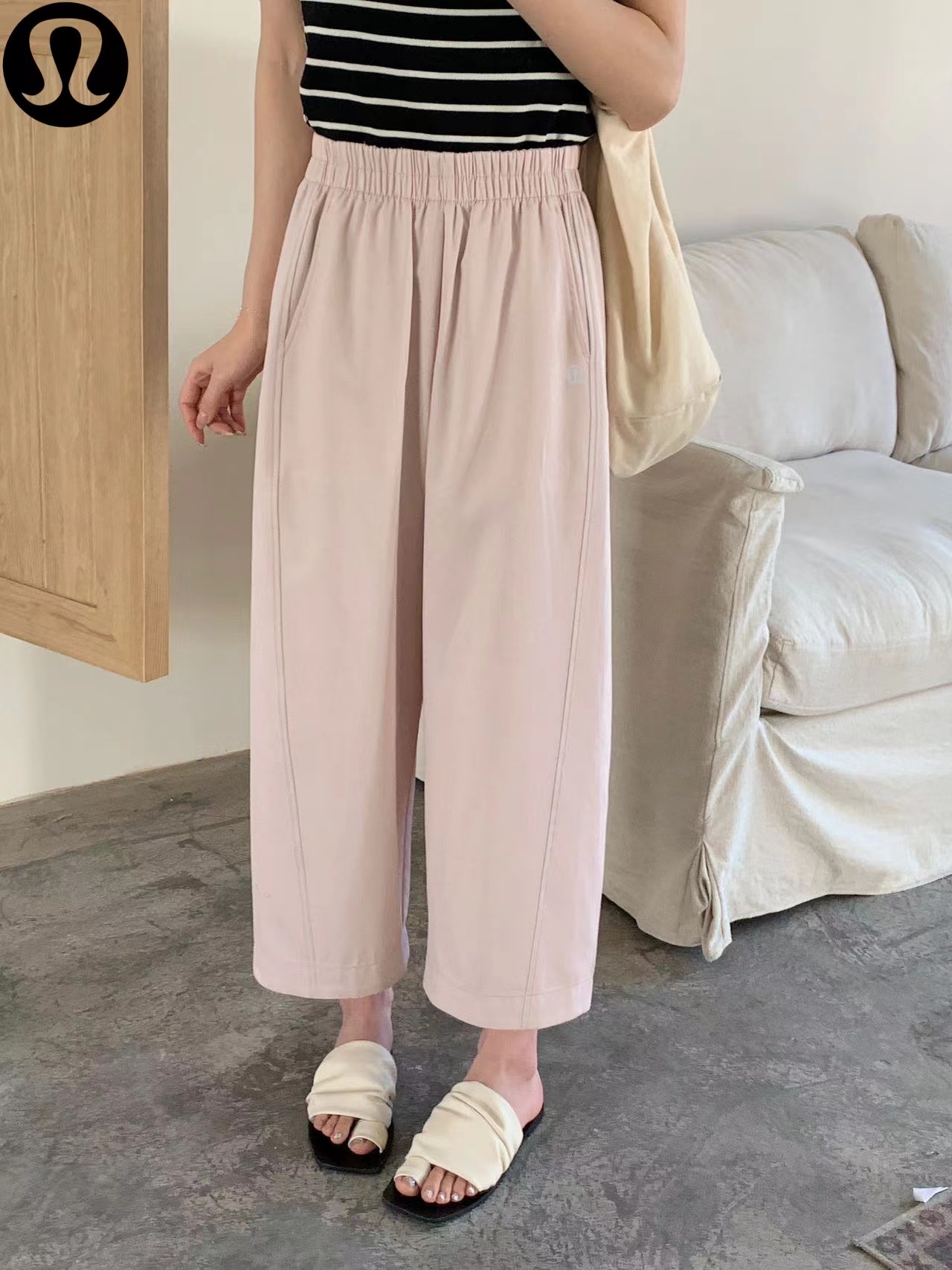 春夏季新款休闲九分裤采用自然腰头设计,纵向拉长腿部线条,九分裤长露出脚踝,视觉上显腿细、显高挑,小个子也能轻松驾驭。裤管宽敞不贴腿,wan美修饰胯宽、大腿粗、腿型不直等身材痛点,藏肉效果yi流。面料轻薄顺滑,自带凉感,春夏穿着透气不闷热;垂坠感ji佳,走动时飘逸灵动,毫无臃肿感。触感细腻柔软,亲肤不扎肉,日常久坐无束缚感。高弹松紧设计,包容各种腰腹围度,自带抽绳可自由调节,穿脱方便,不勒腰。裤身侧边点缀简约标识,低调jing致,提升单品gao级感,不浮夸。细节处的明线走线增加版型挺括度,不易软塌,视觉上更利落。配备侧边口袋,放置手机、钥匙等小物,兼顾美观与实用性。韩系慵懒风、极简通勤风、松弛感休闲风,兼具舒适与时髦度。适配T恤、针织背心、衬衫、薄款卫衣等各类上衣,可盐可甜。适合日常通勤、逛街、居家放松等多种场景,是春夏衣柜里的“wan能神裤”。自带清新氛围感,显白提气色,少女感满满。高腰显瘦、垂坠感好、冰丝透气、松紧不勒、九分显高、夏季神裤