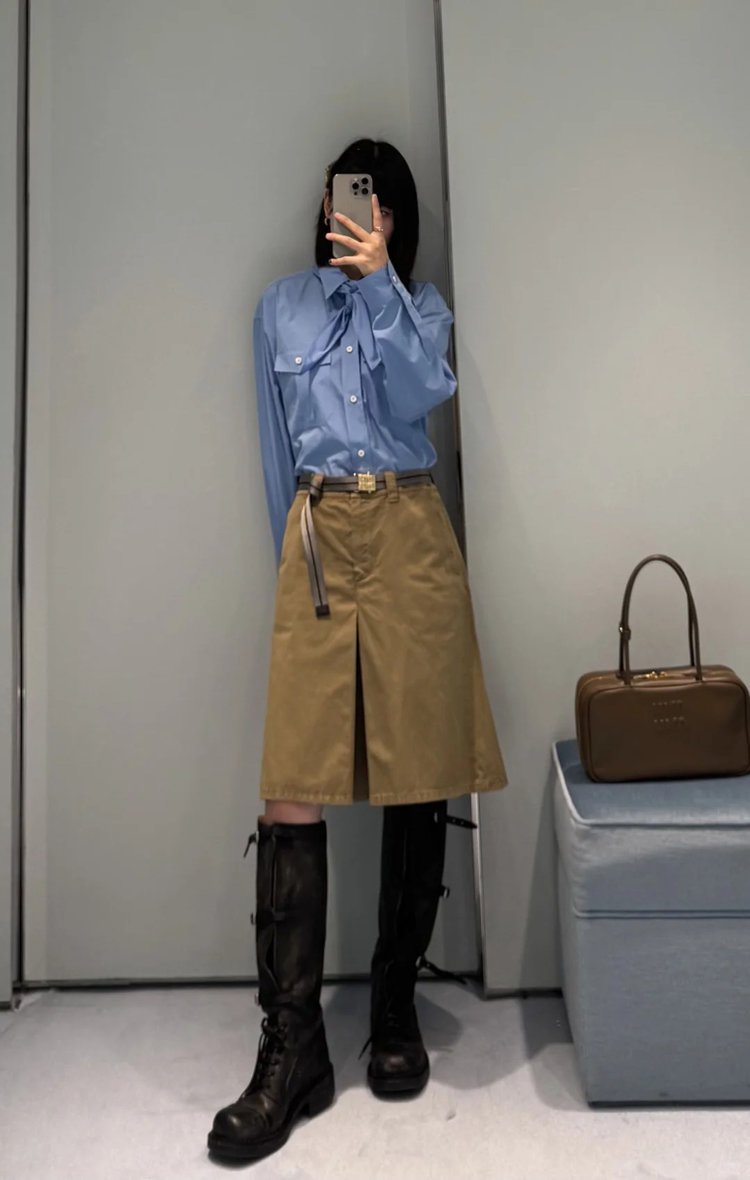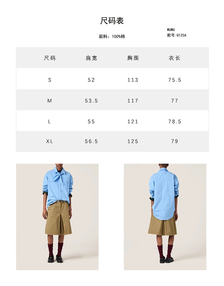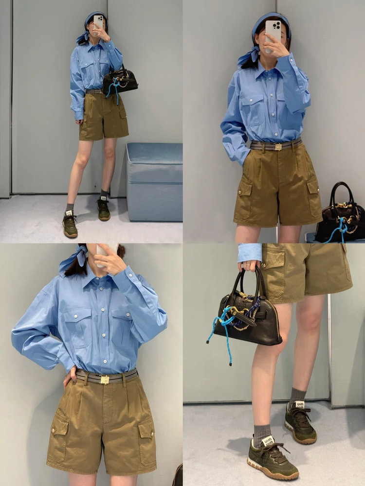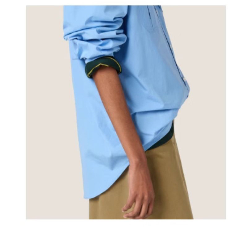 工艺:细节之处见真章,精致藏于毫厘间,MIUMIU 对工艺的执着,在这件衬衫上体现得淋漓尽致。标志性领结设计,以流畅剪裁与精准车线勾勒优雅弧度,海军风领结的灵动与衬衫的利落碰撞出奇妙火花,既保留少女感又不失摩登气场。