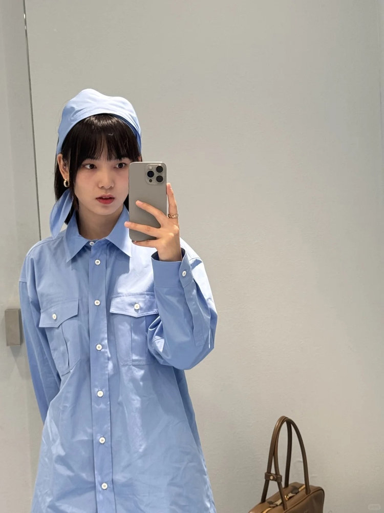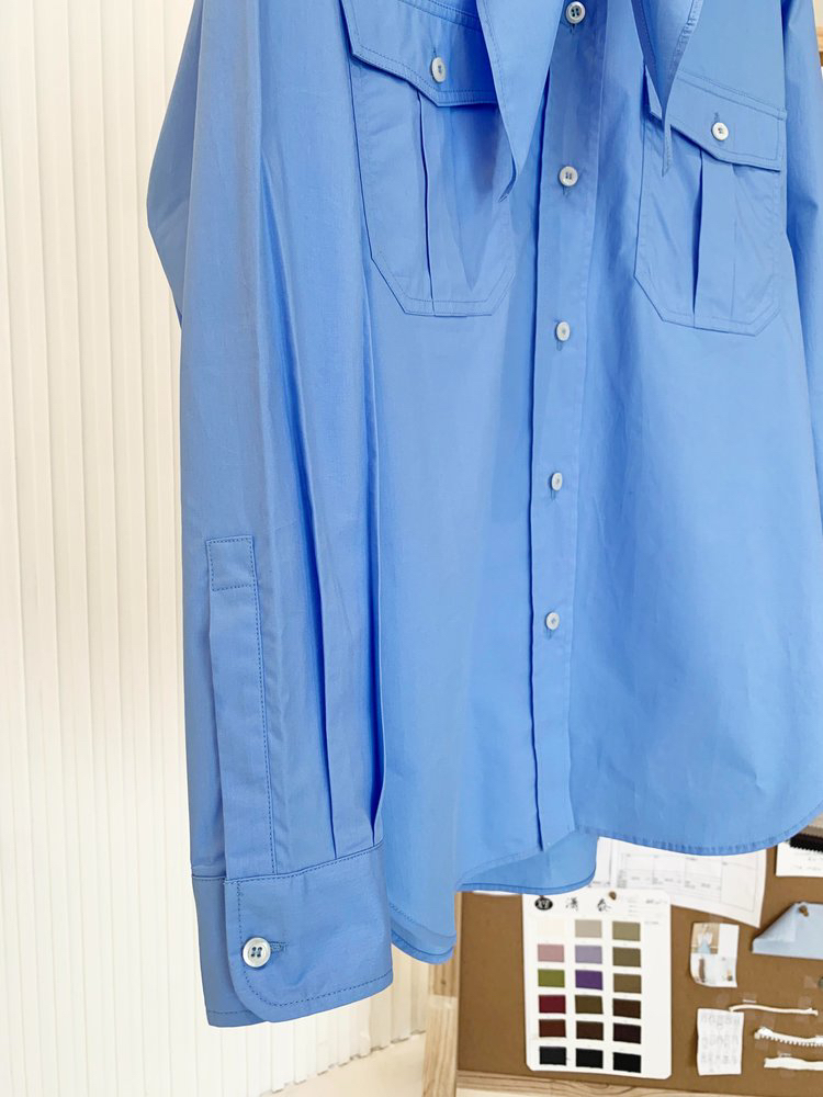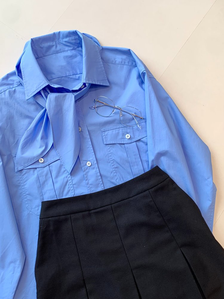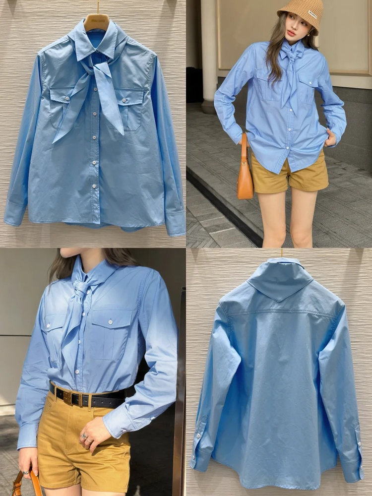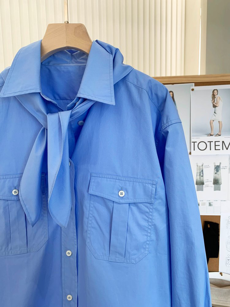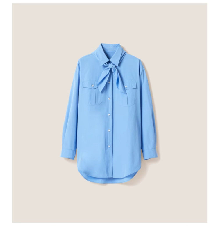 女士府绸质感全棉衬衫带围巾 解锁高阶时髦的穿搭密码 100% 优质全棉面料 独特筋骨感 久穿不变形 双口袋的立体设计