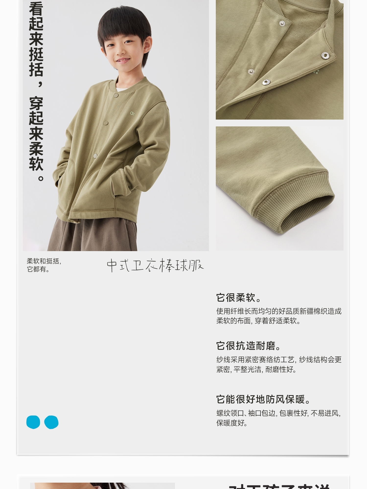 【春Vol.1】幼岚柔软挺括中式卫衣棒球服不易起球24春季新款儿童男女童棒球服ZY