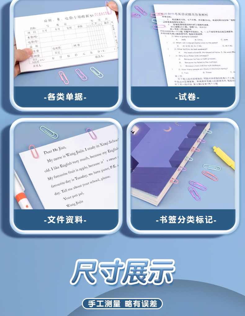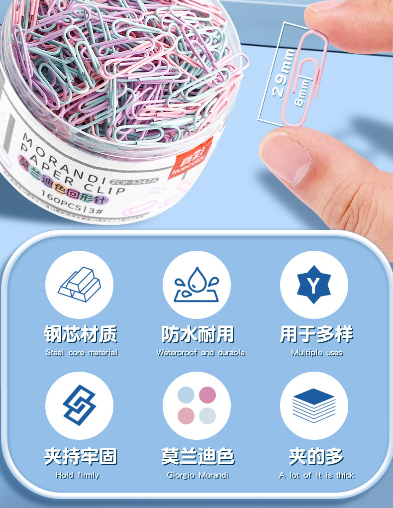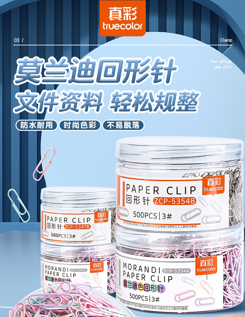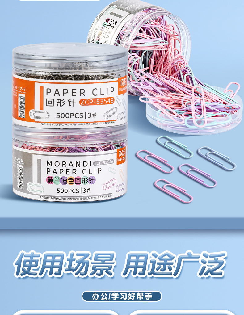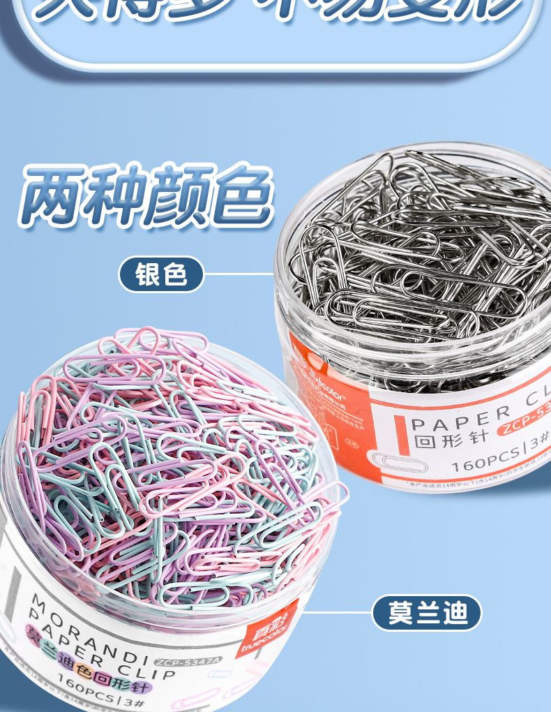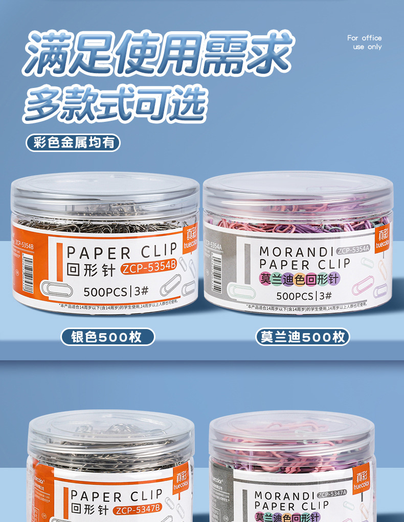 真彩彩色回形针大号文件书签回型针收纳盒文具办公用品大号曲别针