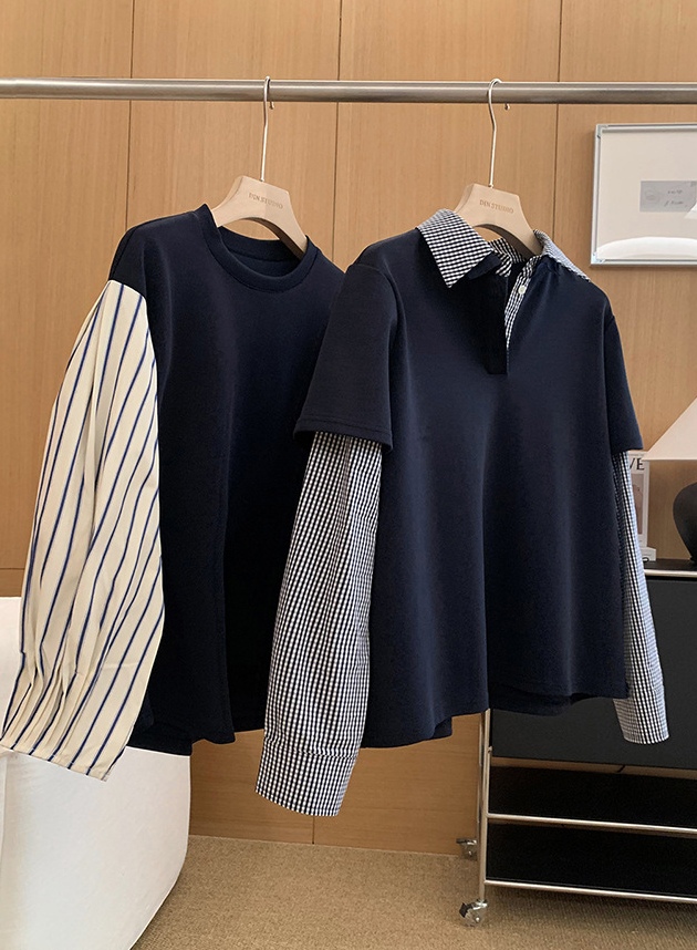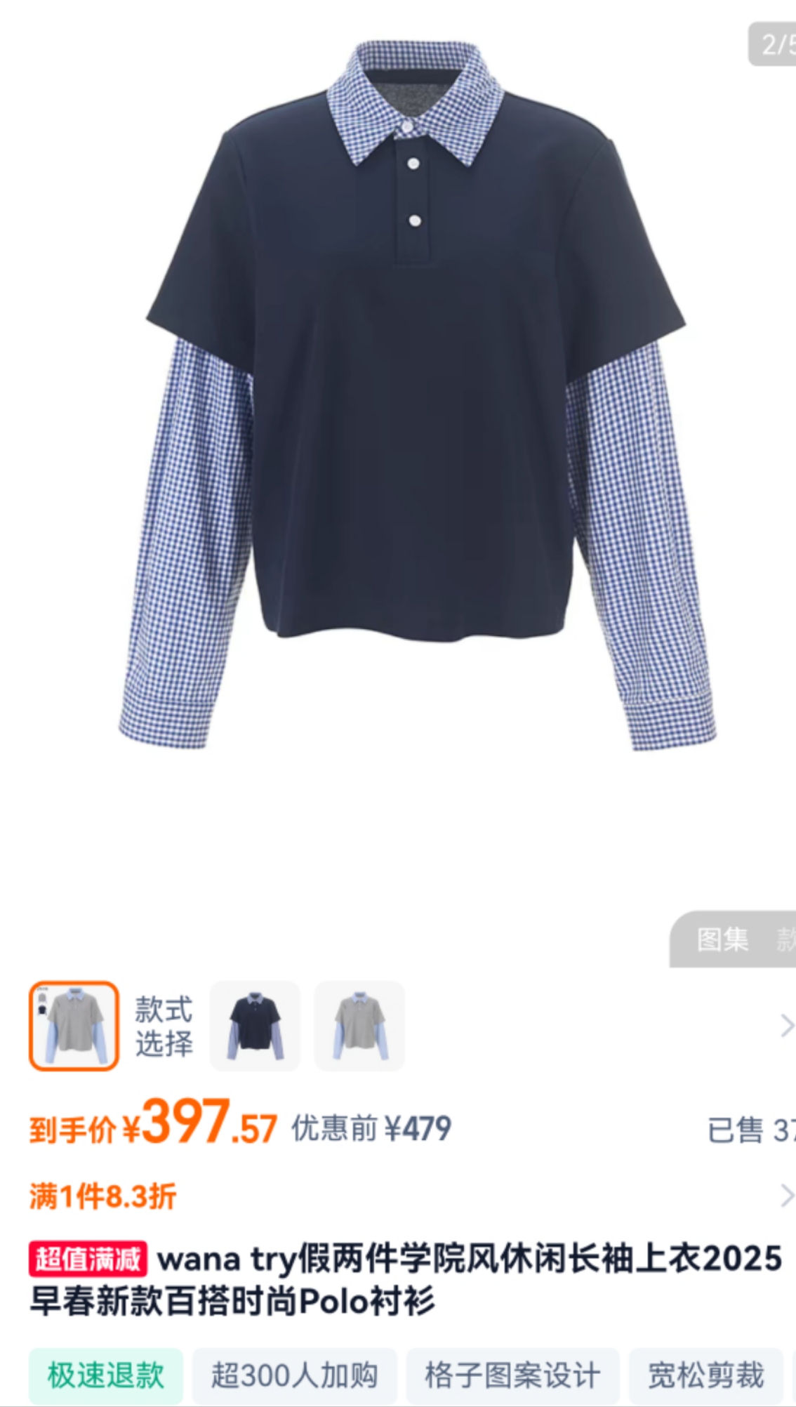 miu风双版本撞色拼接衬衫袖假两件卫衣!#这种假两件远比一般的两件套要黄显瘦!黄好穿!做了polo版+套头版双版型供大家选择~polo版大身选用篙支棉混纺面料,挺阔不易变形拼接部分quan棉面料,吸汗透气,不闷肌肤套头版篙支篙密珠地棉+衬衫棉双结构面料,色牢度高