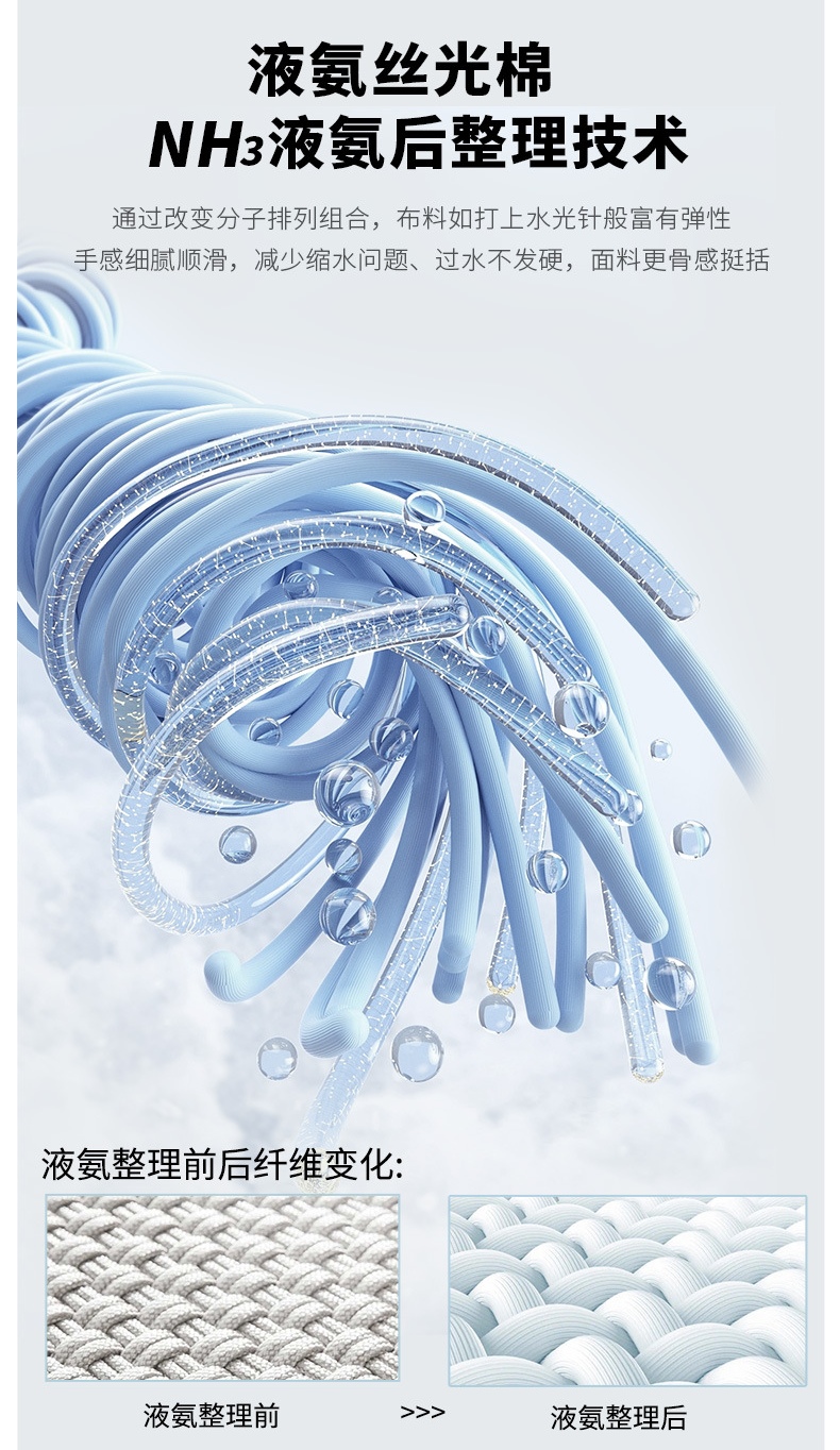 液氨丝光棉,通过改变分子排列组合,布料如打上水光针般富有弹性手感细腻顺滑,减少缩水问题、过水不发硬,面料更骨感挺括~
