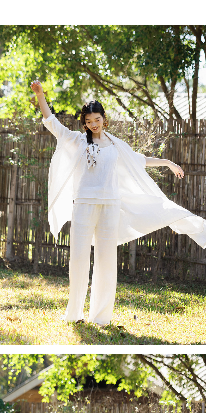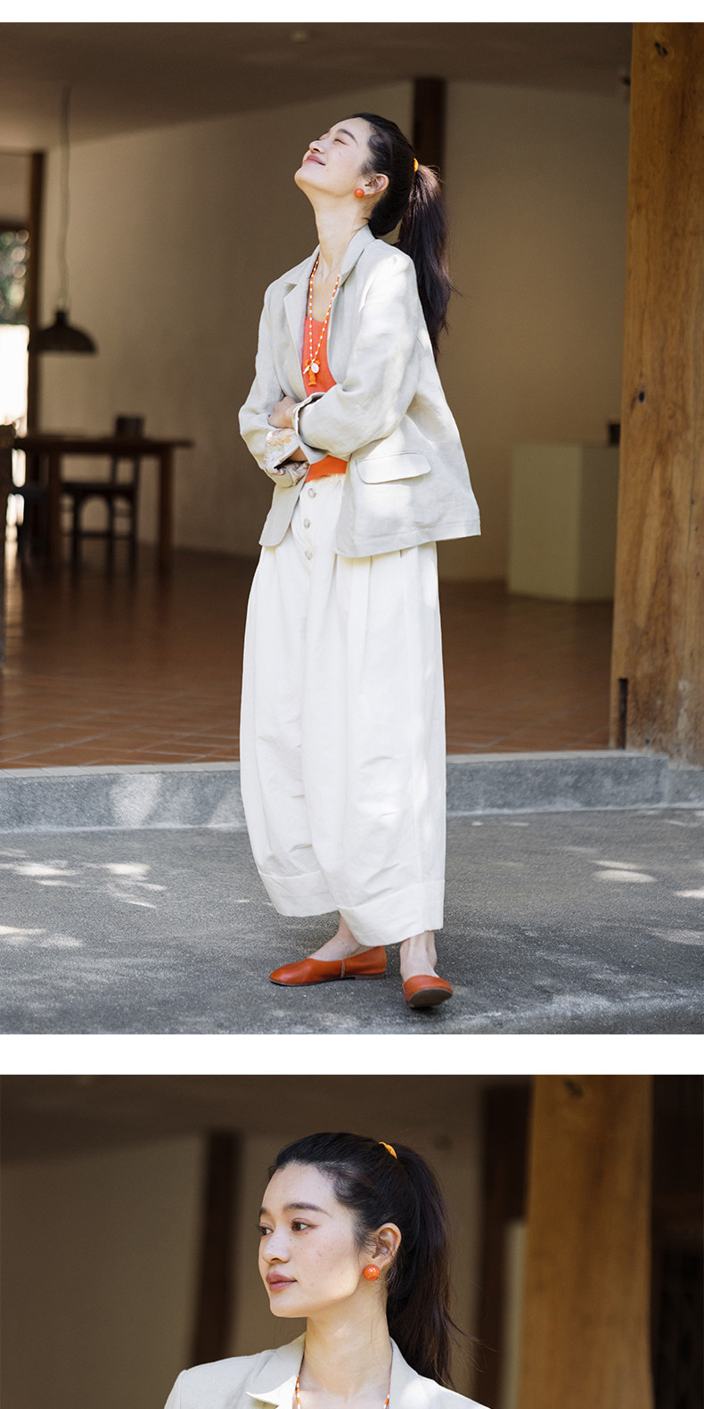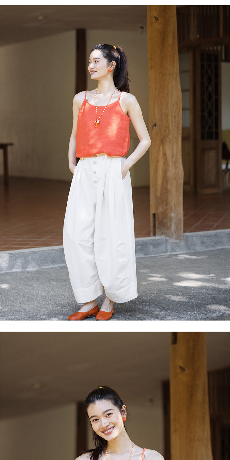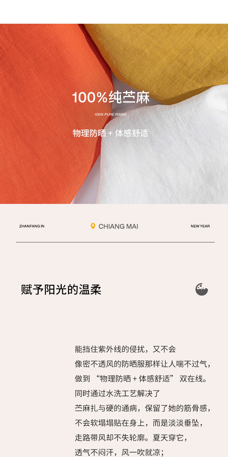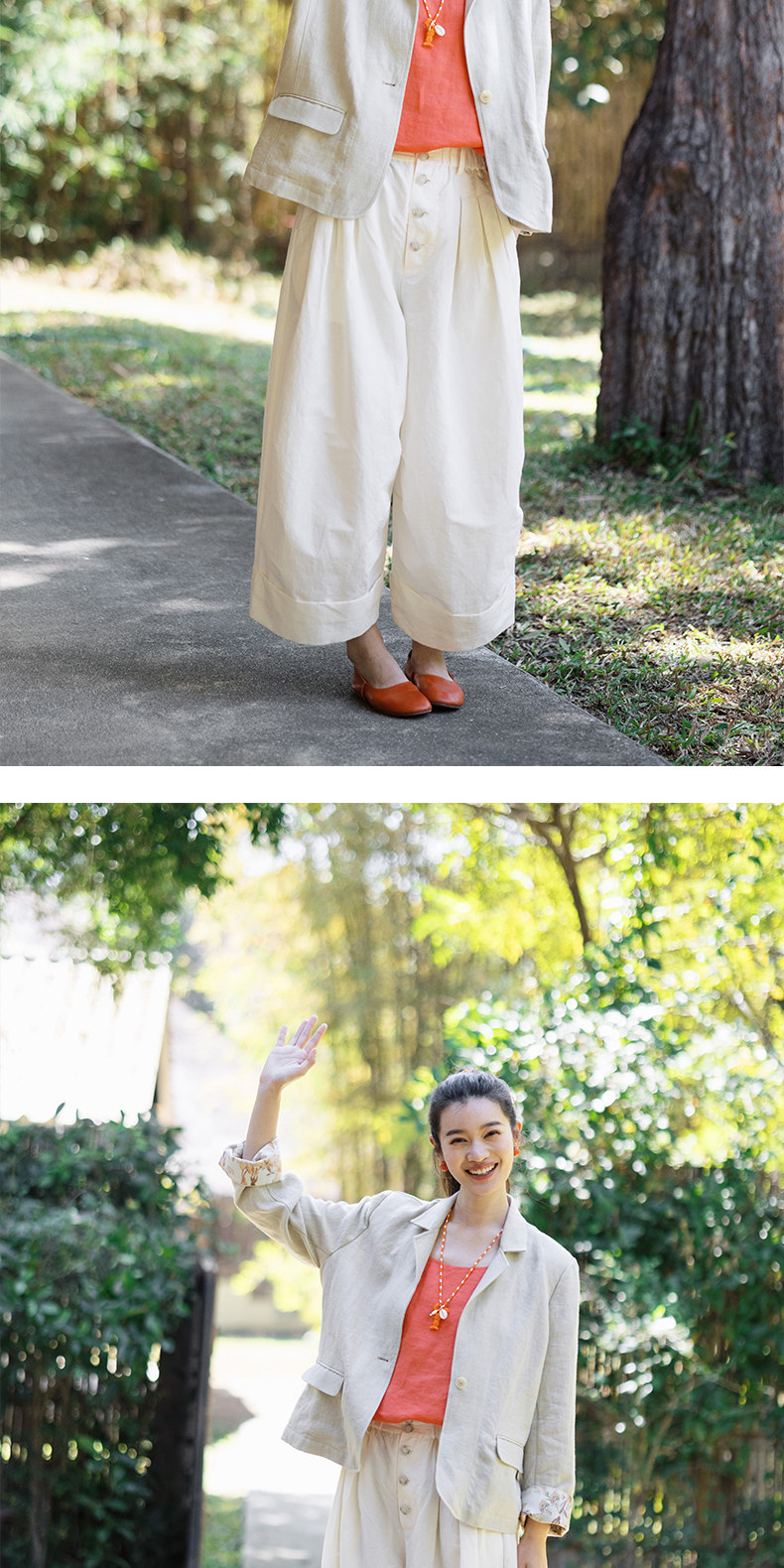 以天然亚麻为载体,融合热烈色彩与自在剪裁为身在城市、心怀远方的女性提供兼具美学与舒适的旅行着装