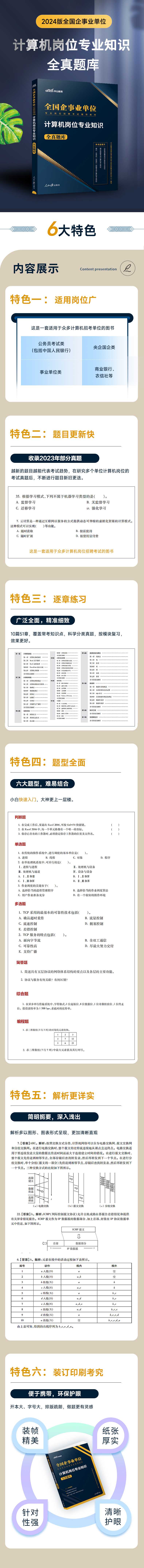 《中公版2024全国企事业单位专业岗位招聘考试辅导教材:计算机岗位专业知识全真题库》是由中公教育全国企事业单位专业岗位招聘考试研究中心精心研发而成的,针对所有计算机专业岗位的企事业单位的招聘考试。本书共分为十篇,各篇的每章都分题型设有练习题供考生学习使用。本书在编写过程中以企事业单位真题为研发基础,力求贴近计算机岗位考试的真实情况,使图书更具应试效果。