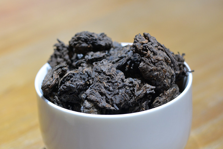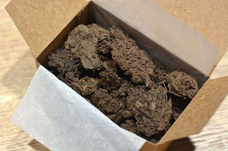 普洱熟茶都是经过人工洒水渥堆发酵的。在这个过程中,每过一段时间,就要人工把这堆茶翻几翻,以免里面温度太高把茶给焖焦。经过反复不断地翻,茶叶会分泌出一些果胶来,因为果胶比较粘稠,所以有些茶叶就粘在一起变成一团团的疙瘩。等茶叶发酵完毕,茶农会把这些茶叶疙瘩拣出来,用手把它解开,然后放回到茶叶堆里,而有的实在粘的太牢了,如果要解开的话会将茶叶弄碎了,只好另外放成一堆,变成了“疙瘩茶”,所以也叫“老茶头”。