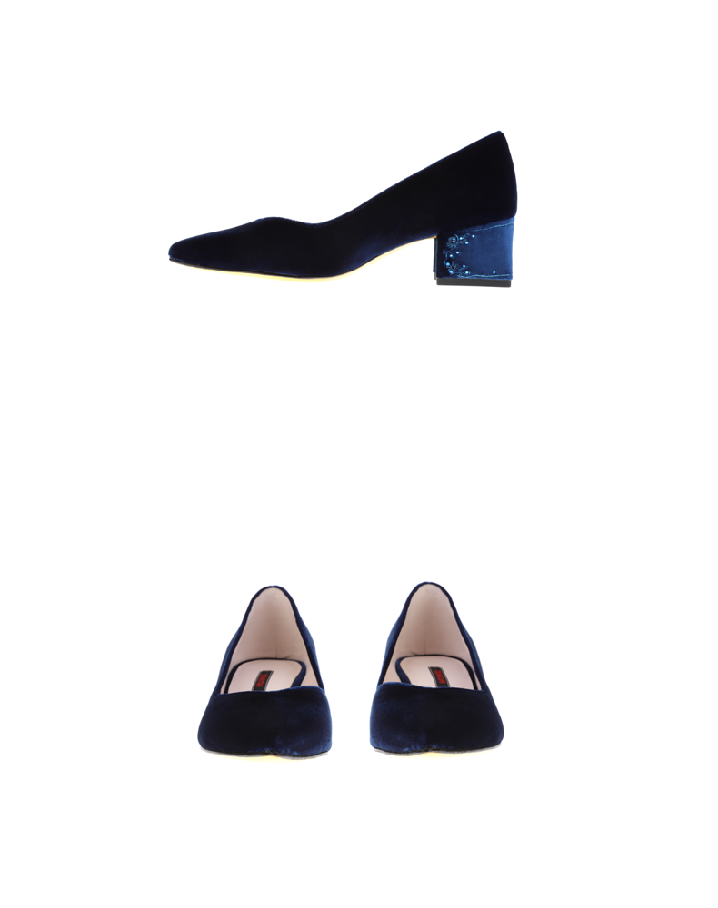 sheme景颇族原创设计奢侈品天鹅绒尖头中跟刺绣女鞋优雅可定制