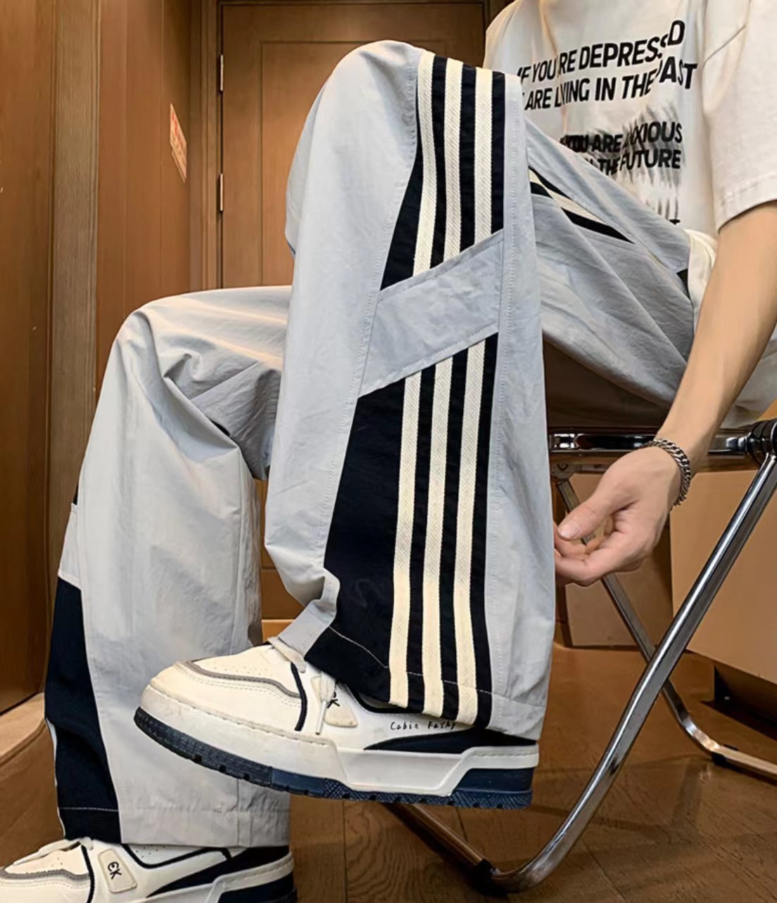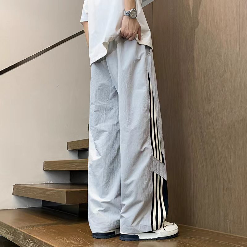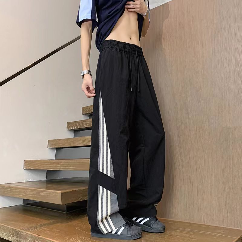 三条杠直筒运动卫裤休闲裤美式街头宽松休闲长裤,男女同款。裤脚抽绳设计可调节大!裤型两侧jing典三条杠运动条纹拼接设计,个性十足,让人看一眼就想要入手的神裤。抽绳腰围设计,中性百搭版型,上身效果非常有型,男生女生都可以穿,也可搭配情侣。