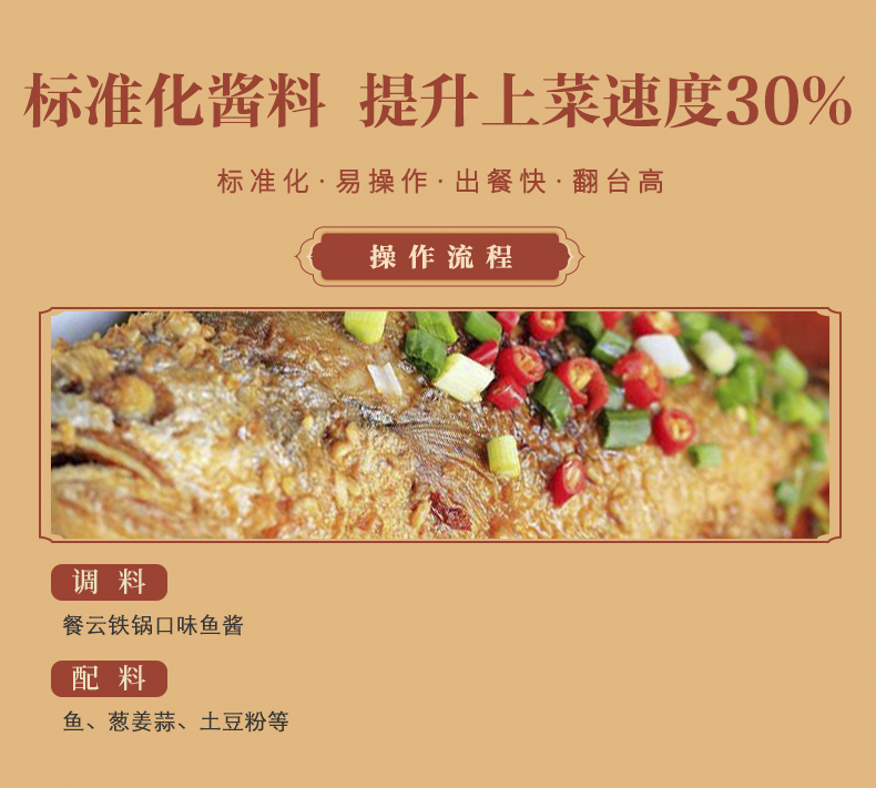 餐云标准化酱料为餐饮节约厨房人工成本30%,无厨师经验从业者通过标准化流程亦可操作,30名国内中餐大厨专家365天持续研发创新!
