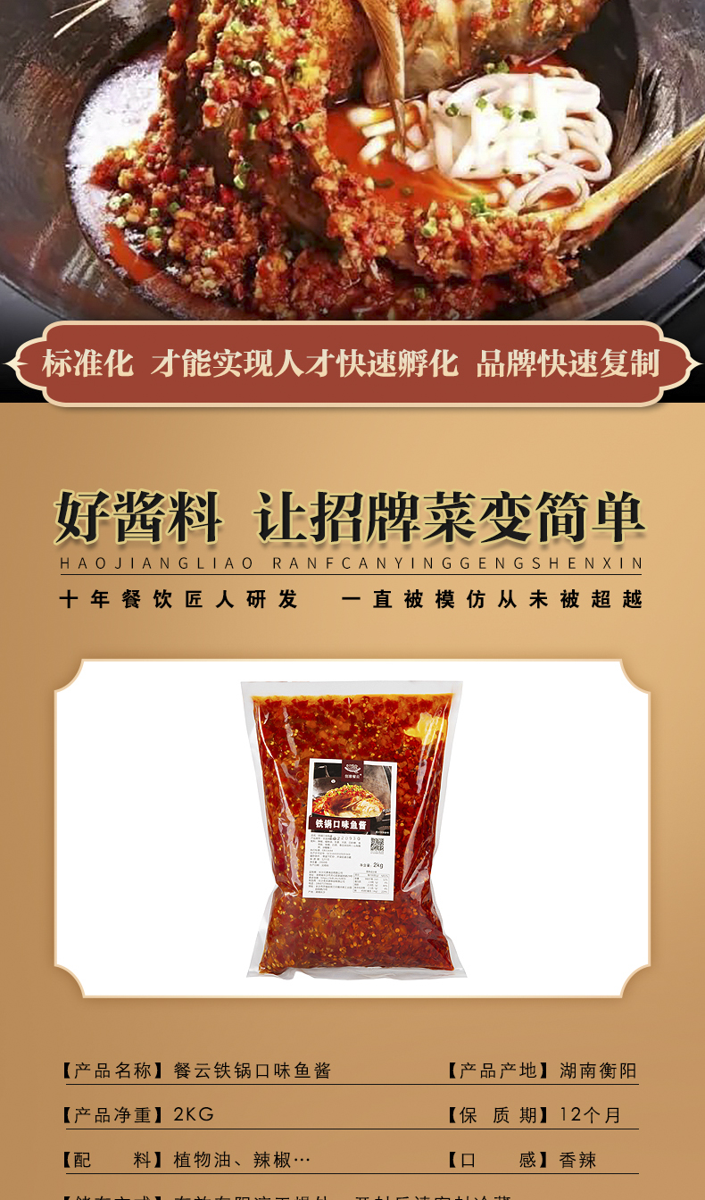 湖湘鱼文化一种新的诠释,鱼肉嫩滑,配合馋嘴鱼酱的坛香微辣,让顾客味觉充分饱和,回味无穷。创意餐云致力让中餐好的产品通过酱材实现味道、流程标准化,使人工成本大大降低。