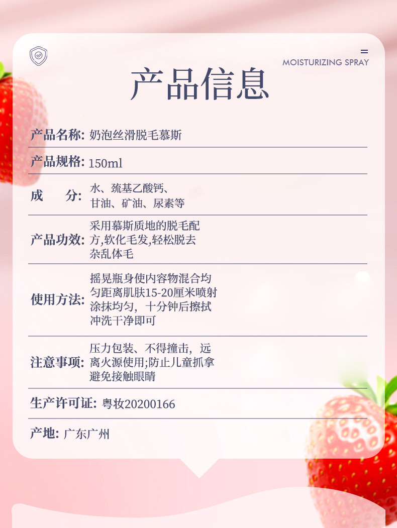 【专研脱毛❗️奶泡丝滑脱毛慕斯】一喷一擦,无痛速脱毛不留渣,蓬蓬云感绵密泡泡喷雾手臂腋下腿部温和脱毛膏男女通用