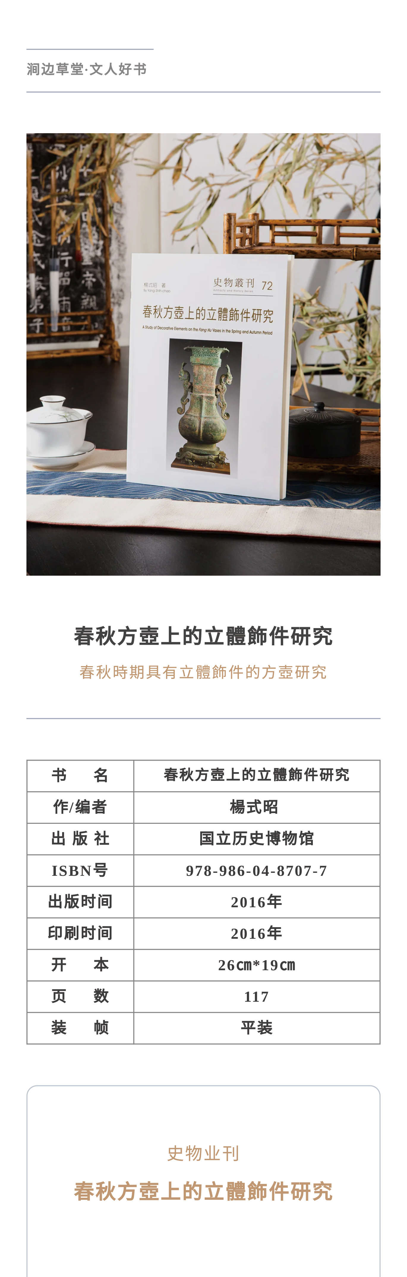 【绝版好书】《春秋方壶上的立体饰件研究》16开117页,2016年台历史博物馆出版