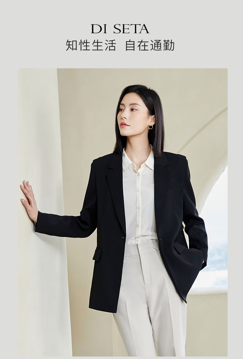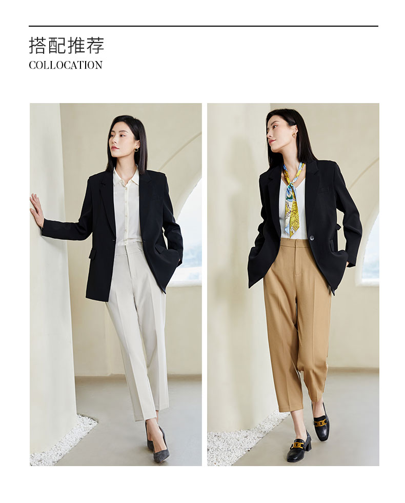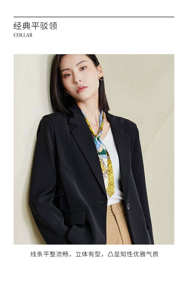 玳莎垫肩西装女2023春季新款分割设计可调节腰带宽松翻领外套 DA37303