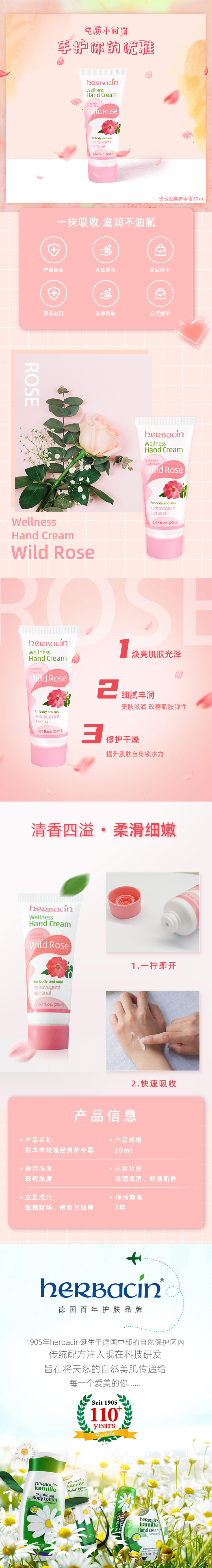德国小甘菊Herbacin贺本清玫瑰护手霜20ml秋冬滋润
