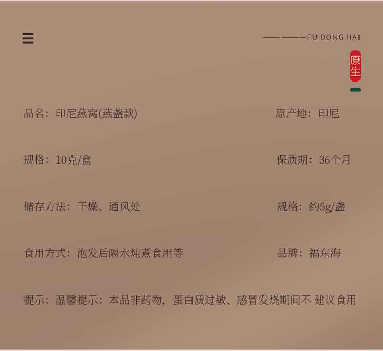 福东海 燕窝燕盏25克 10克