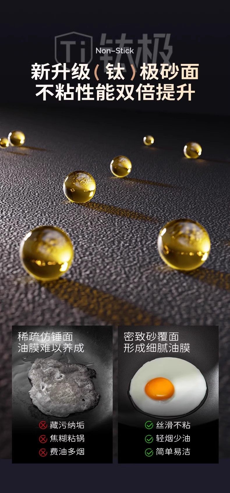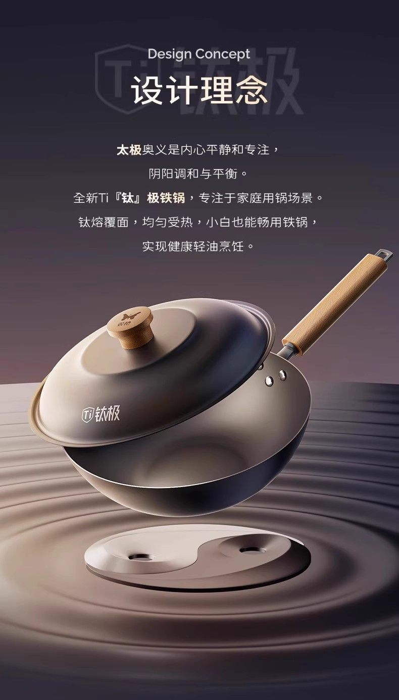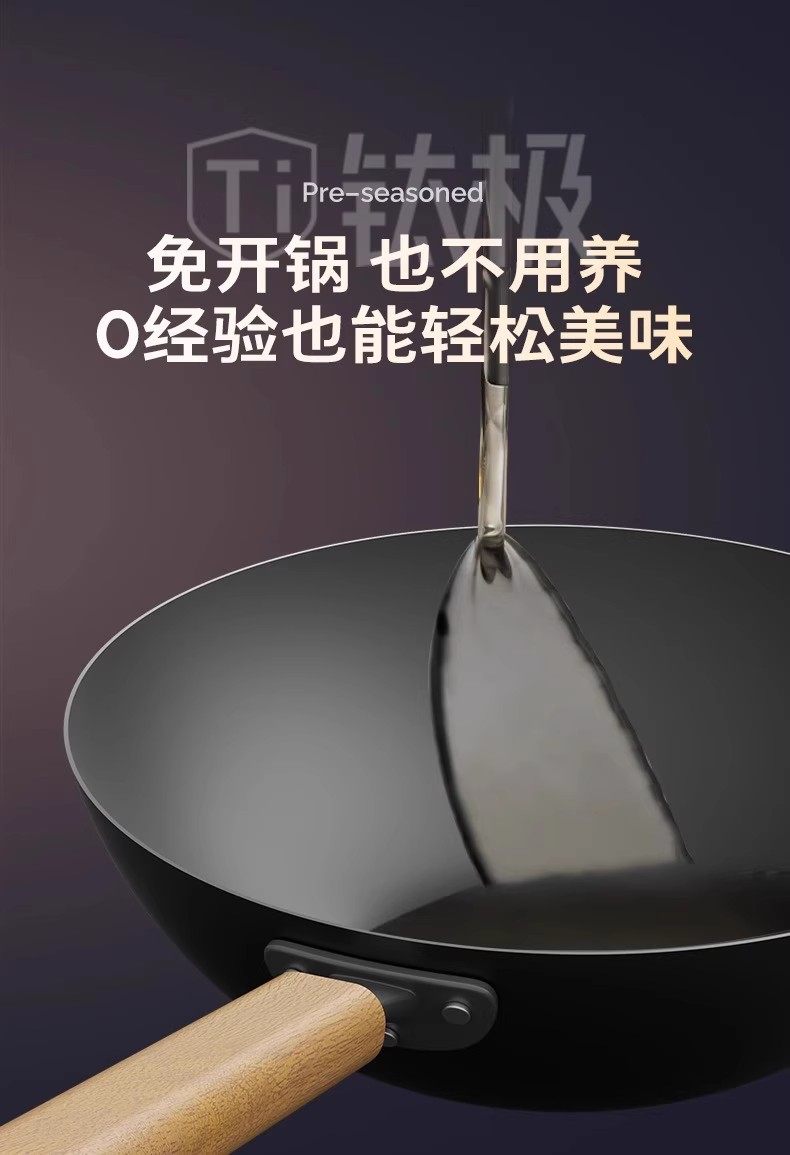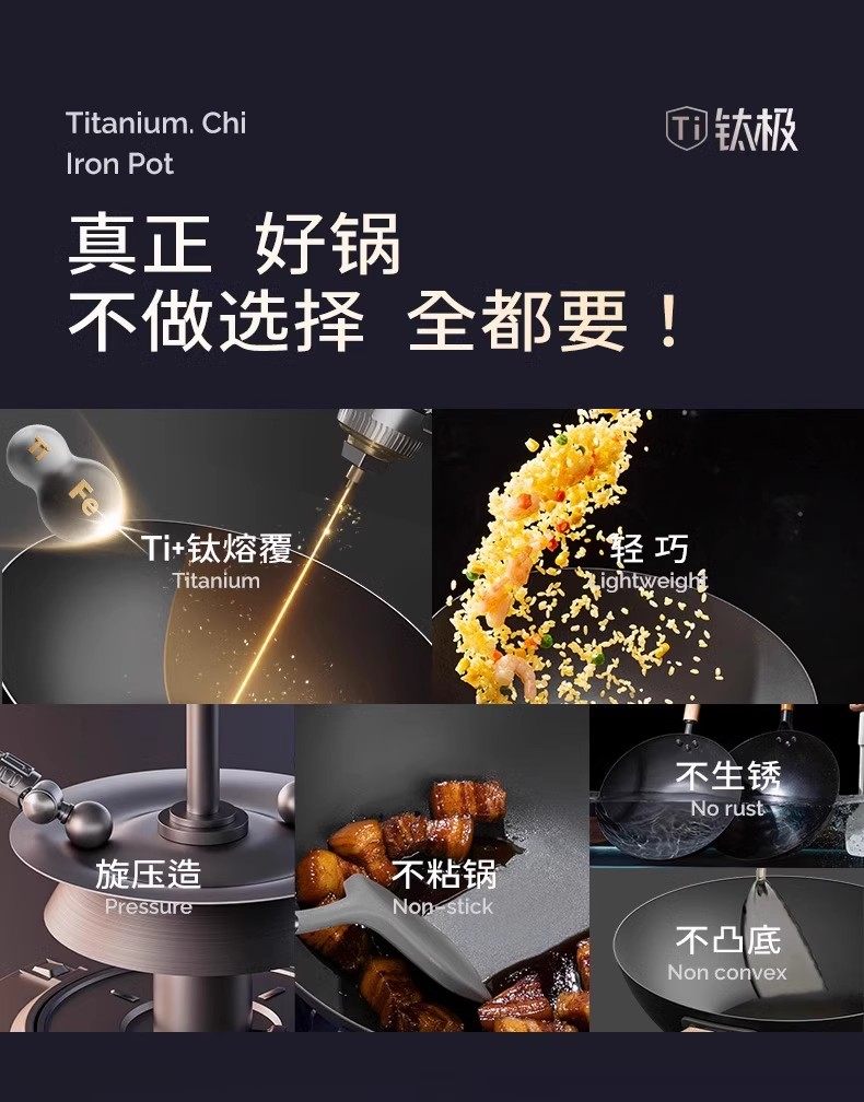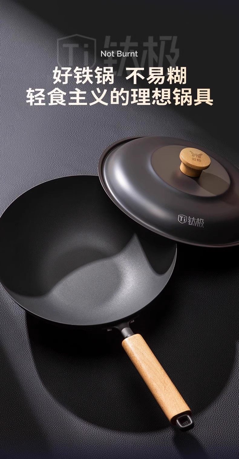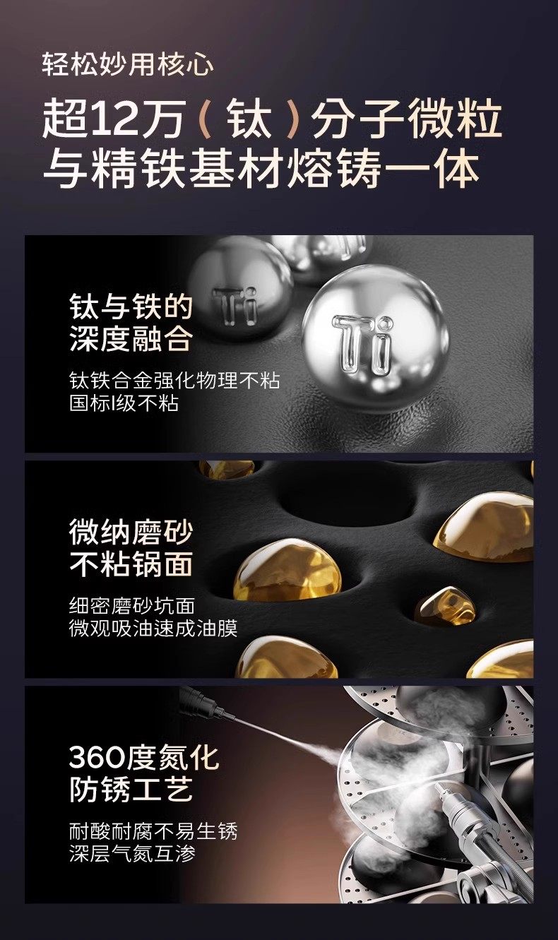 【钛熔覆面 均匀受热】双枪钛极不粘炒锅 微纳磨砂 不粘锅面