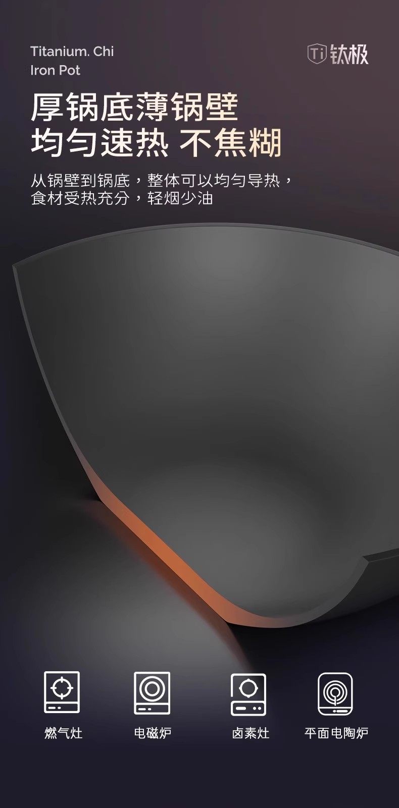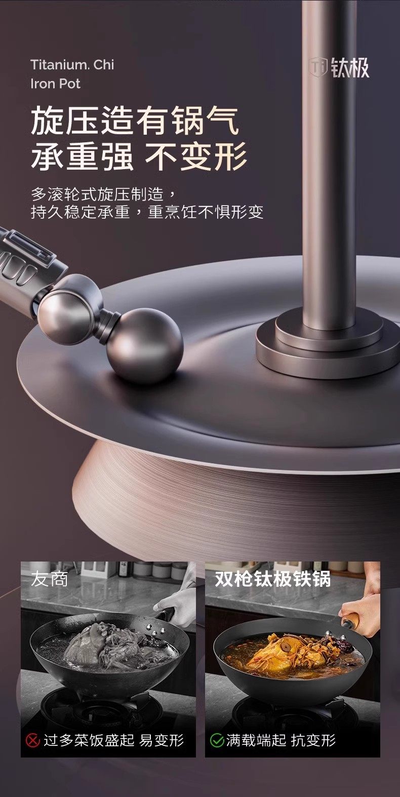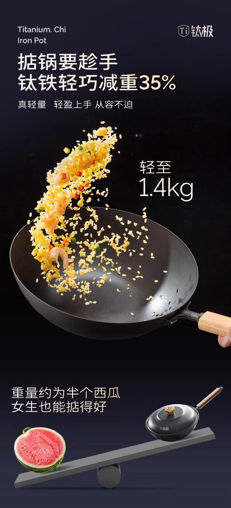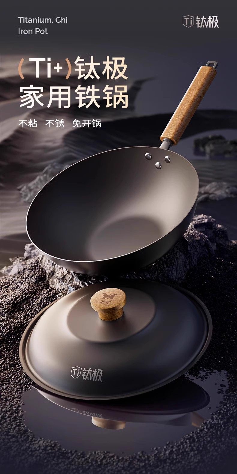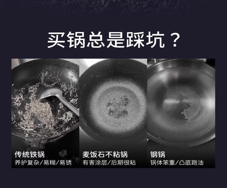【钛熔覆面 均匀受热】双枪钛极不粘炒锅 微纳磨砂 不粘锅面