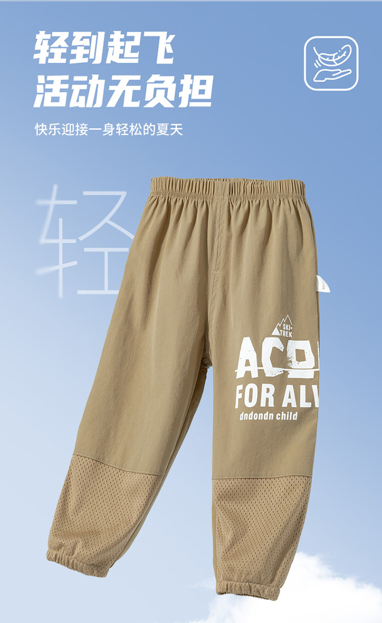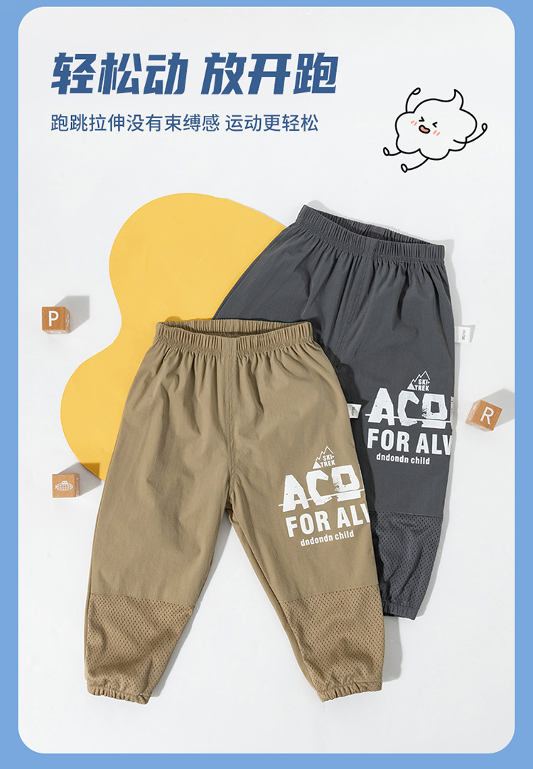 ZB2EK010贝贝怡儿童防蚊裤速干裤夏装2025新款男童薄款休闲裤轻薄运动长裤
