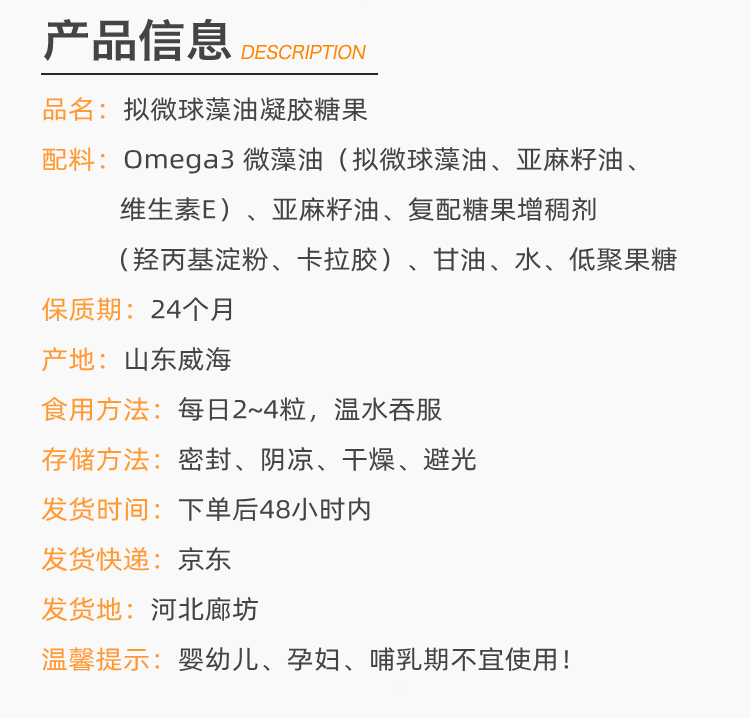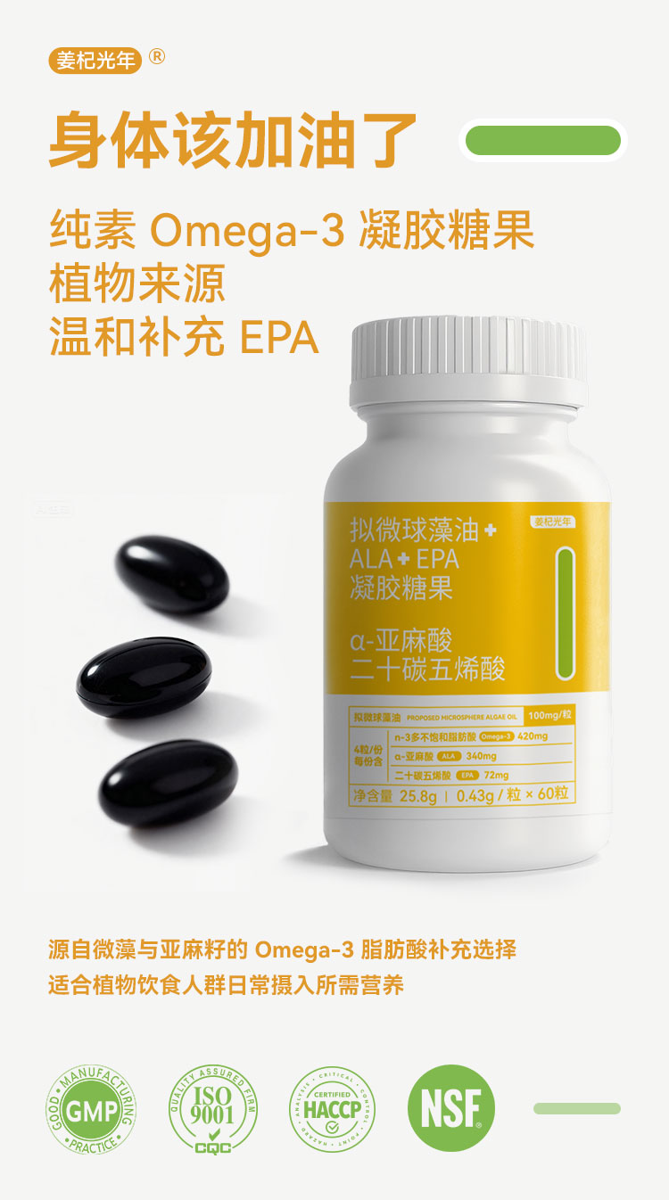 拟微球藻油+ALA+EPA 凝胶糖果 60粒/瓶