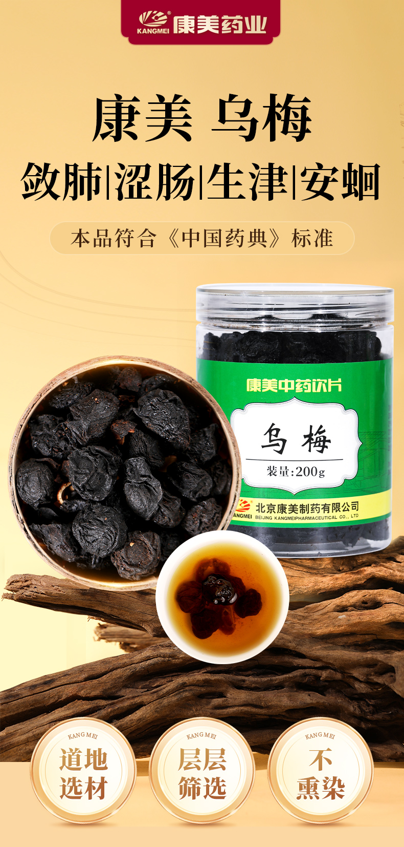 康美药业乌梅200g/瓶 康美罐装中药饮片