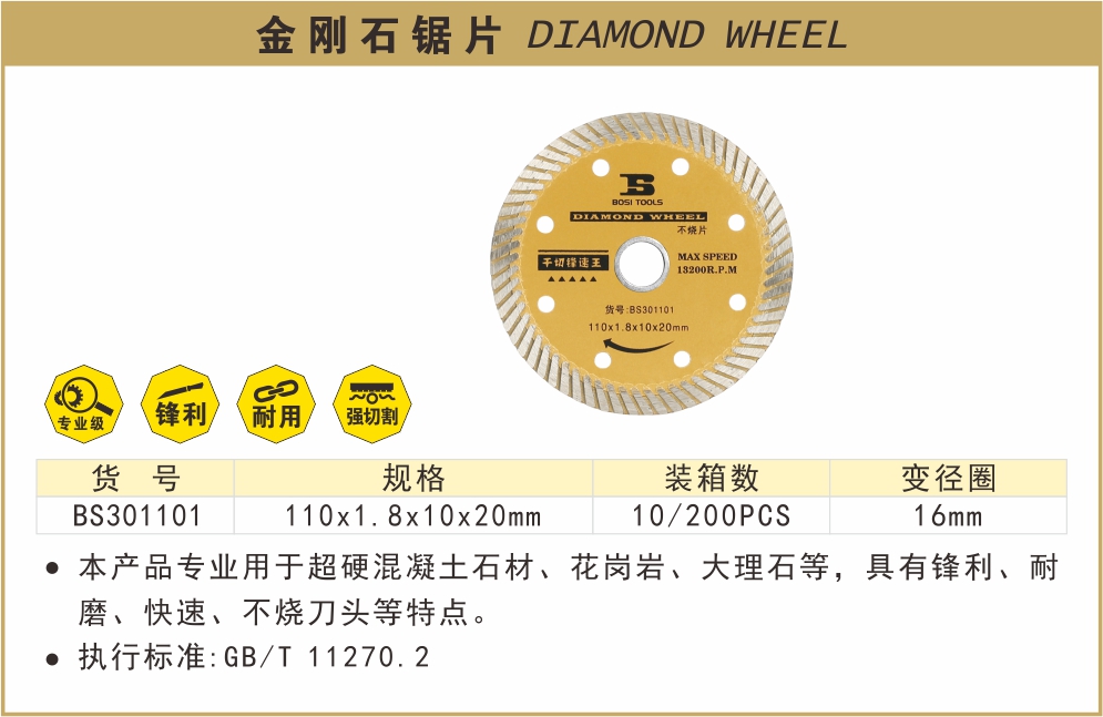 波斯 金刚石锯片 110*1.8*10*20mm BS301101
