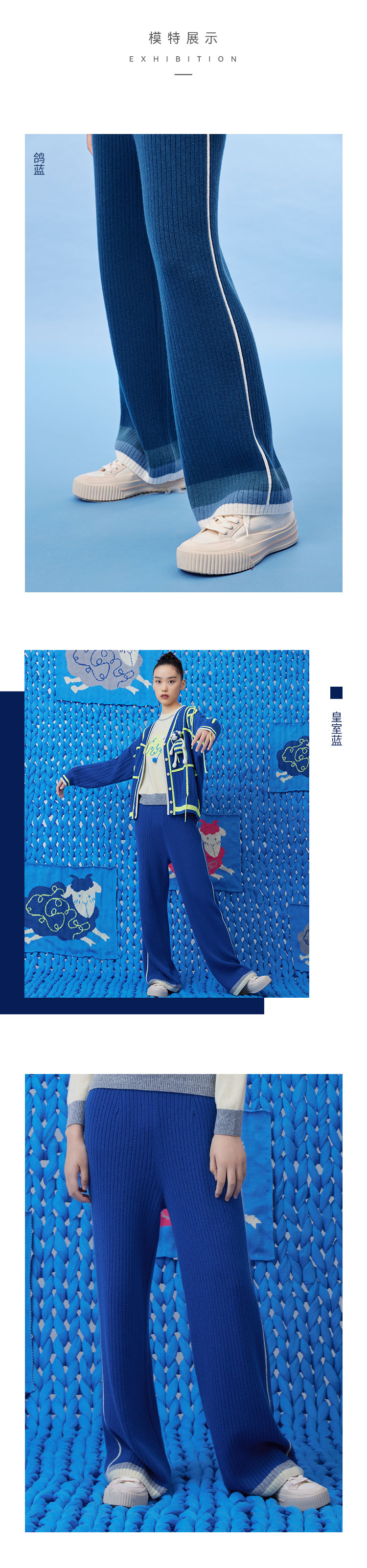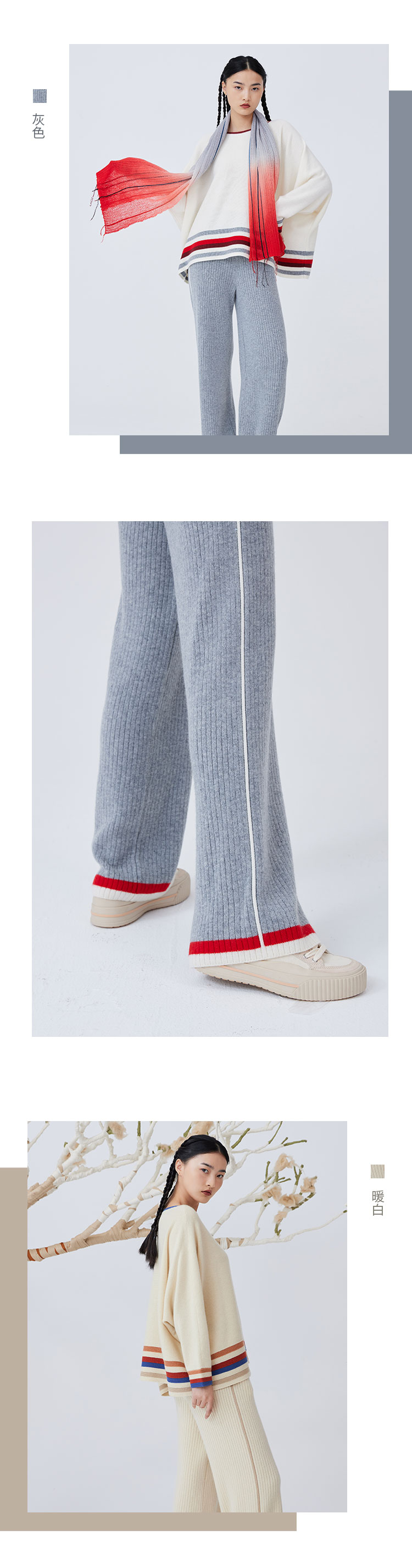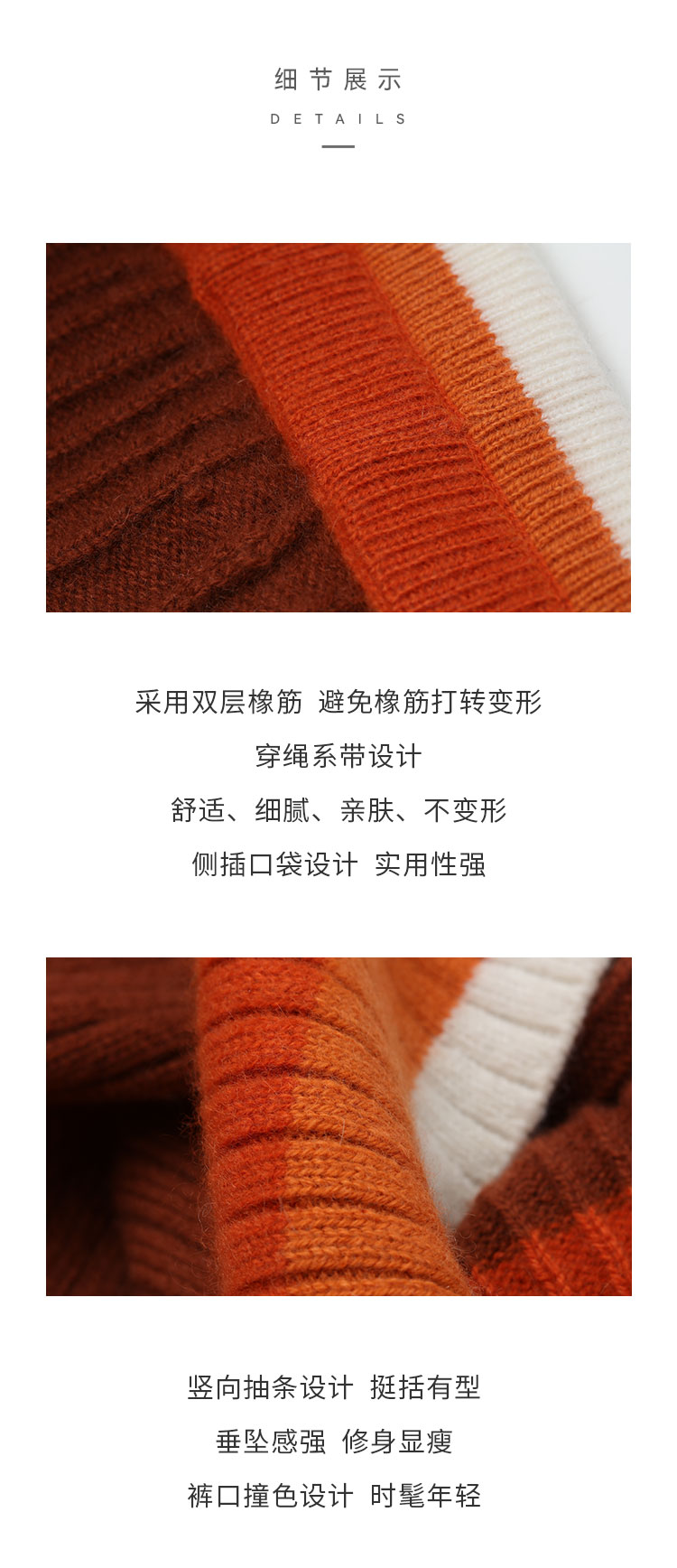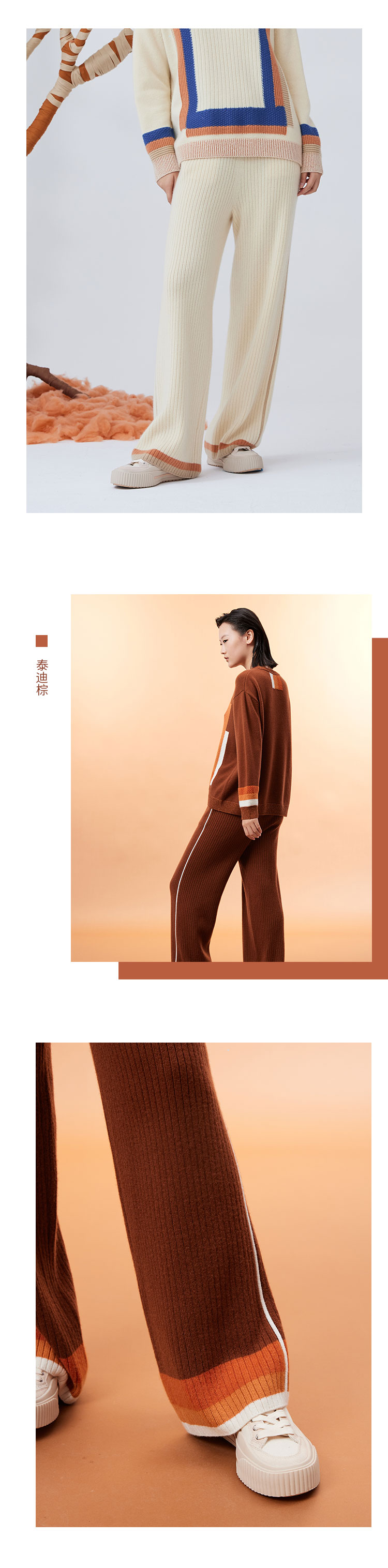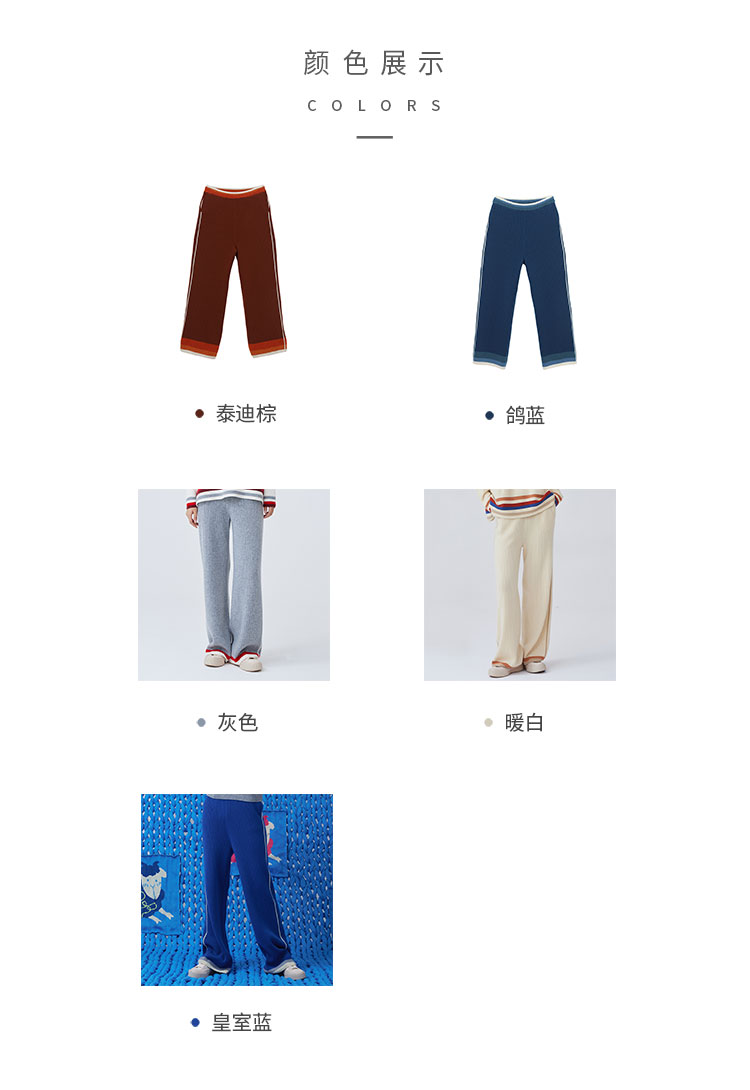 羊绒撞色针织直筒女裤 SJF93K135N