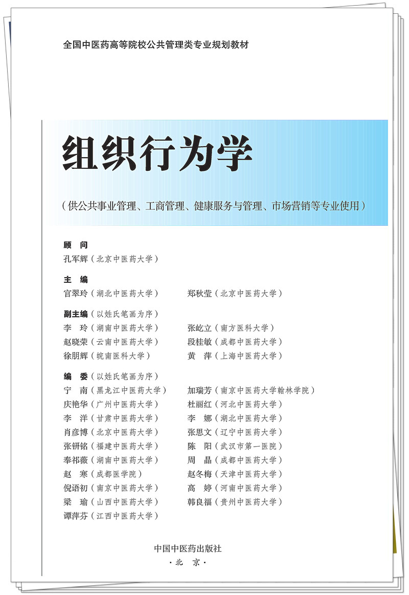 组织行为学 官翠玲 郑秋莹 主编 全国中医药高等院校公共管理类专业规划教材 中国中医药出版社