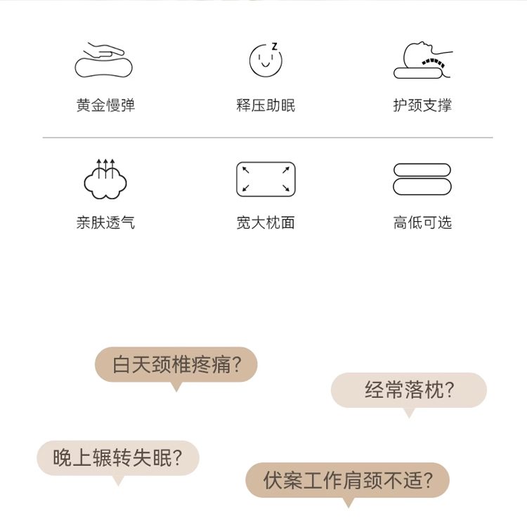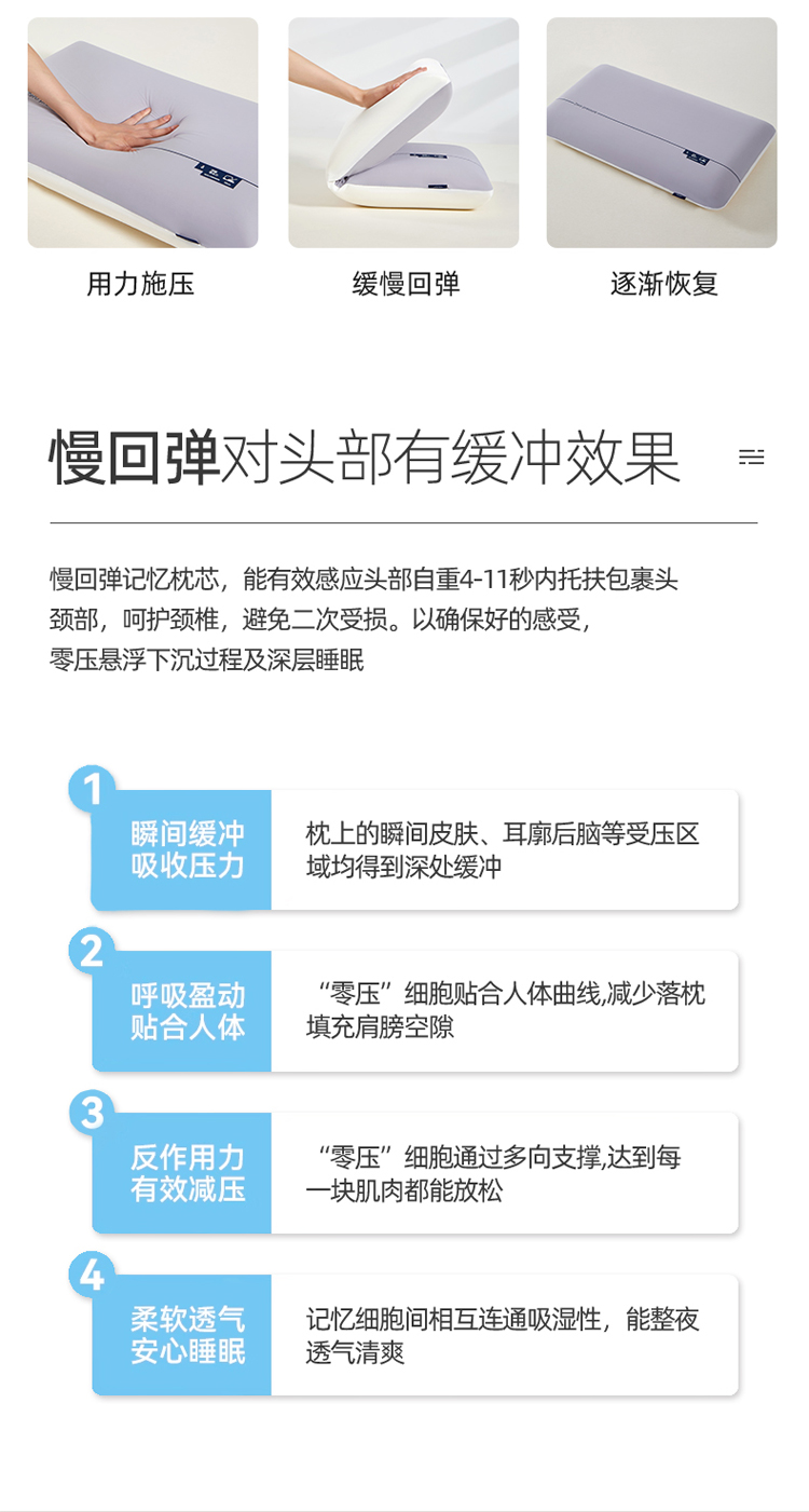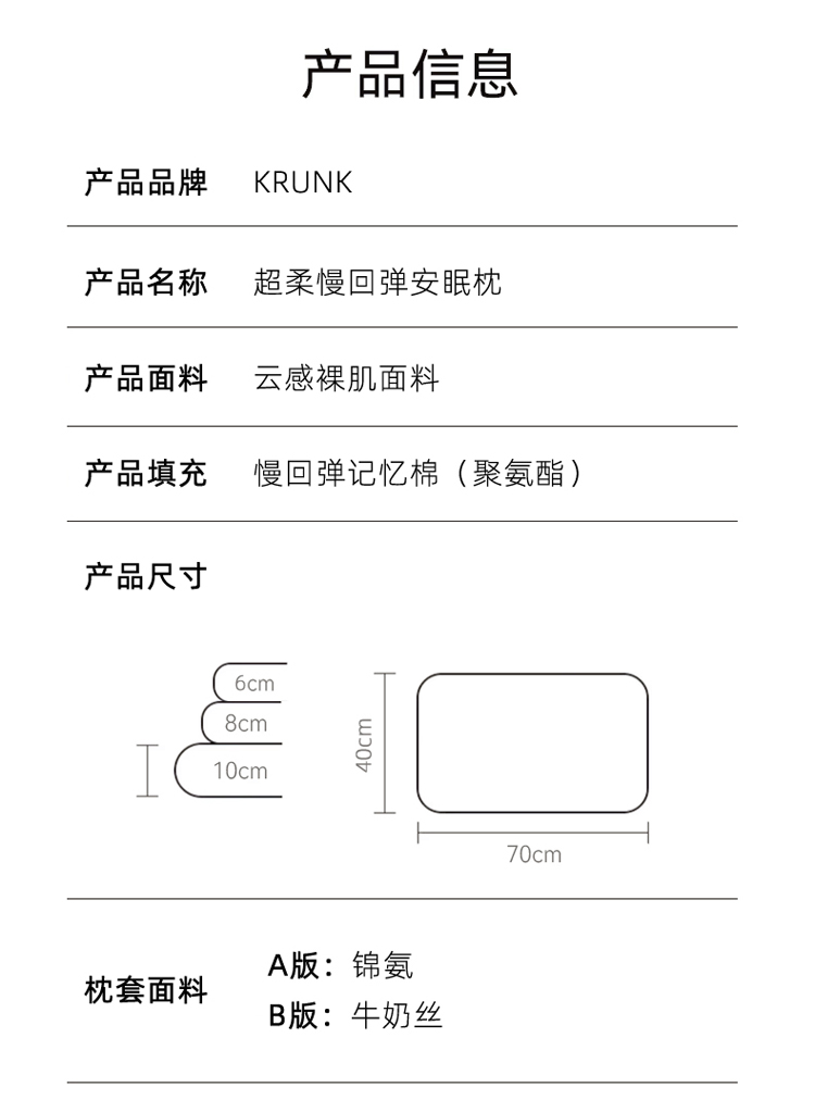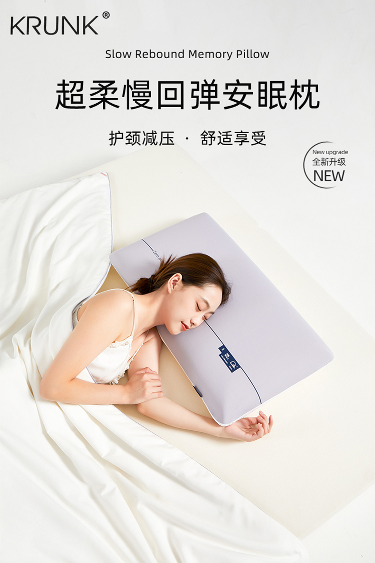 【亚朵酒店同款 护颈安眠枕】KRUNK超柔慢回弹安眠枕| 5秒慢回弹分散压力柔软承托 云感裸肌记忆枕
