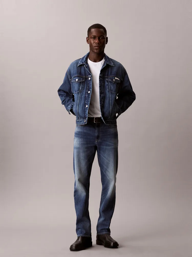 做旧水洗纹理自带岁月感,弹力丹宁面料软糯又挺括,后腰皮质标+金属细节低调显贵