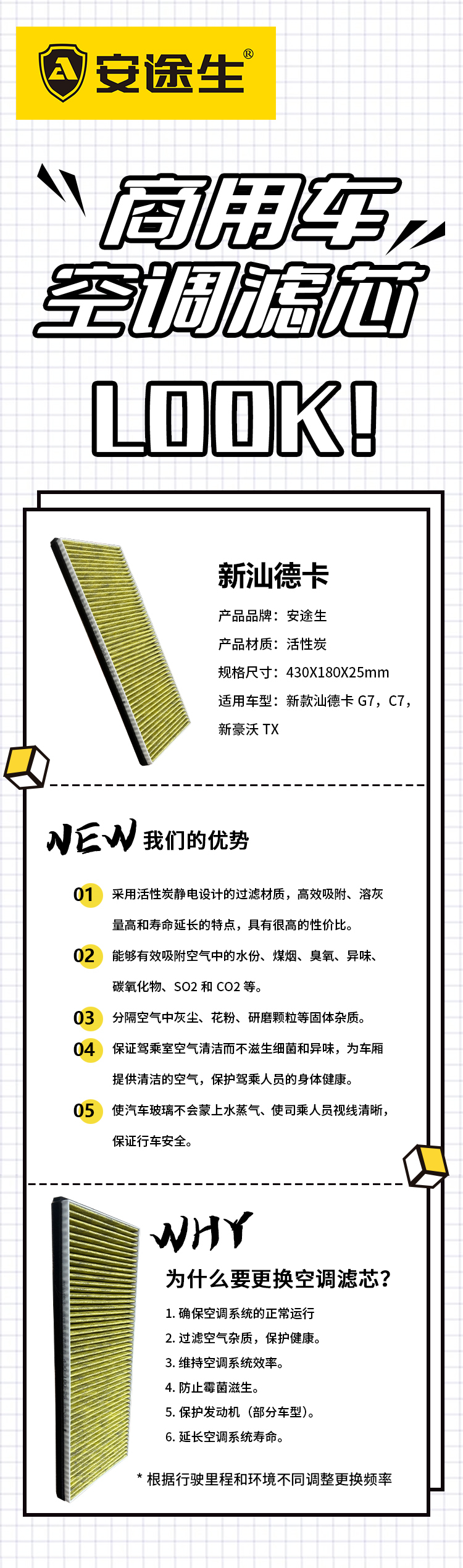 安途生重汽新汕德卡活性炭空调滤芯长里程除异味防止霉菌商用车
