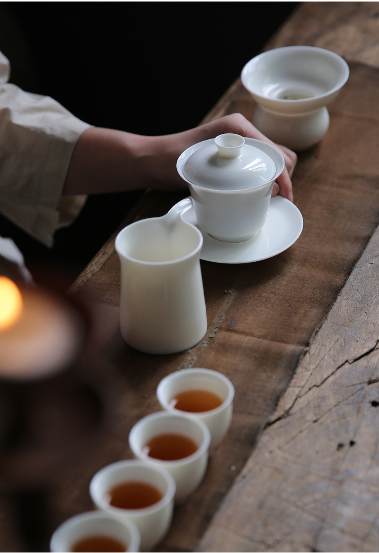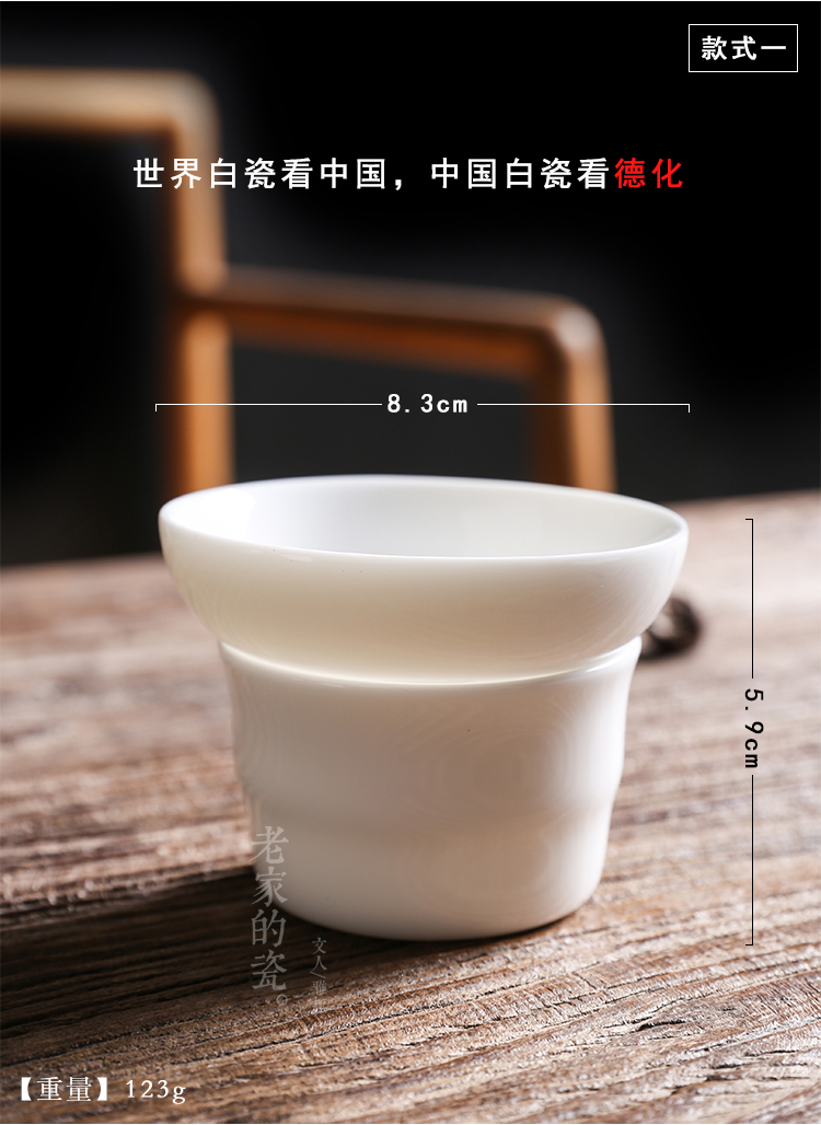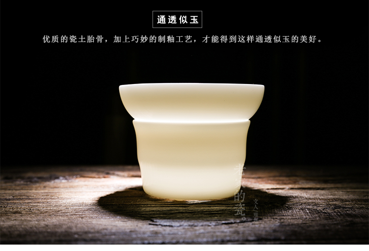 永利汇猪油白羊脂玉瓷品茗杯功夫茶杯陶瓷茶漏家用德化白瓷过滤网纯白