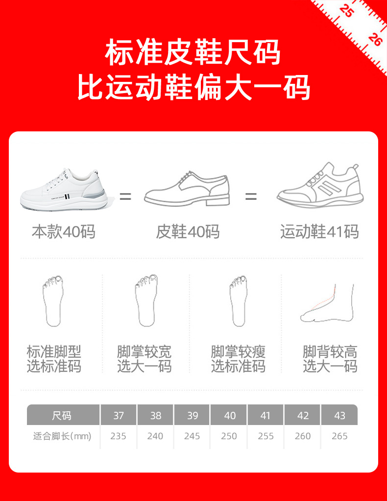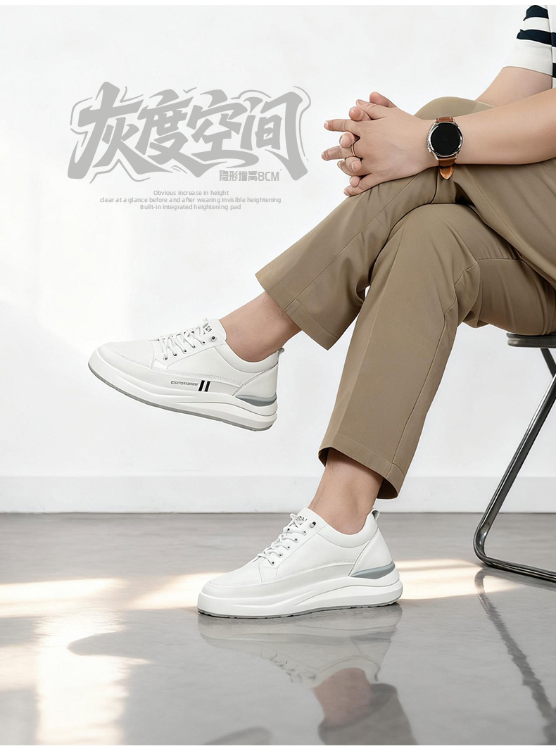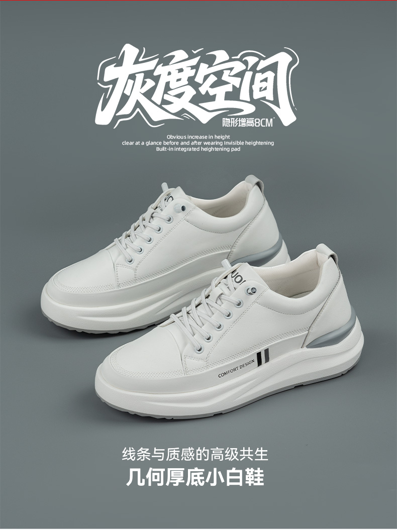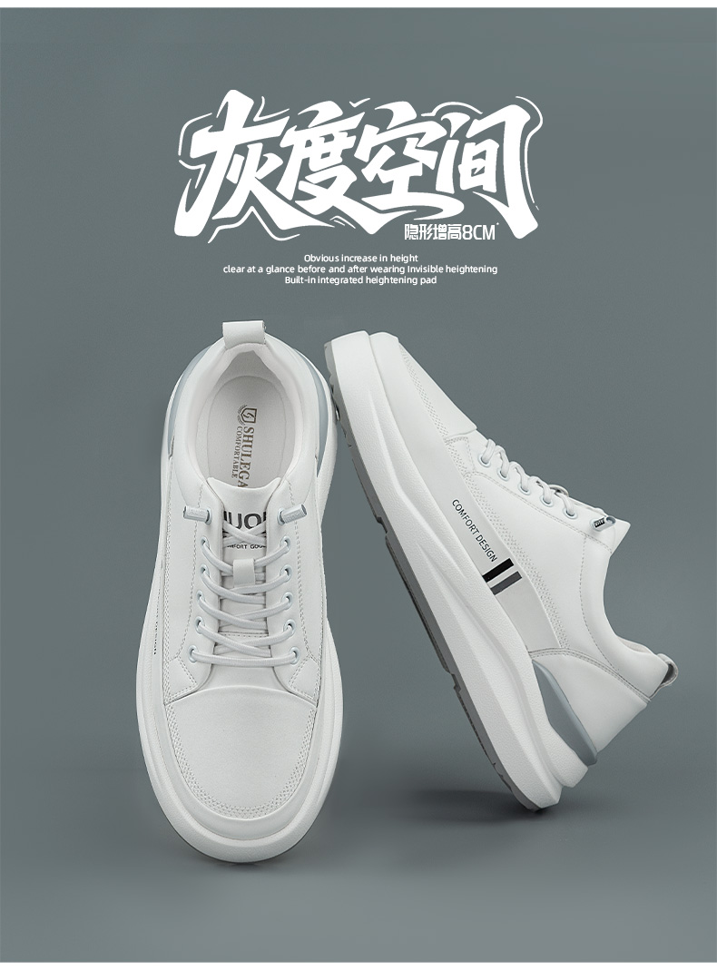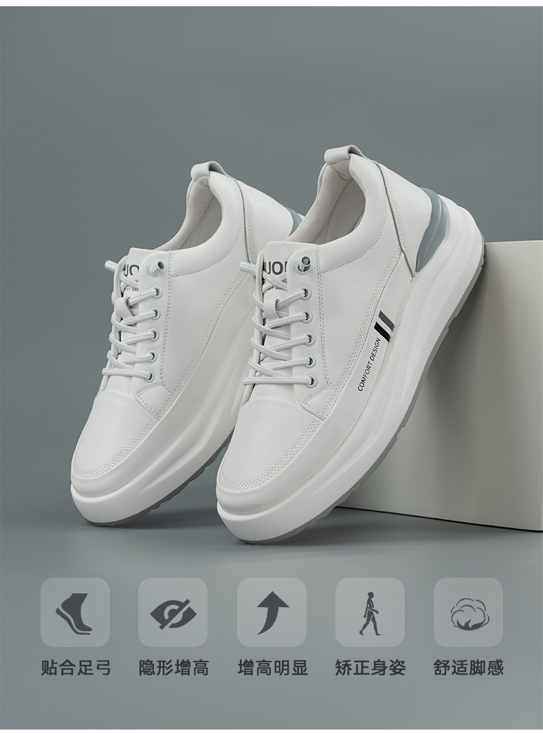 增高6厘米男士休闲鞋板鞋小白鞋内增高男鞋百搭透气皮面潮
