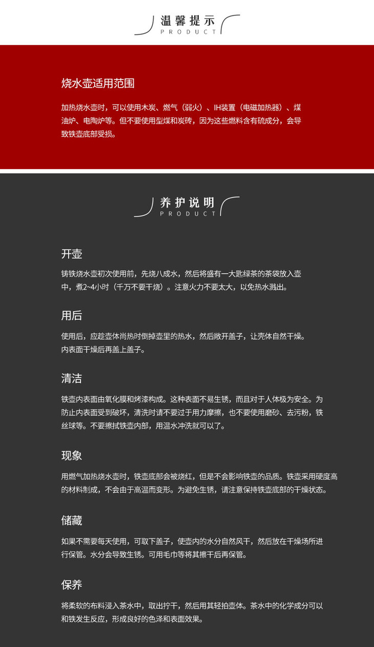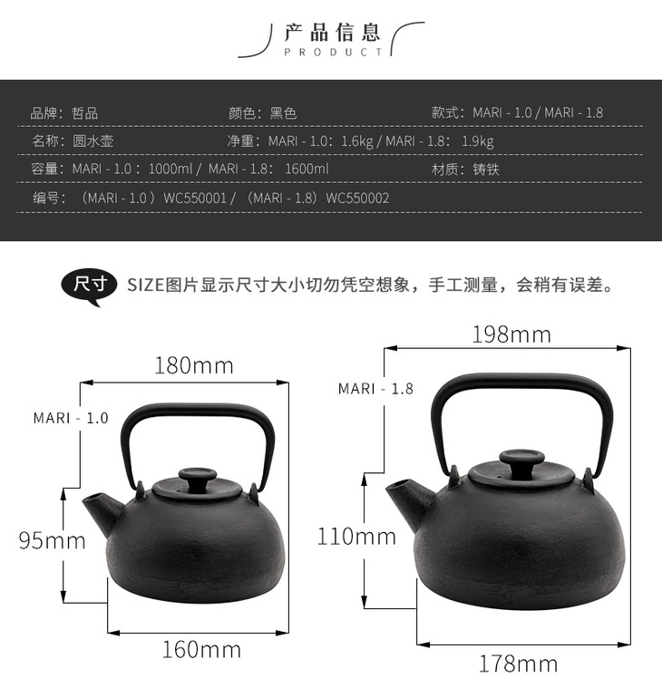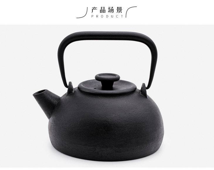 哲品 圆水壶系列铸铁加热水壶铁茶壶 铸铁壶可直接烧水家用