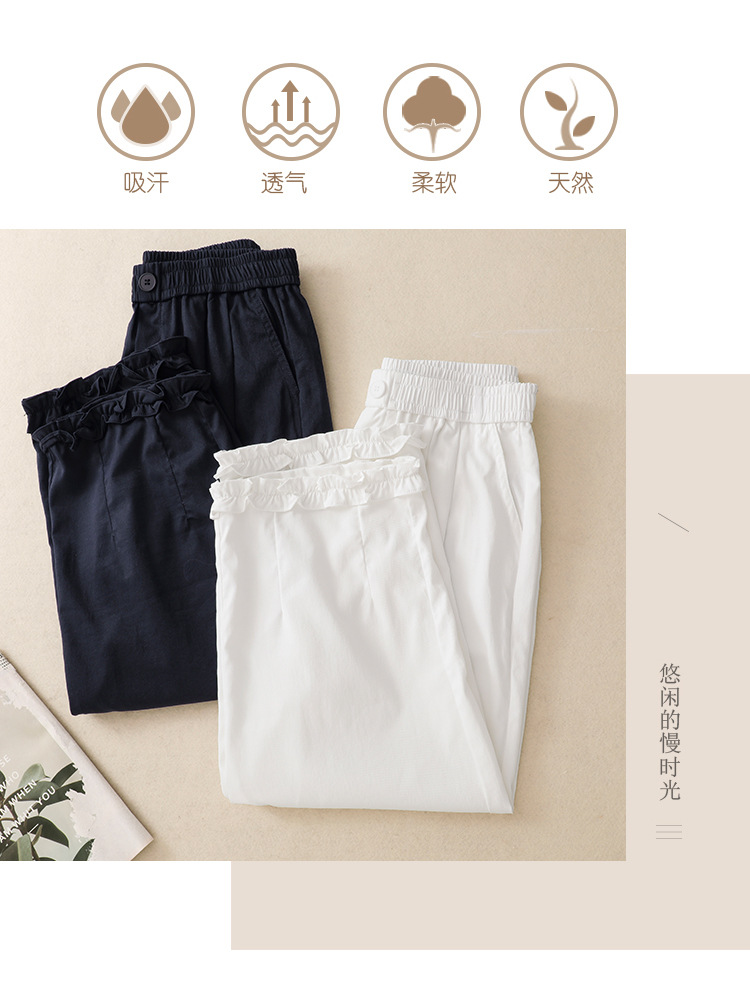 GYH 8310木耳边宽松直筒休闲裤薄款九分裤简约裤