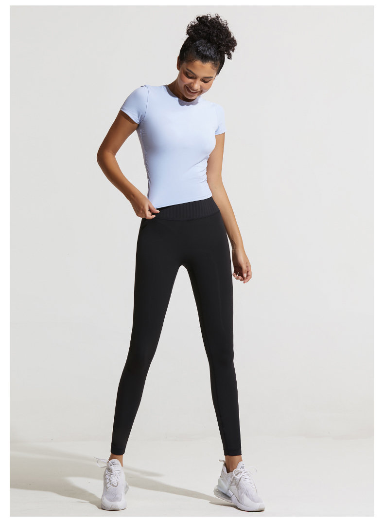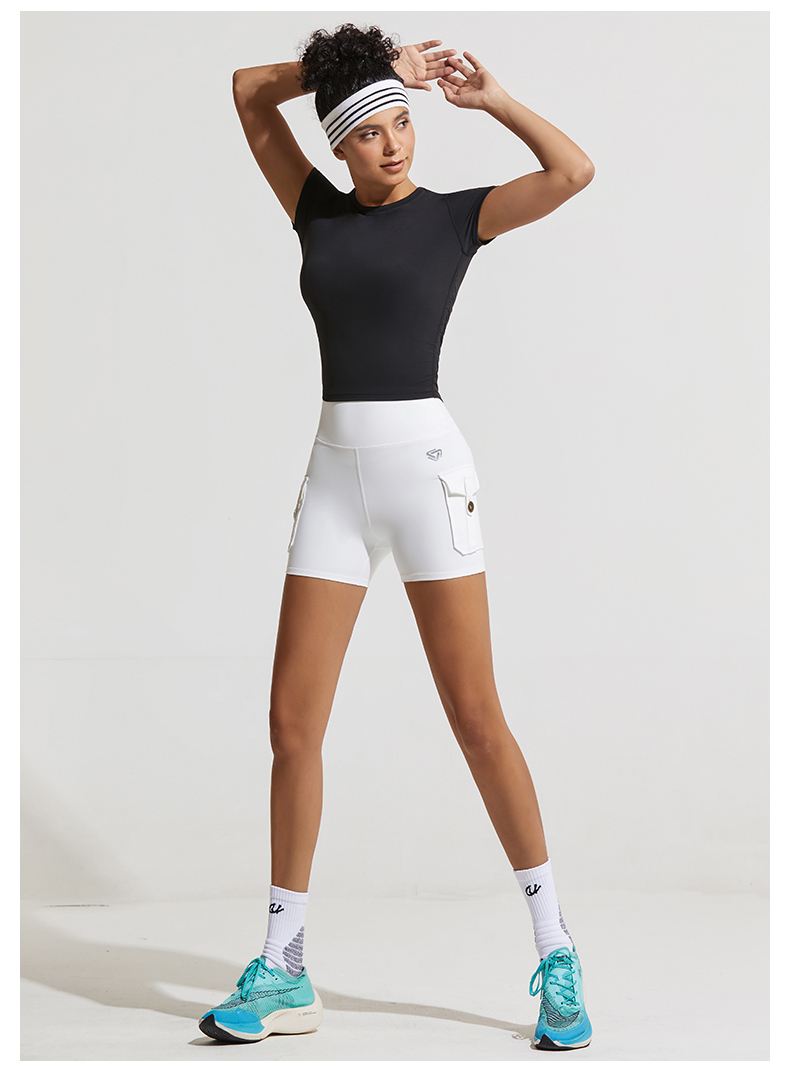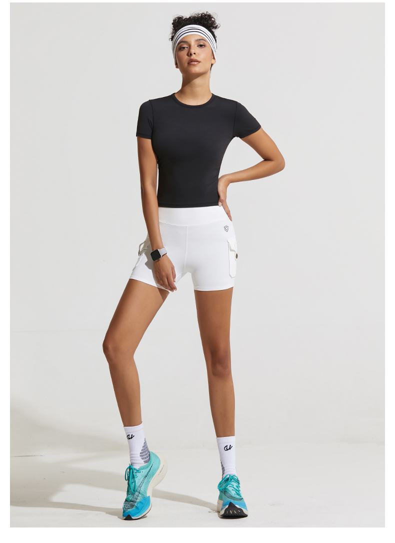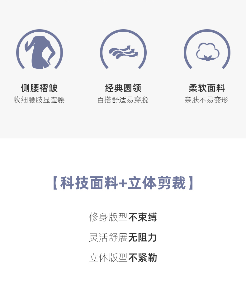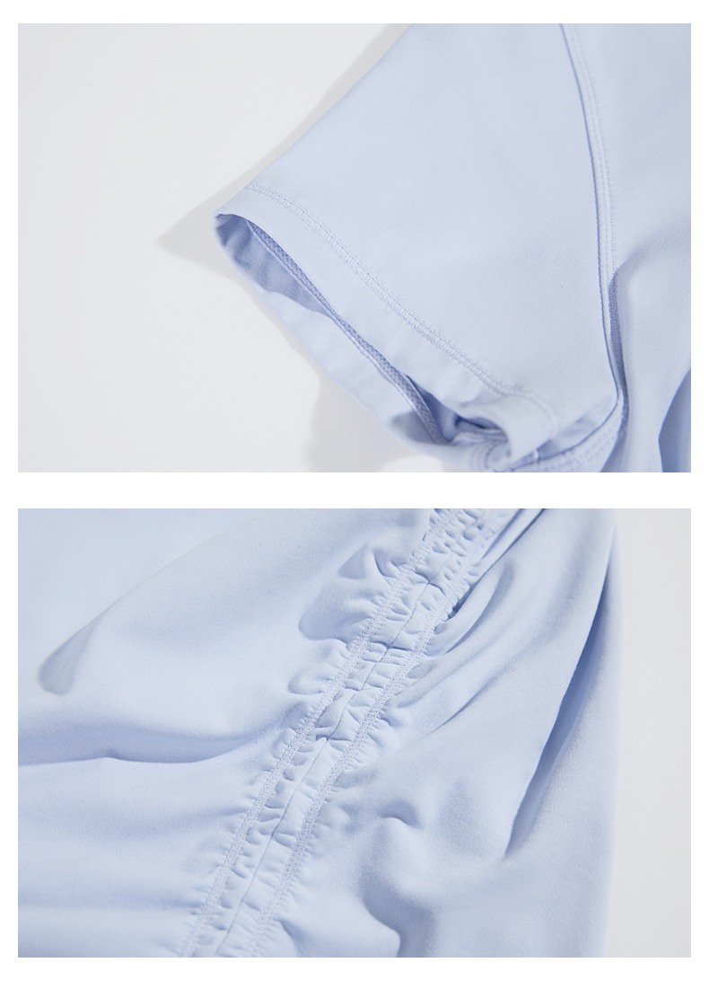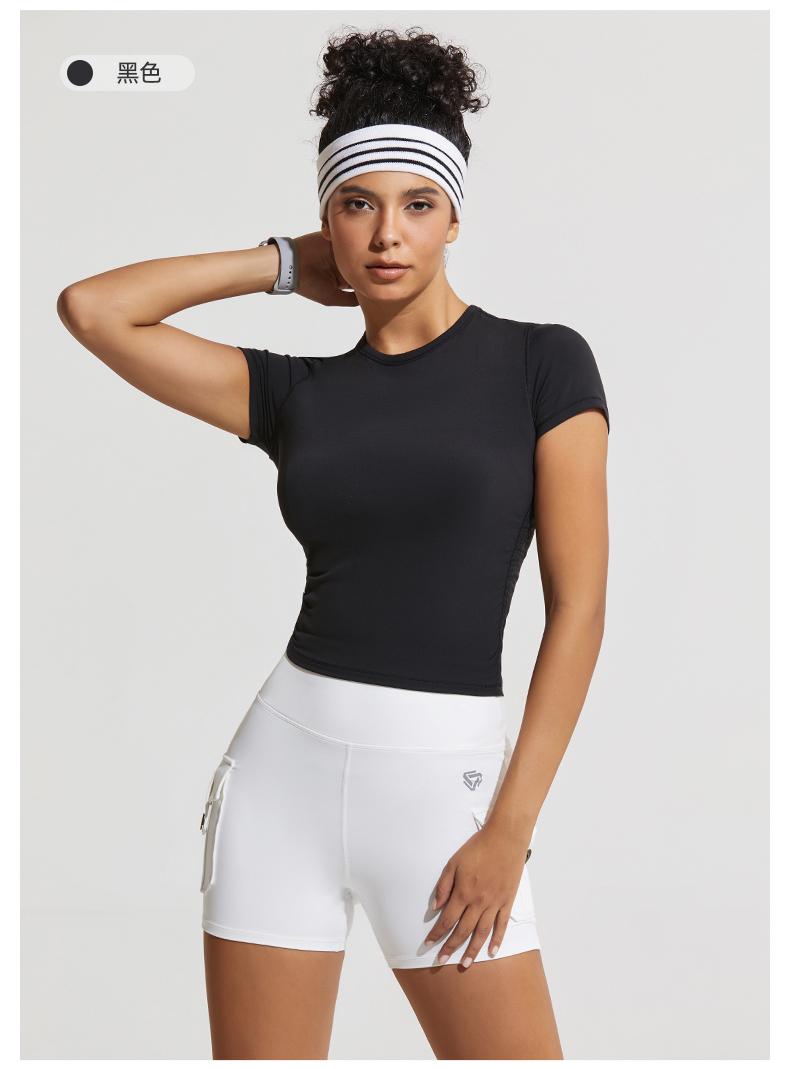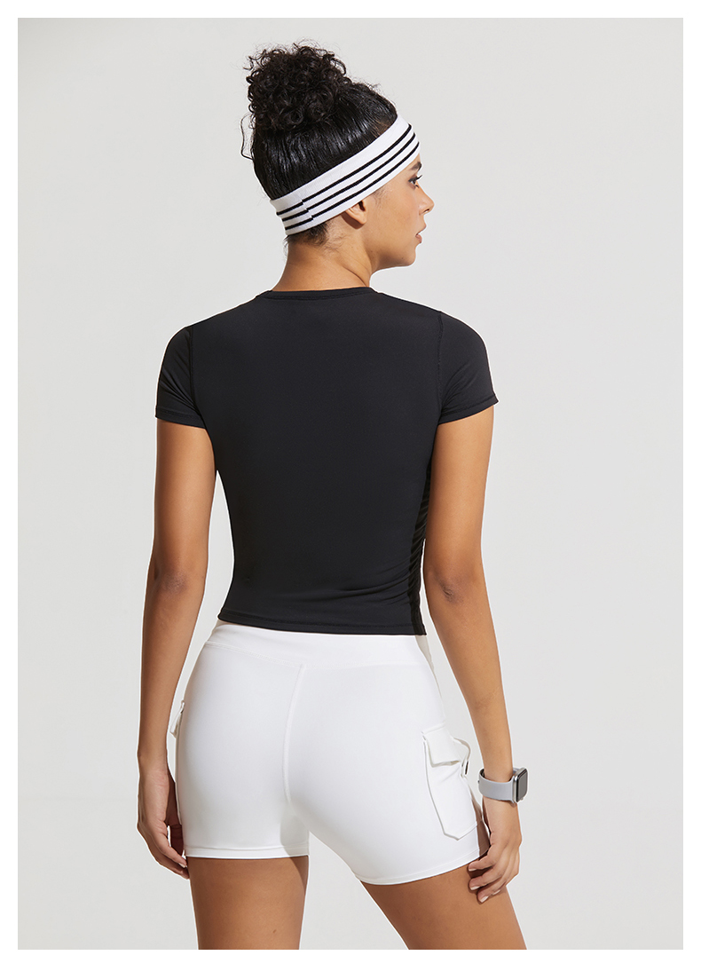【特卖】科里芙侧腰褶皱圆领运动短袖美式健身服运动修身春夏