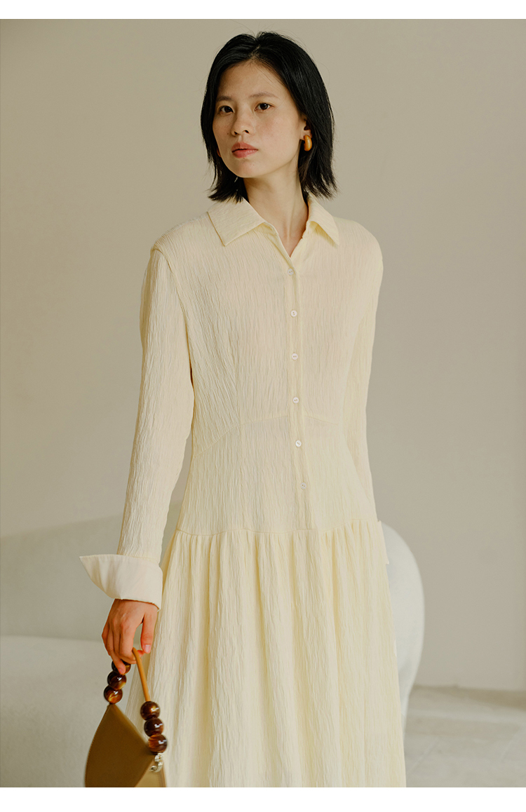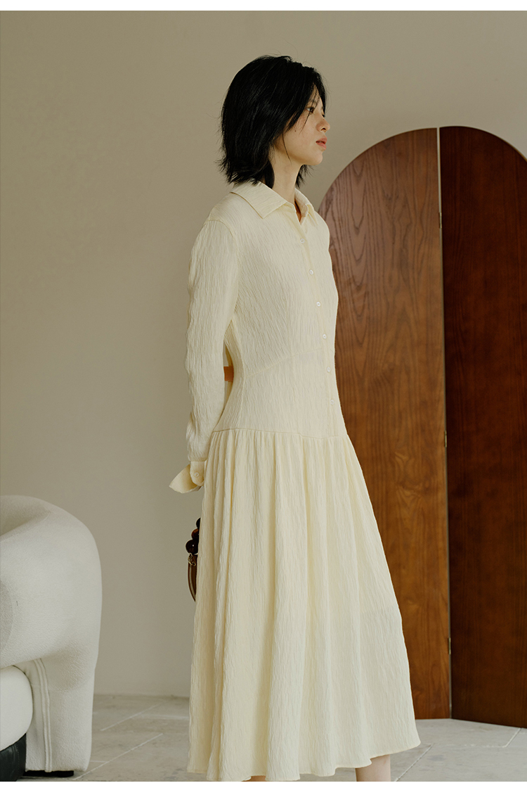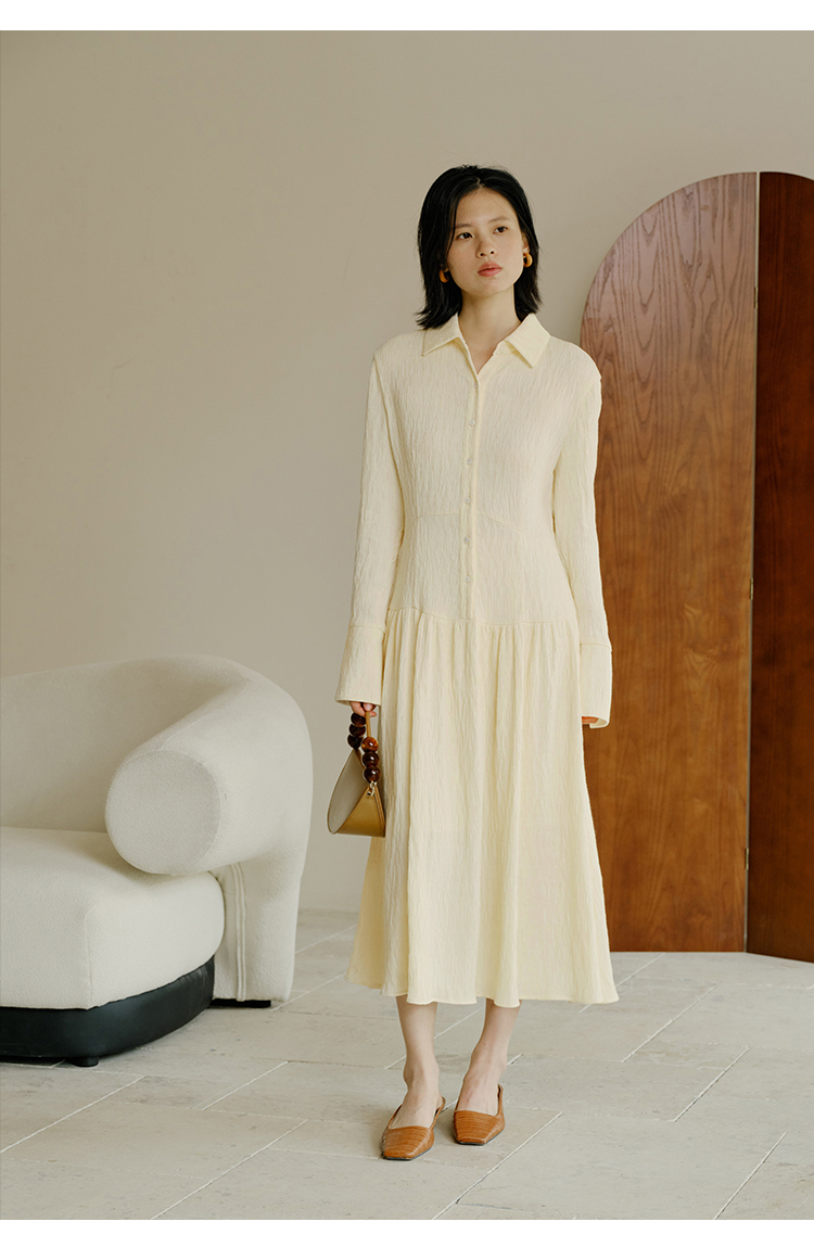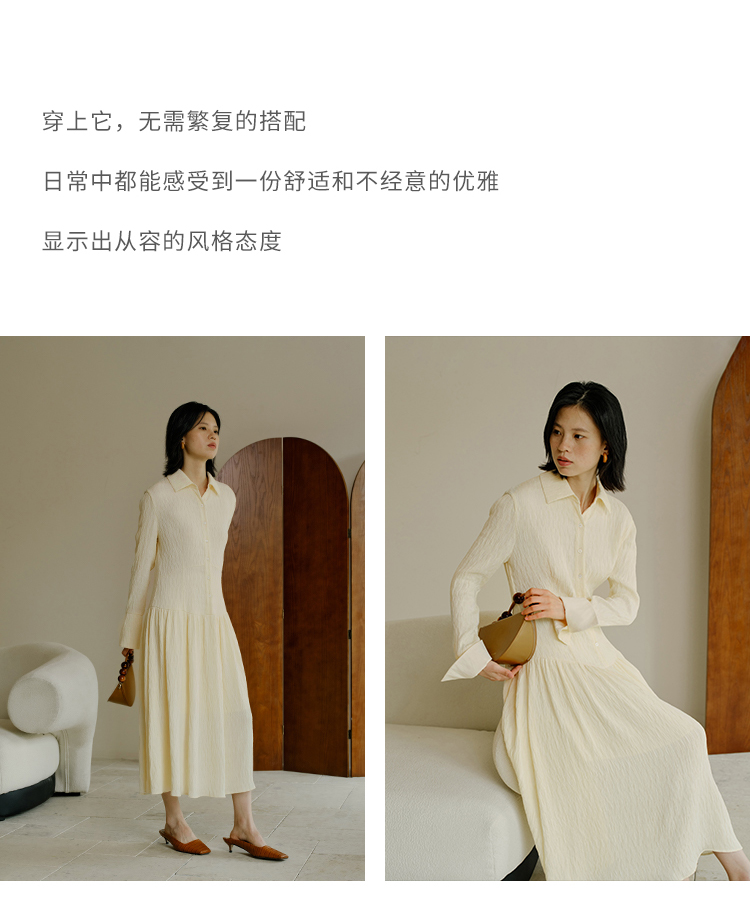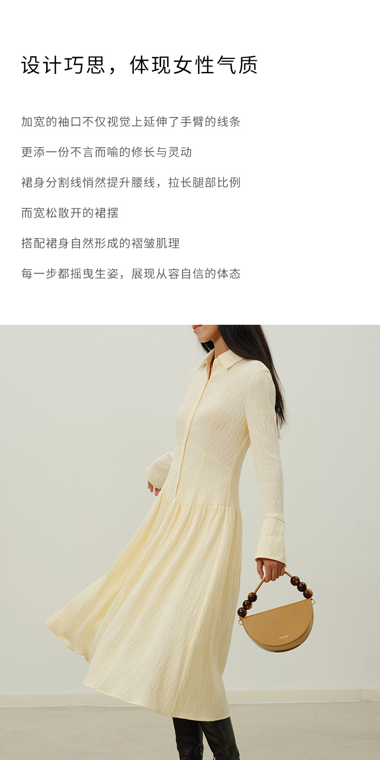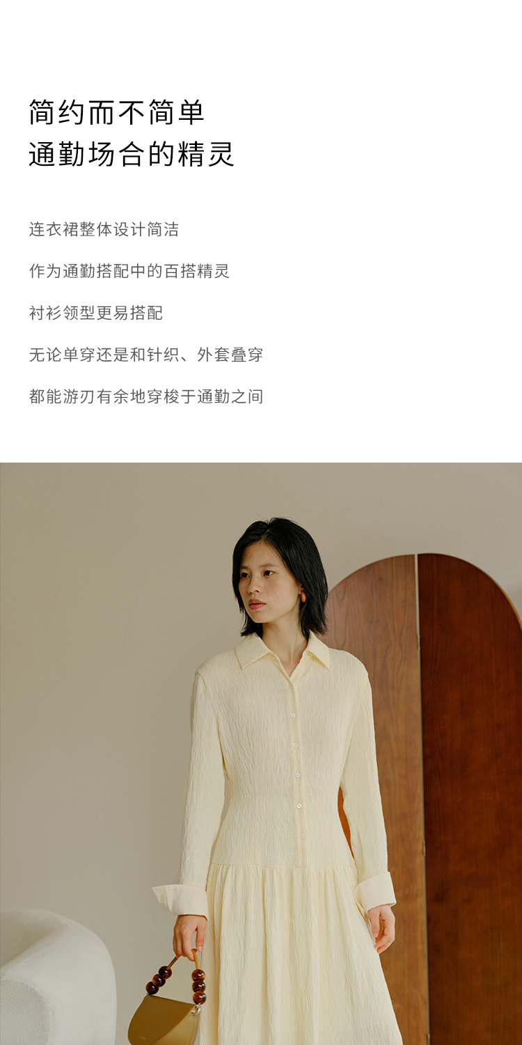 HeyDress法式衬衫连衣裙女秋季复古优雅气质肌理感修身长袖裙子