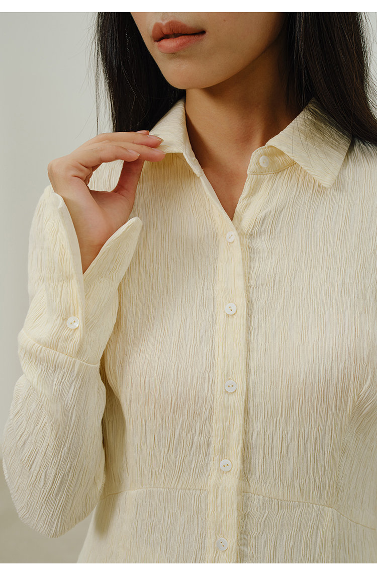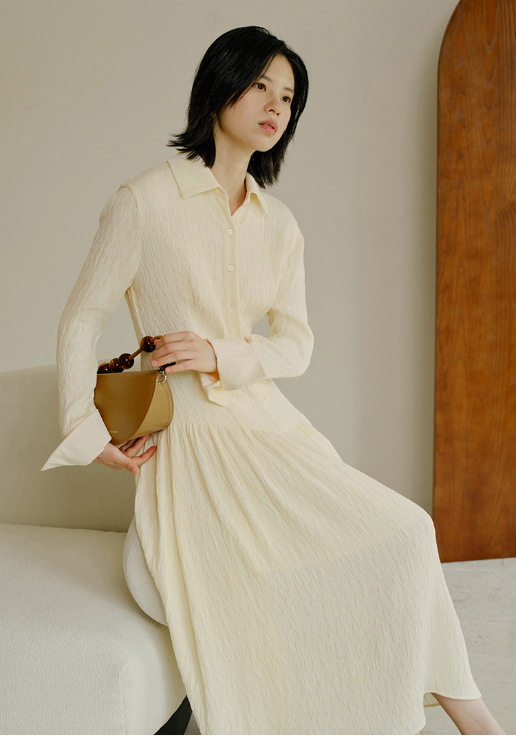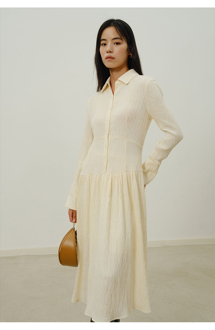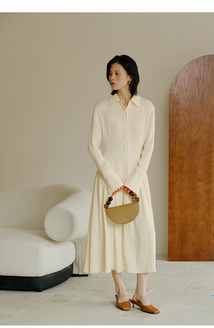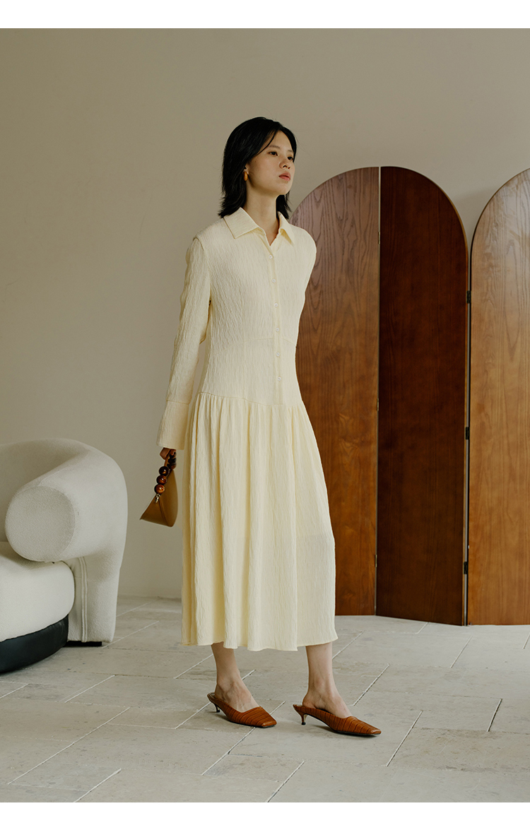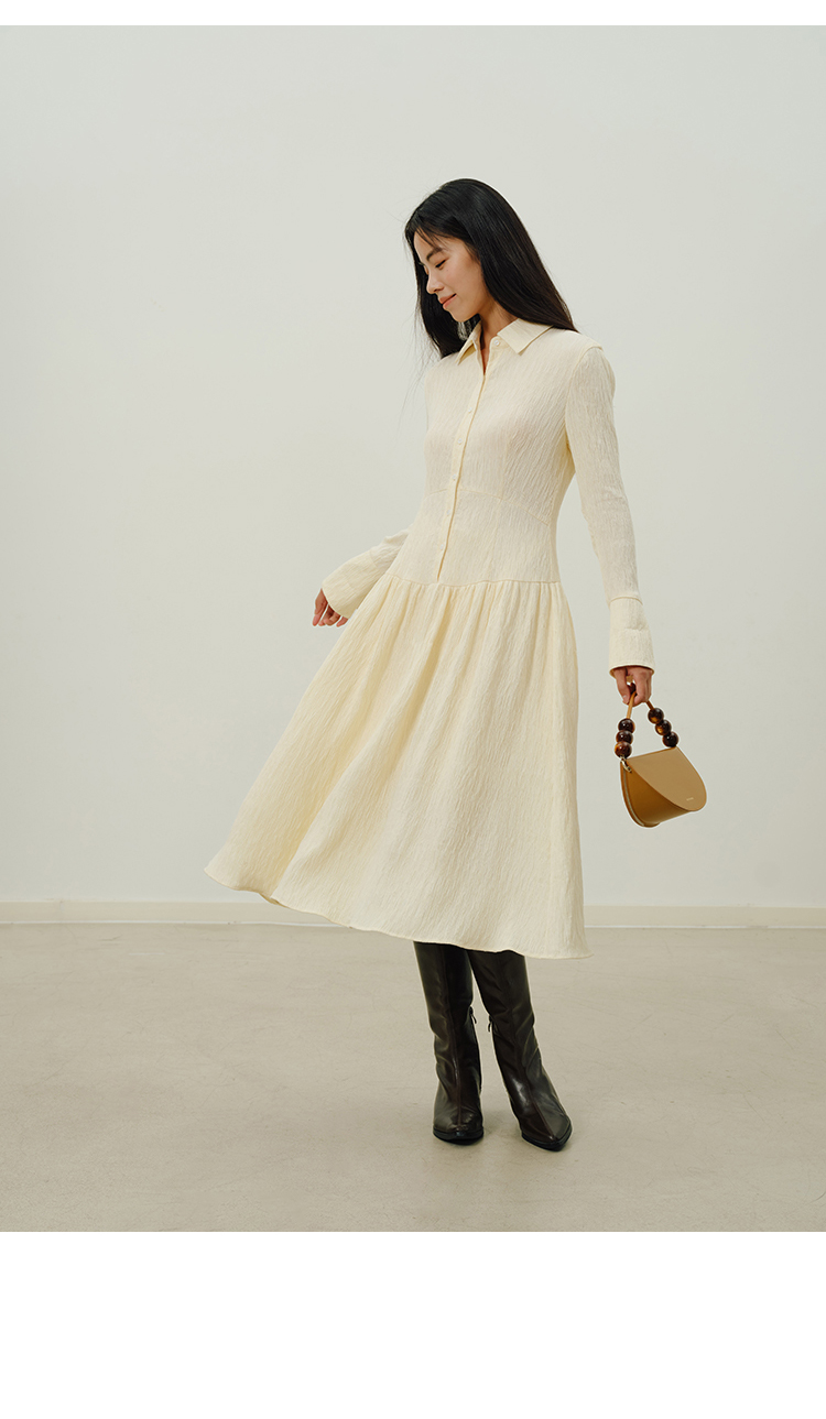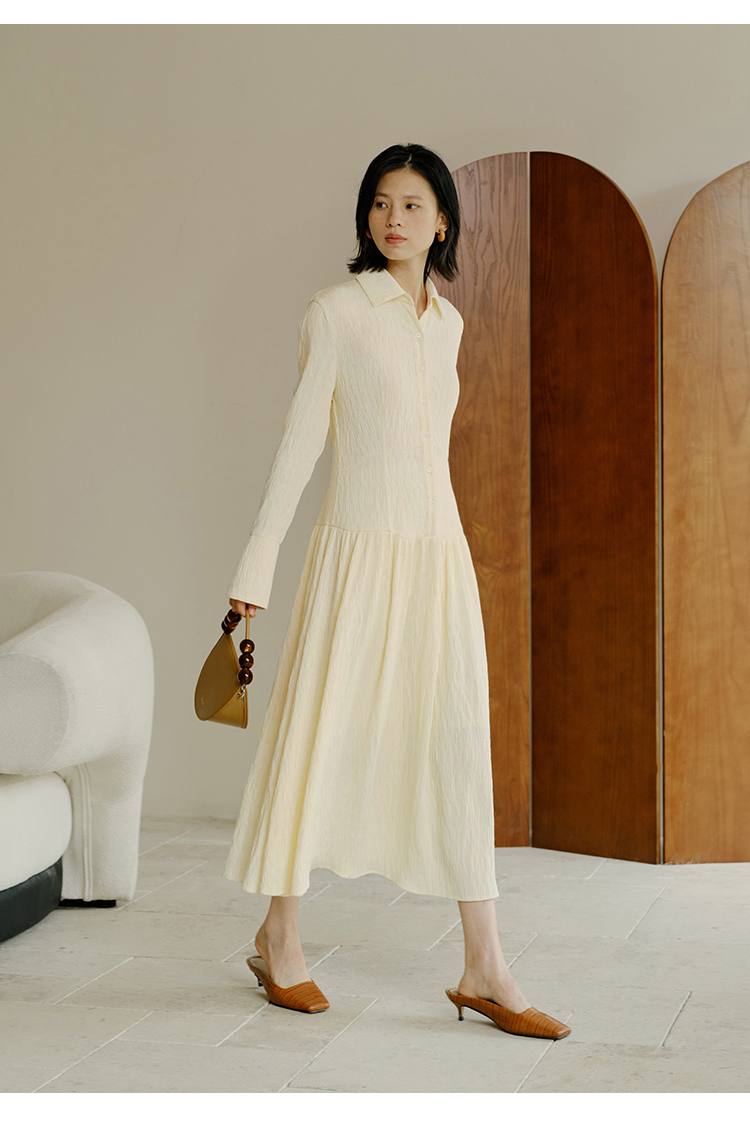 HeyDress法式衬衫连衣裙女秋季复古优雅气质肌理感修身长袖裙子