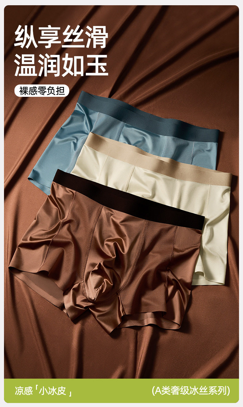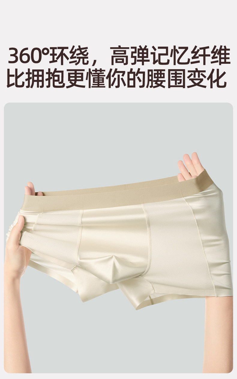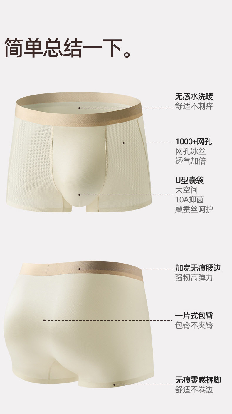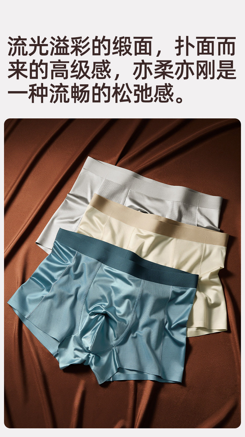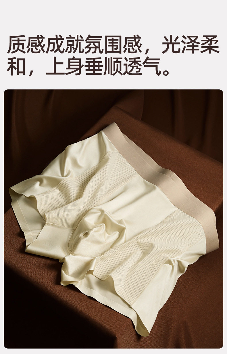 XY-1550 【1条】秋冬无痕冰丝男士内裤中腰10A抑菌桑蚕丝透气网孔四角平角裤