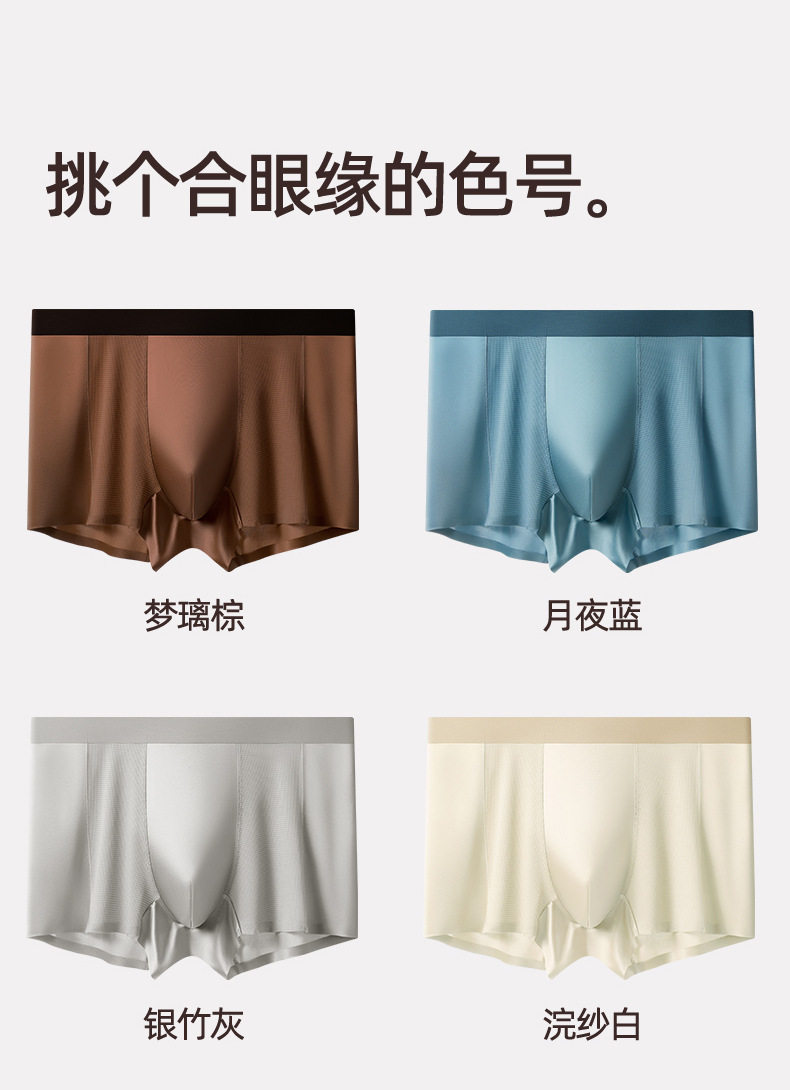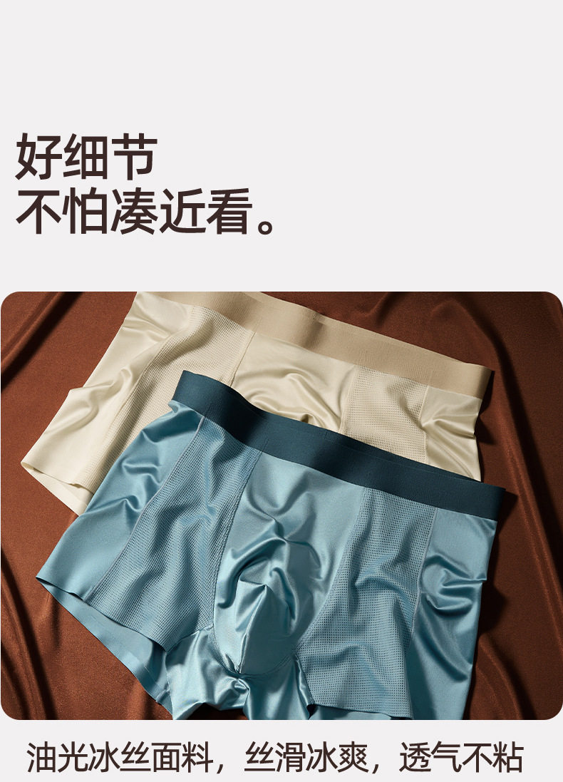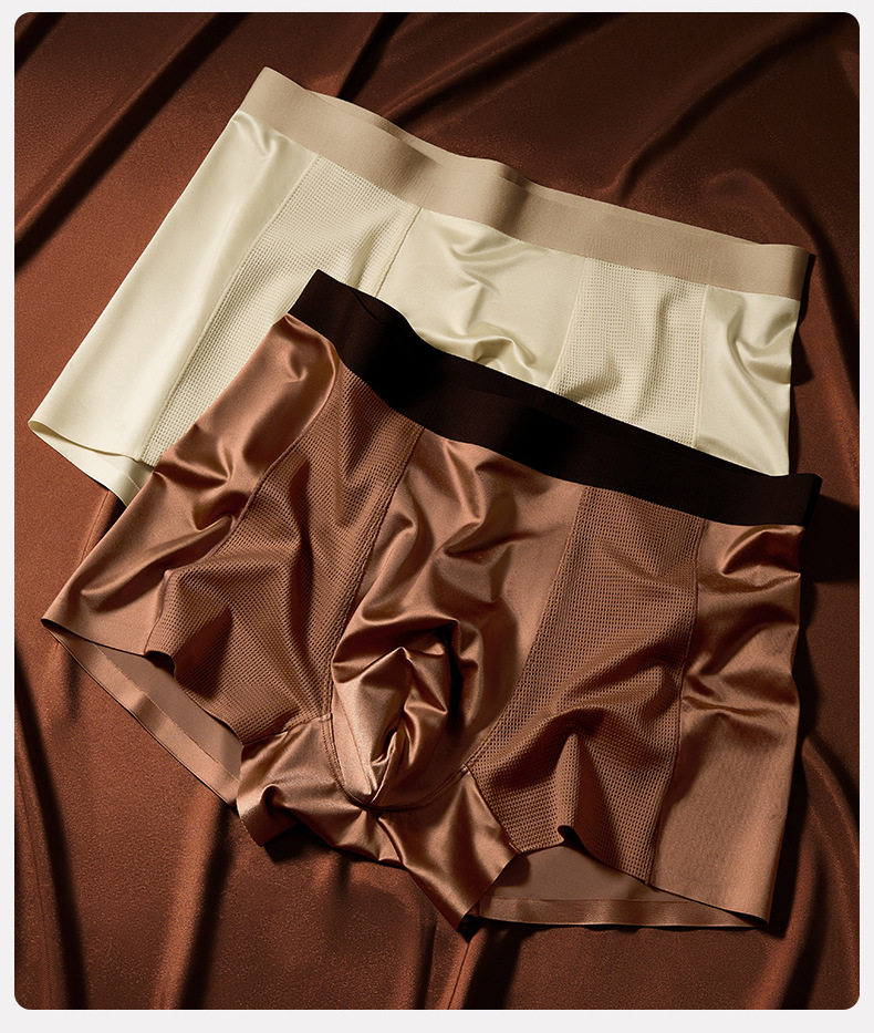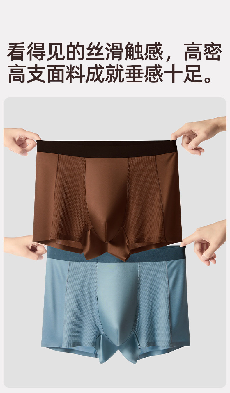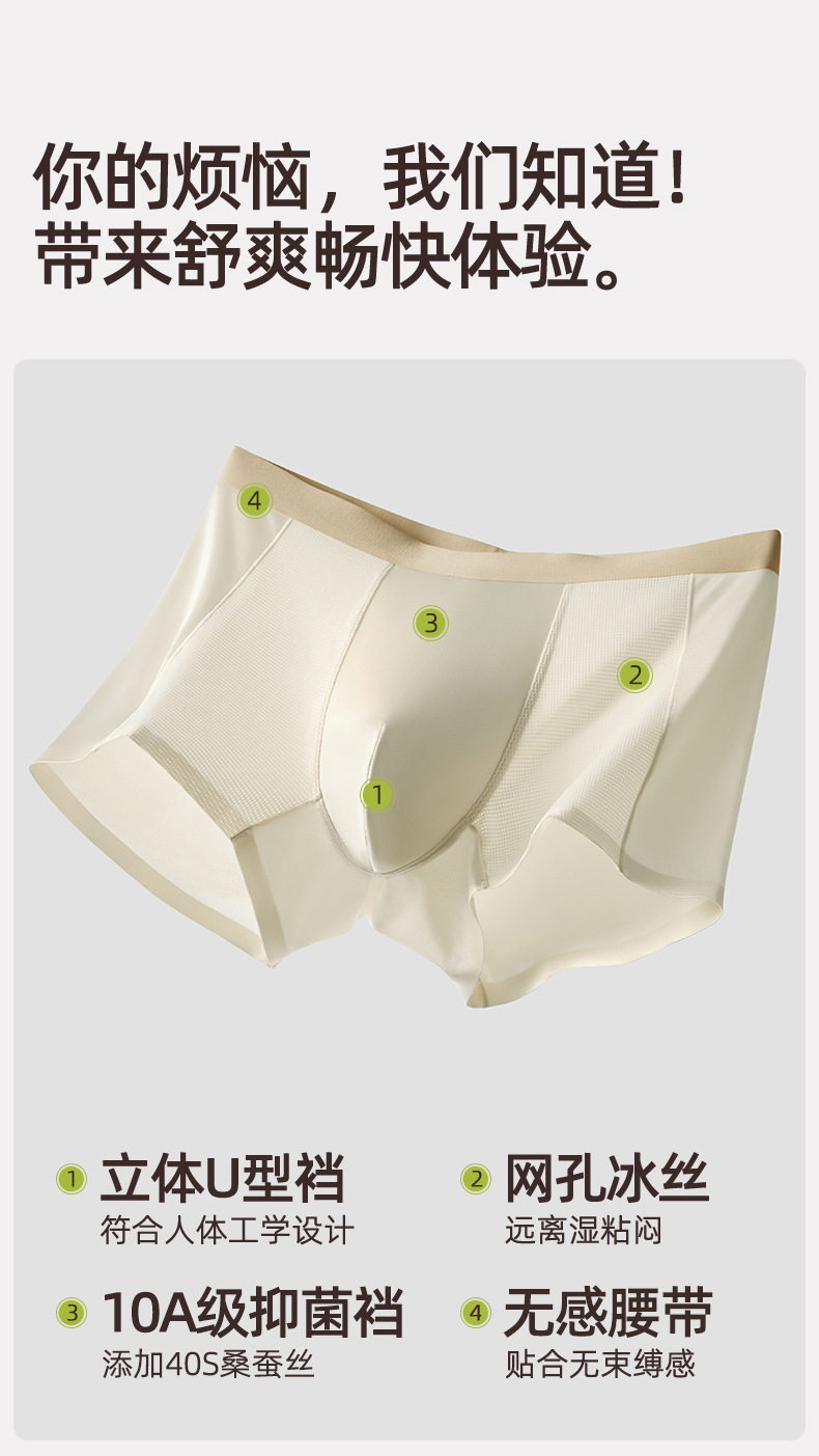 XY-1550 【1条】秋冬无痕冰丝男士内裤中腰10A抑菌桑蚕丝透气网孔四角平角裤