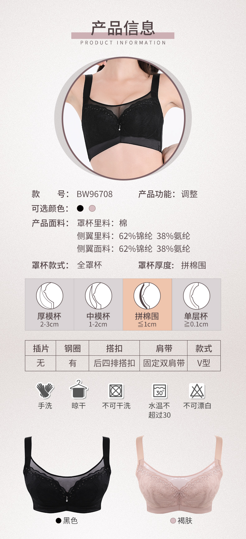 贝佳人新款“酷系”深V背心式水晶杯文胸-BW932236