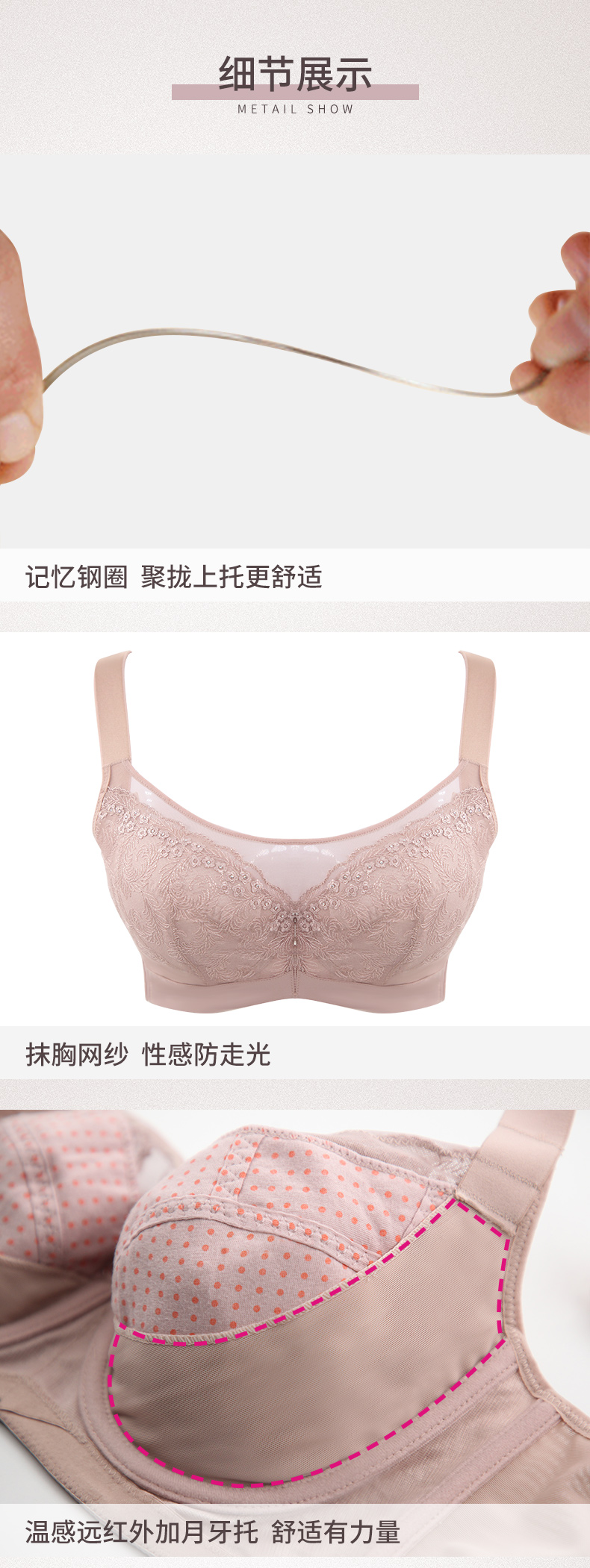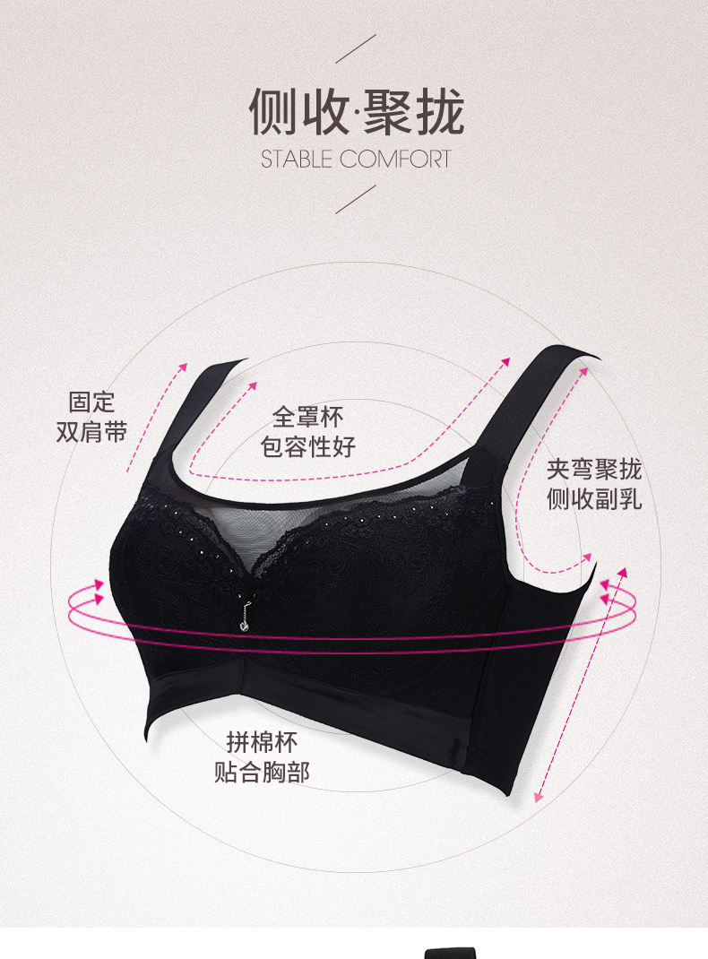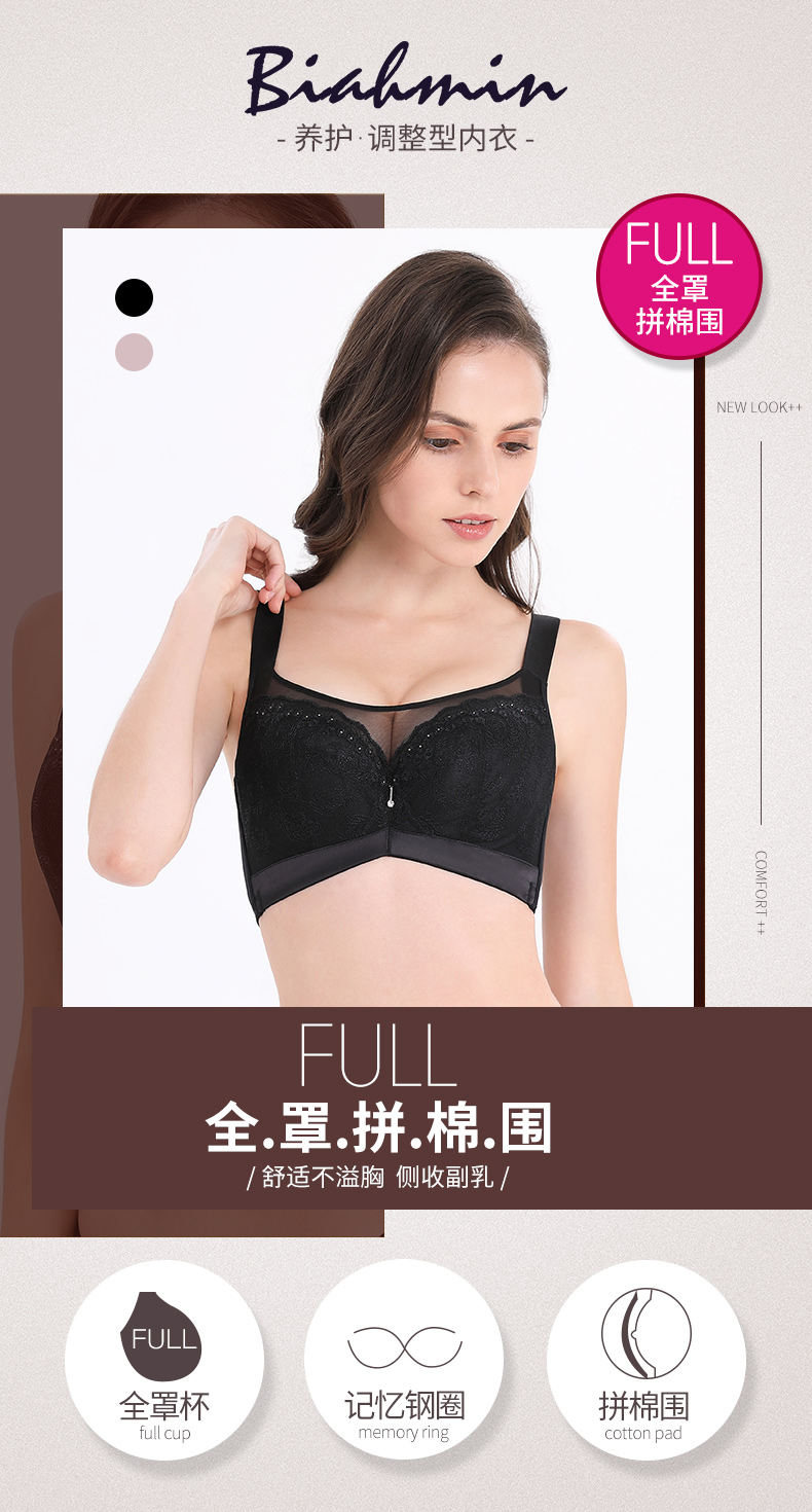 贝佳人新品薄款全罩杯聚拢内衣女收副乳上托大胸显小抹胸式文胸